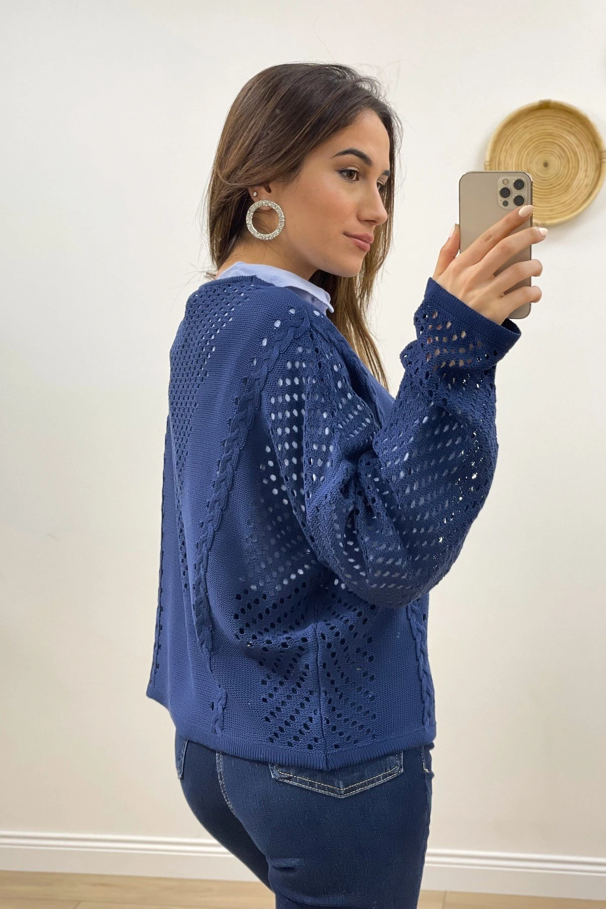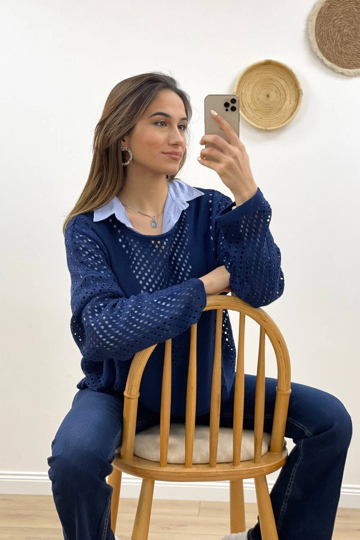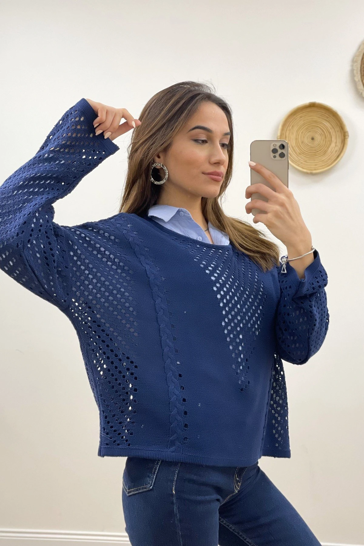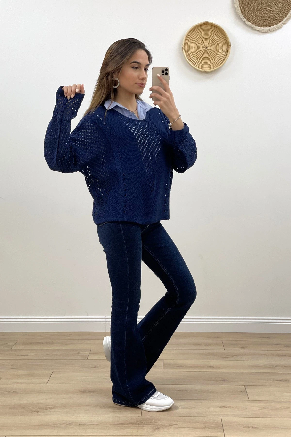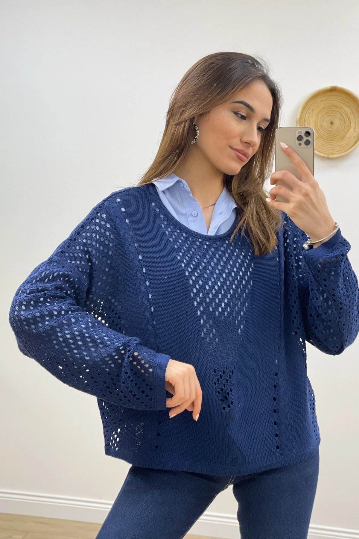 ÖN V DESEN AJURLU TRİKO – LACİVERT