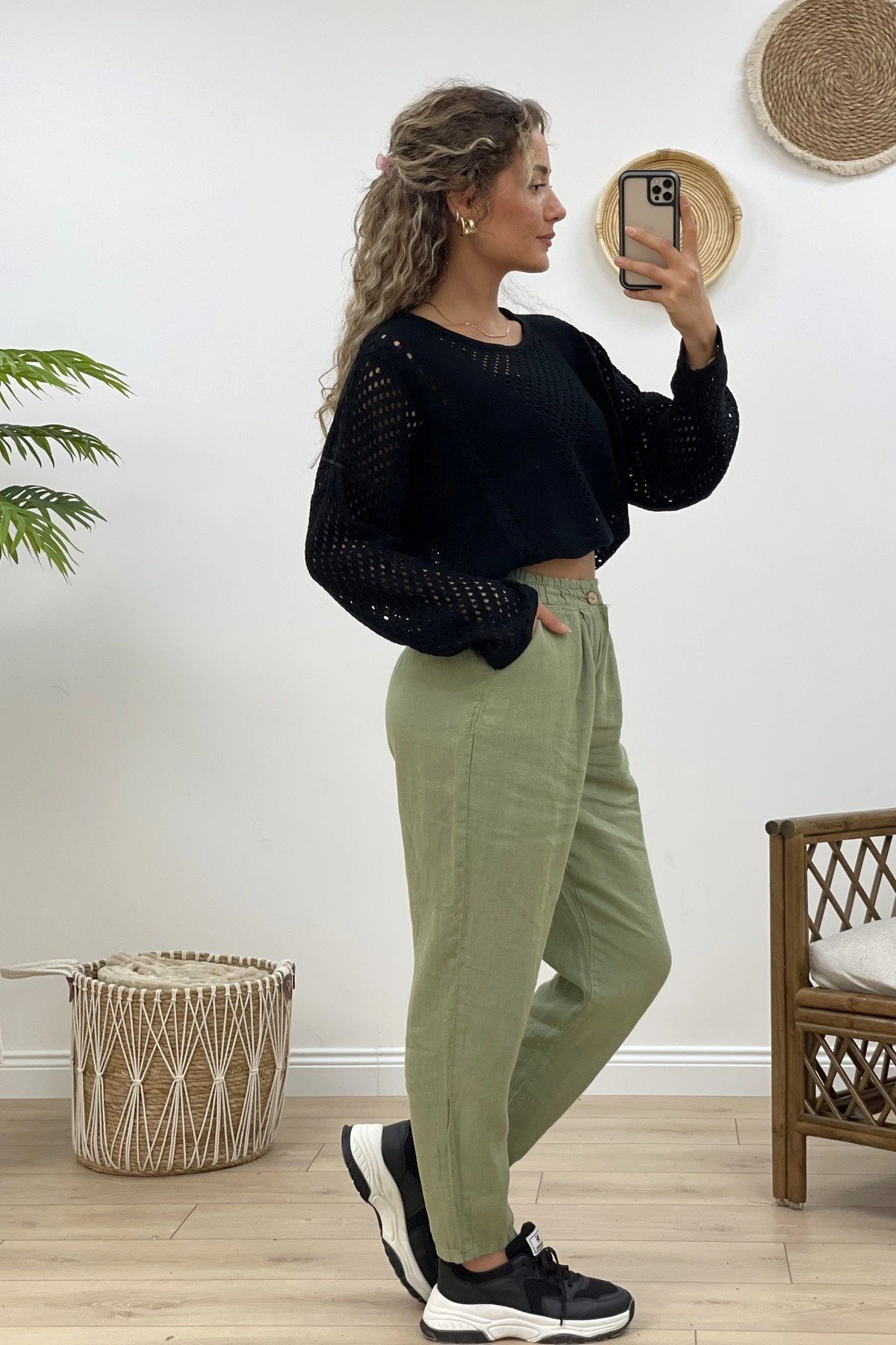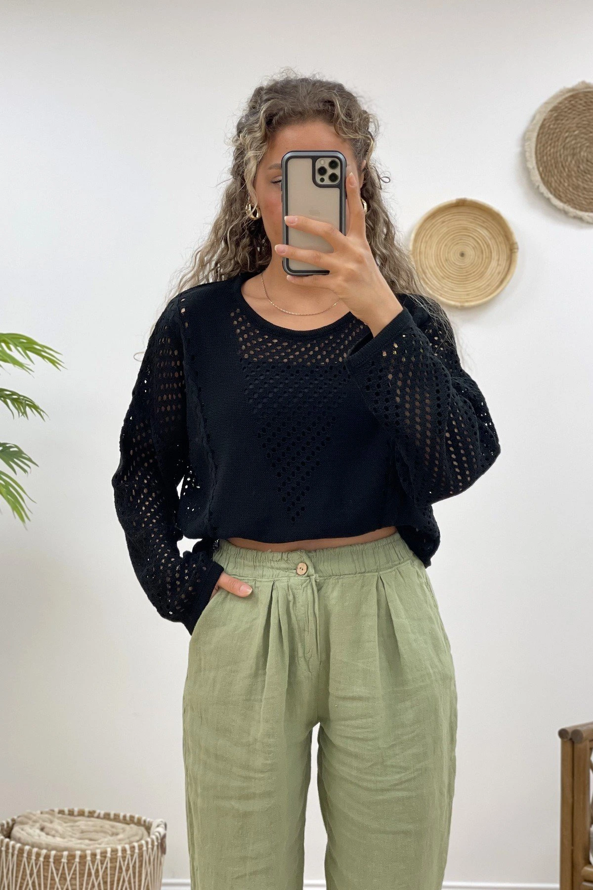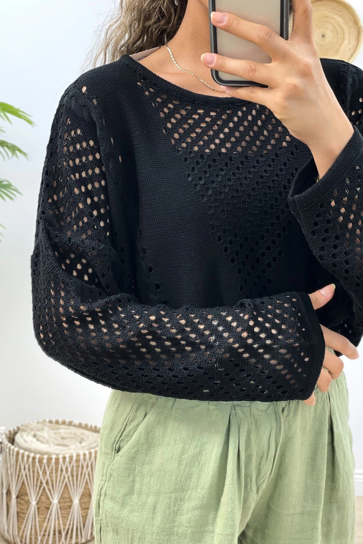 ÖN V DESEN AJURLU TRİKO – SİYAH