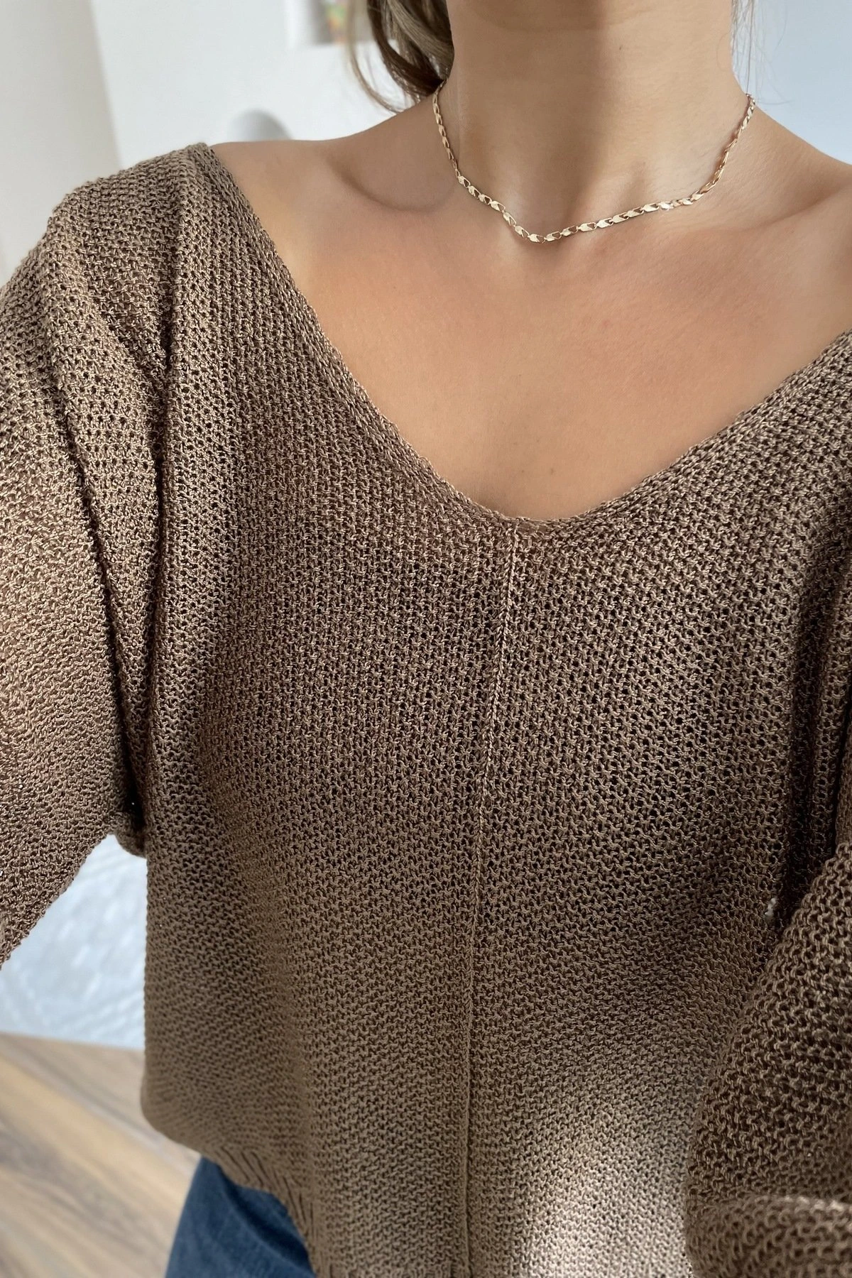PİKE V YAKA SALAŞ TRİKO – AÇIK KAHVE