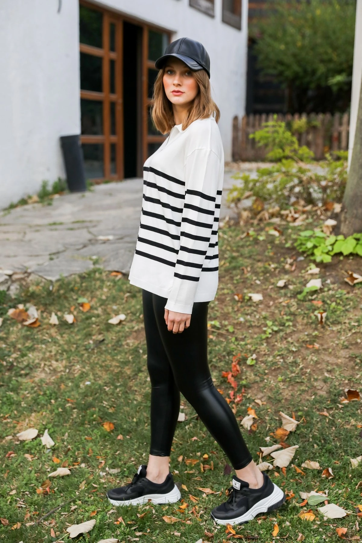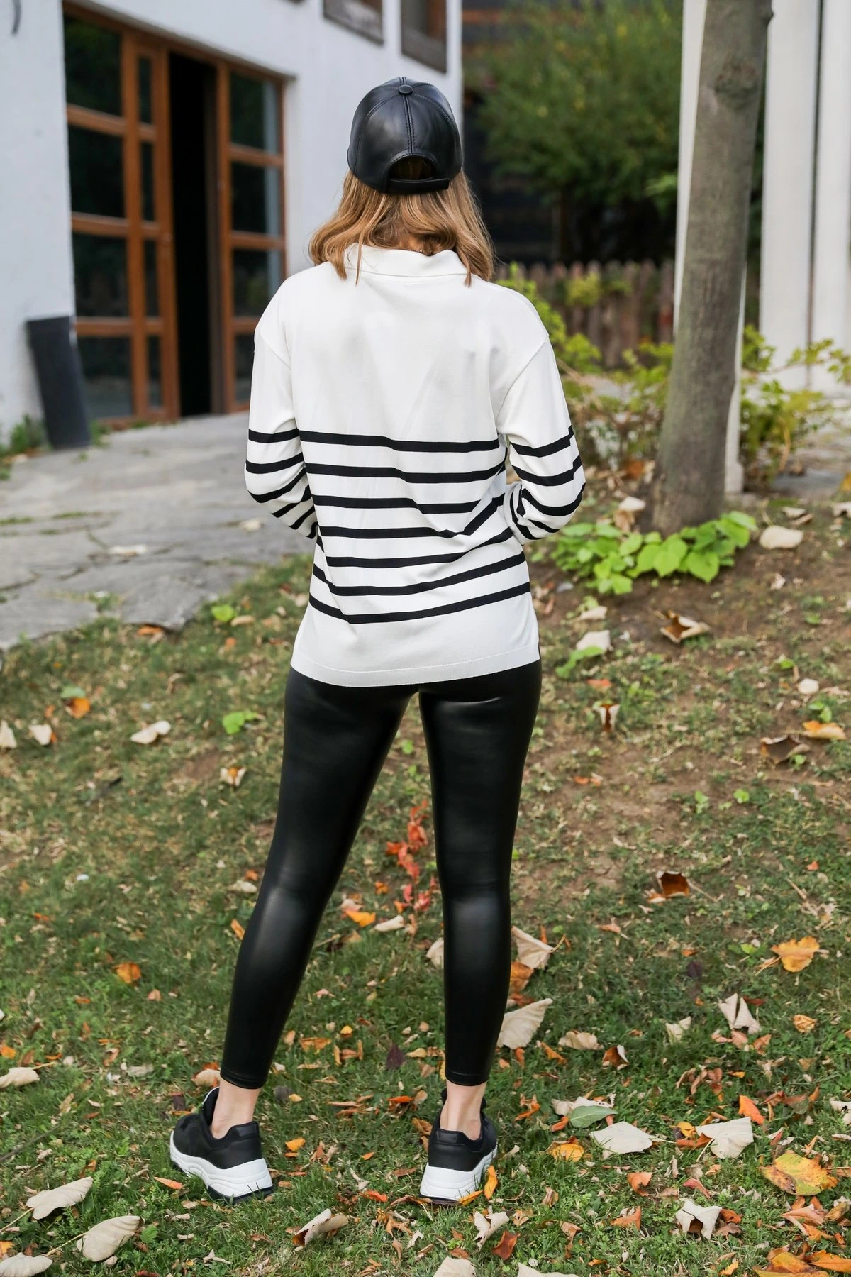 POLO YAKA ÇİZGİLİ FERMUARLI TRİKO – EKRU