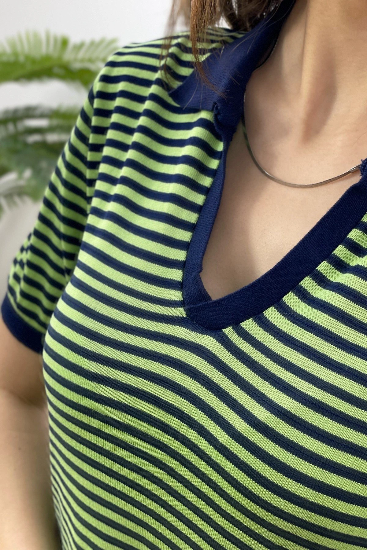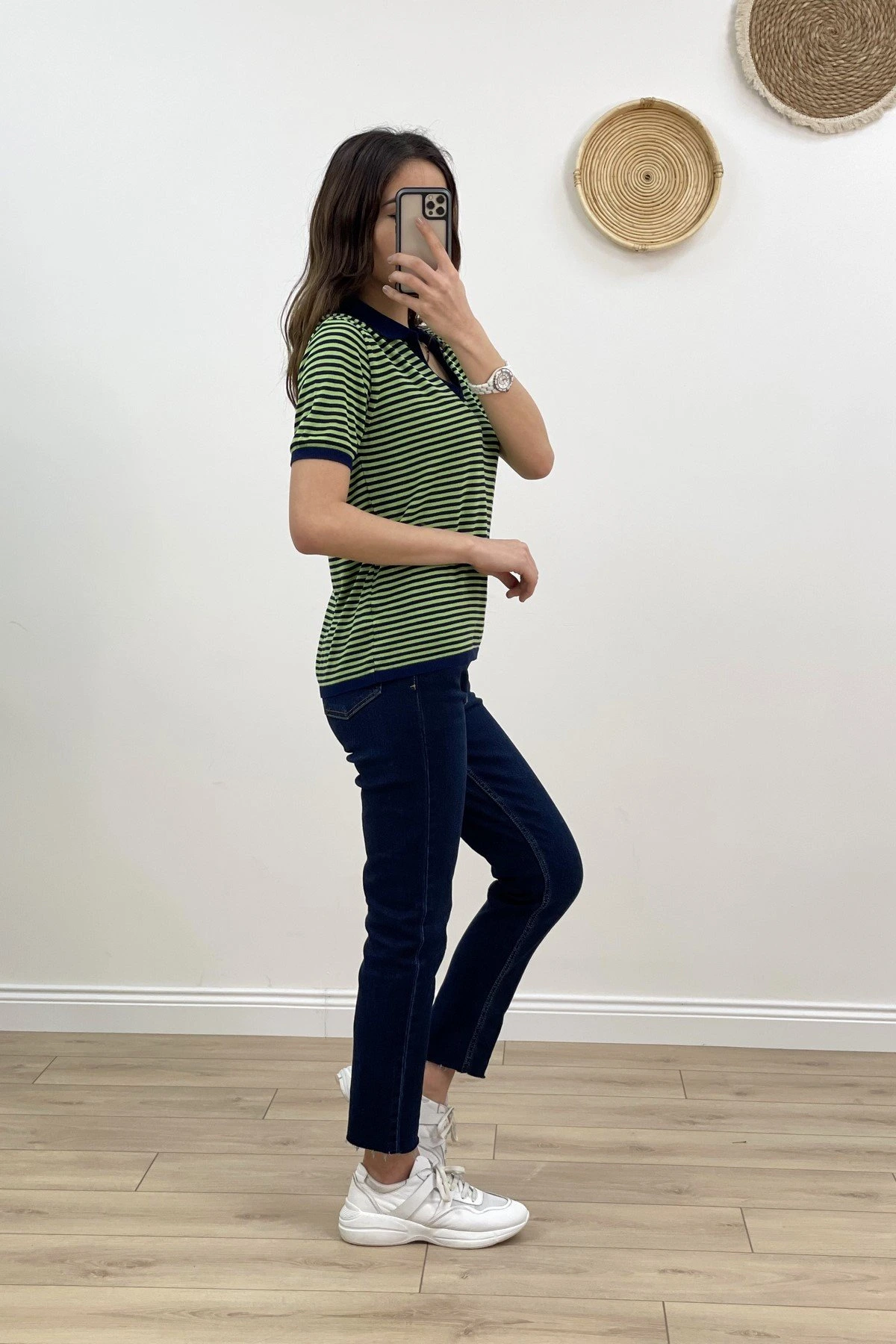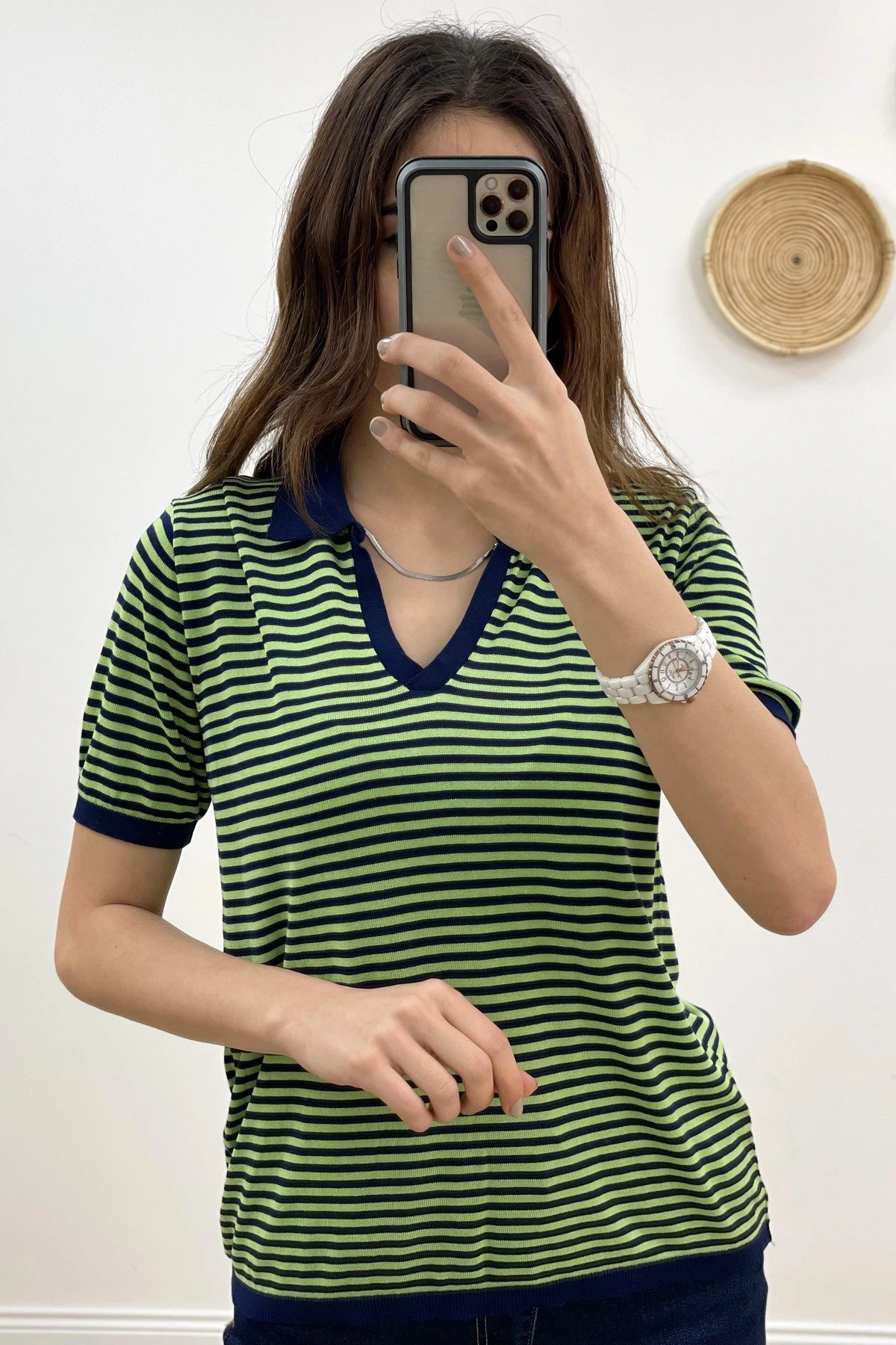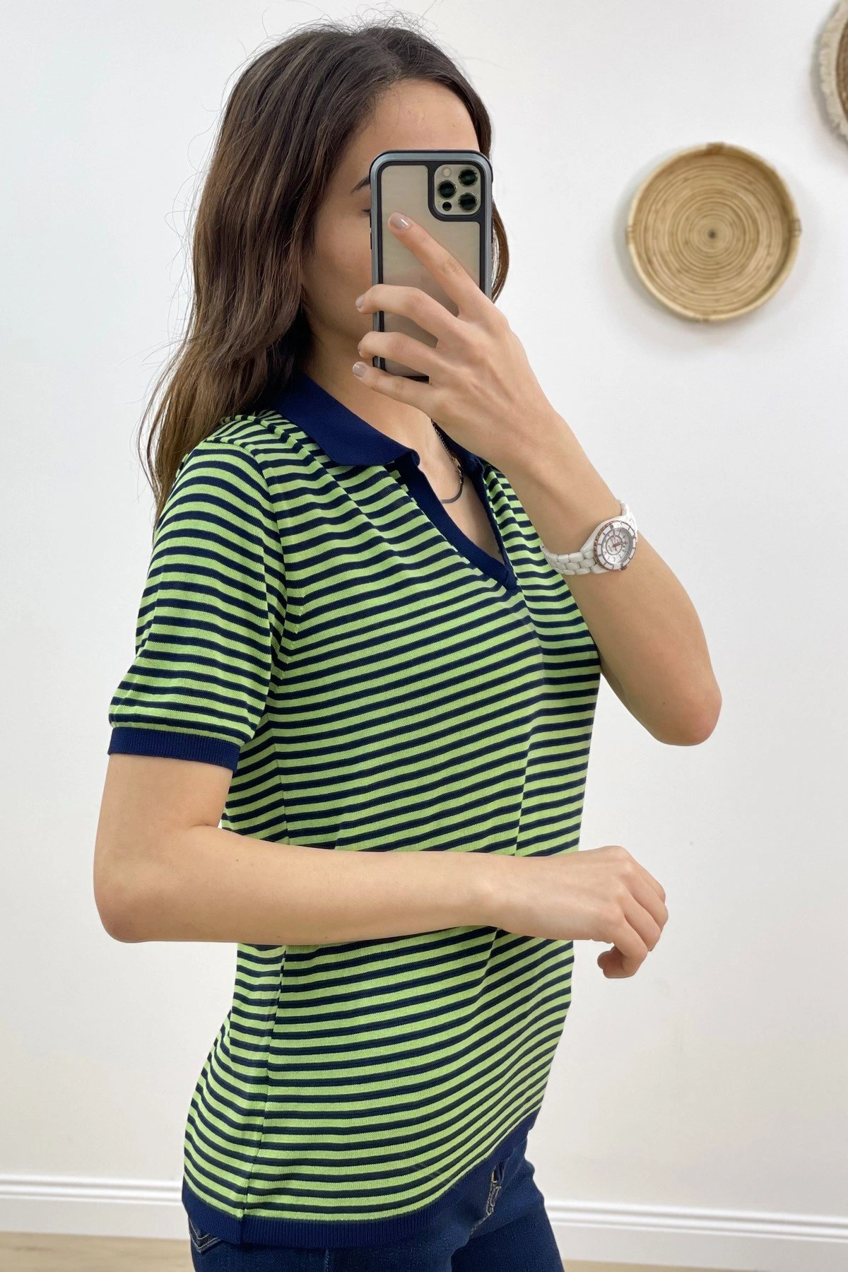 POLO YAKA ÇİZGİLİ KISA KOL İNCE TRİKO – LACİ F.YEŞİL