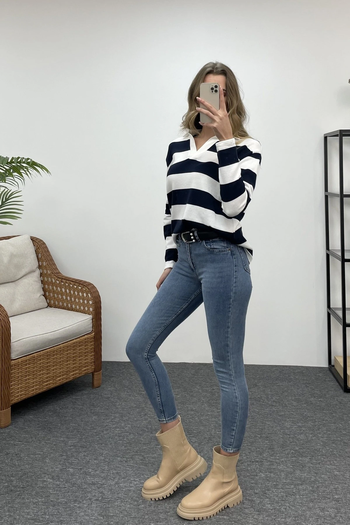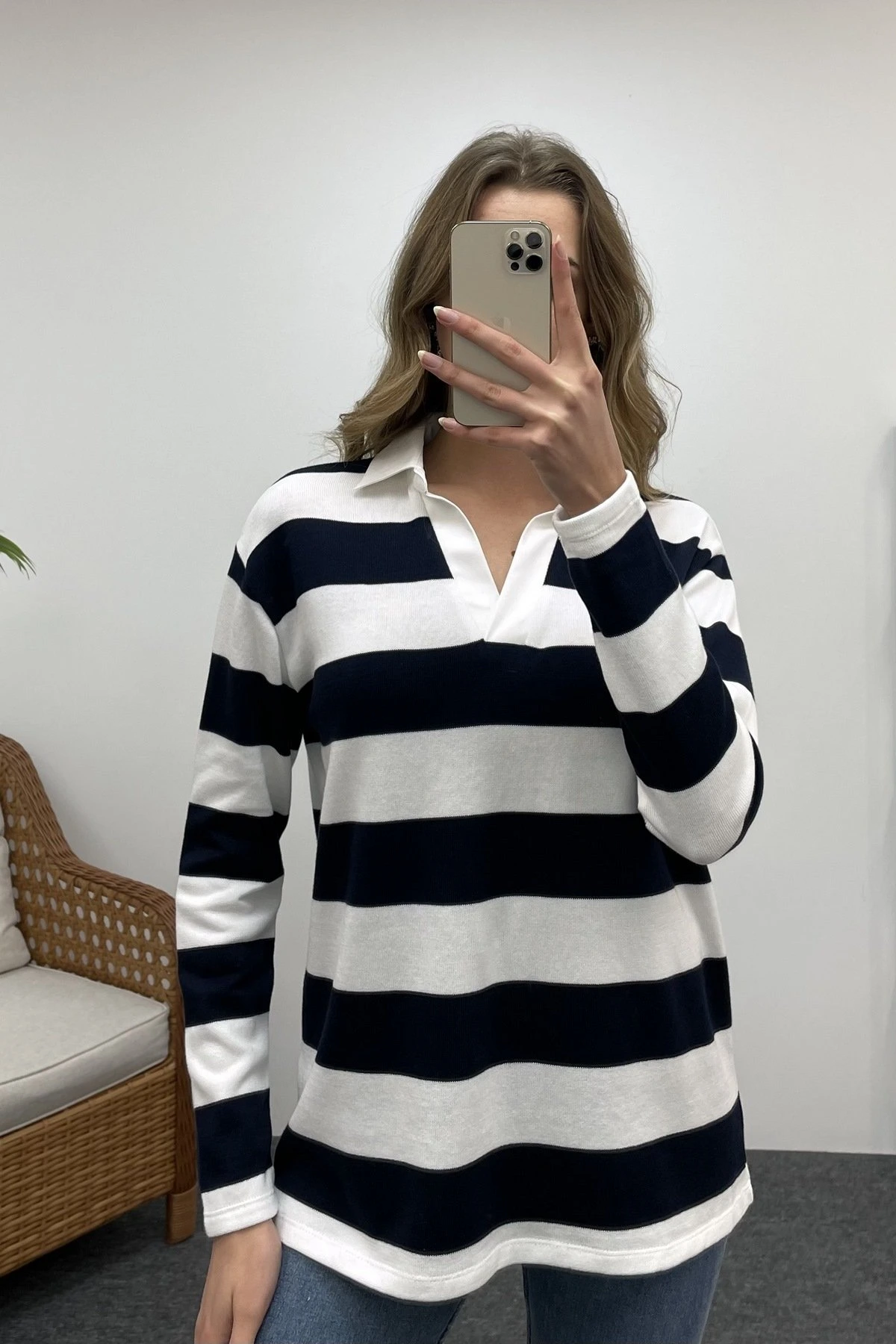 POLO YAKA ÇİZGİLİ TRİKO – LACİVERT