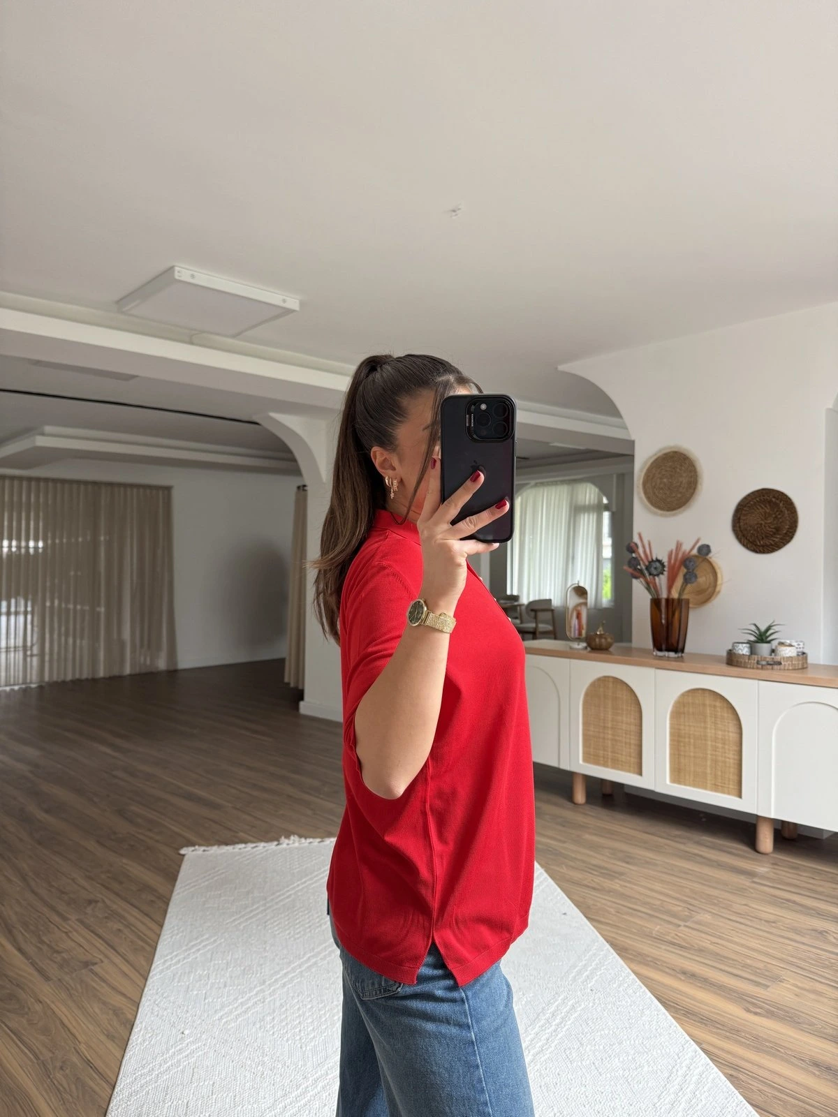 POLO YAKA DÜĞMELİ KISA KOL VİSKON TRİKO – KIRMIZI