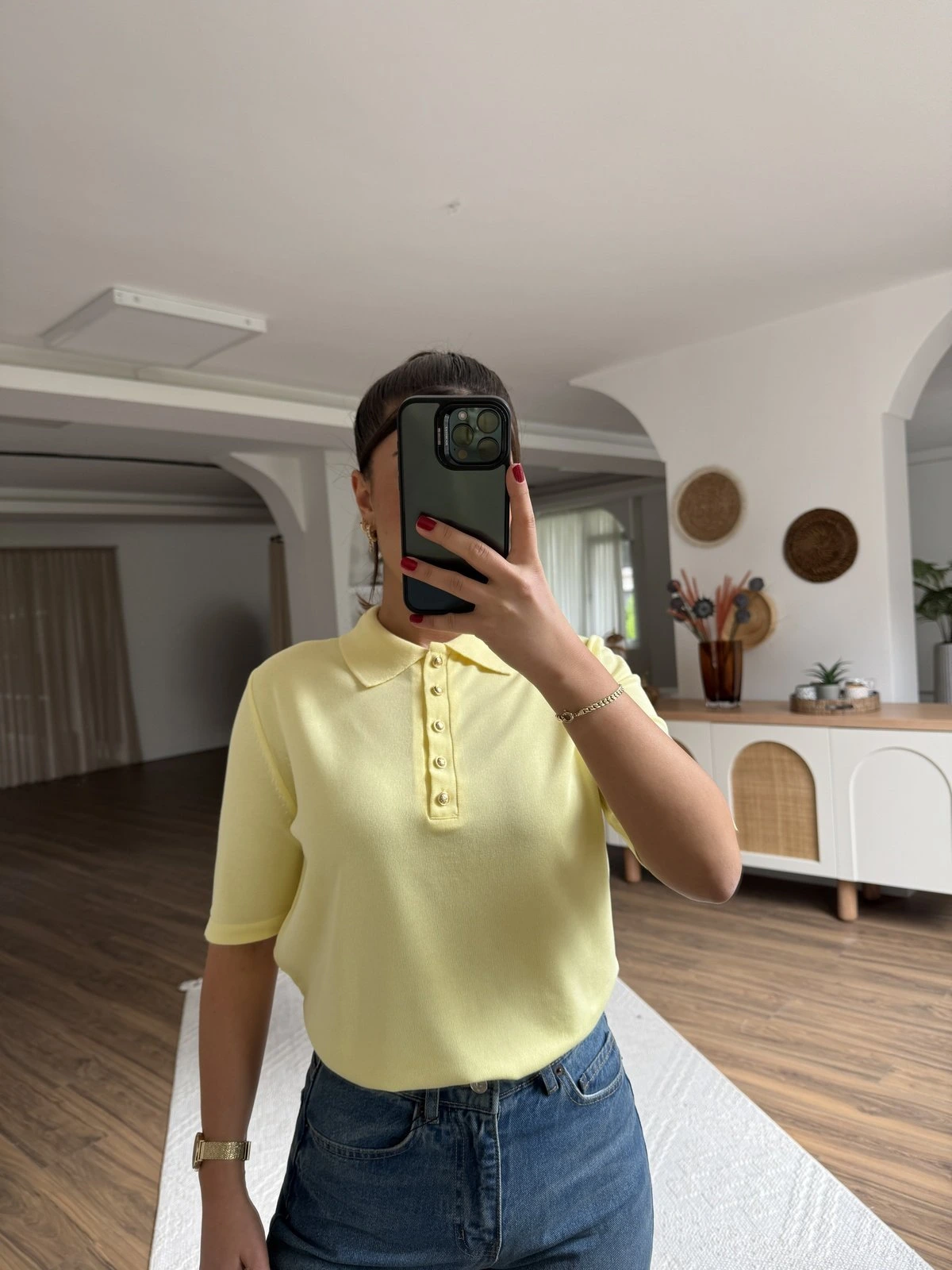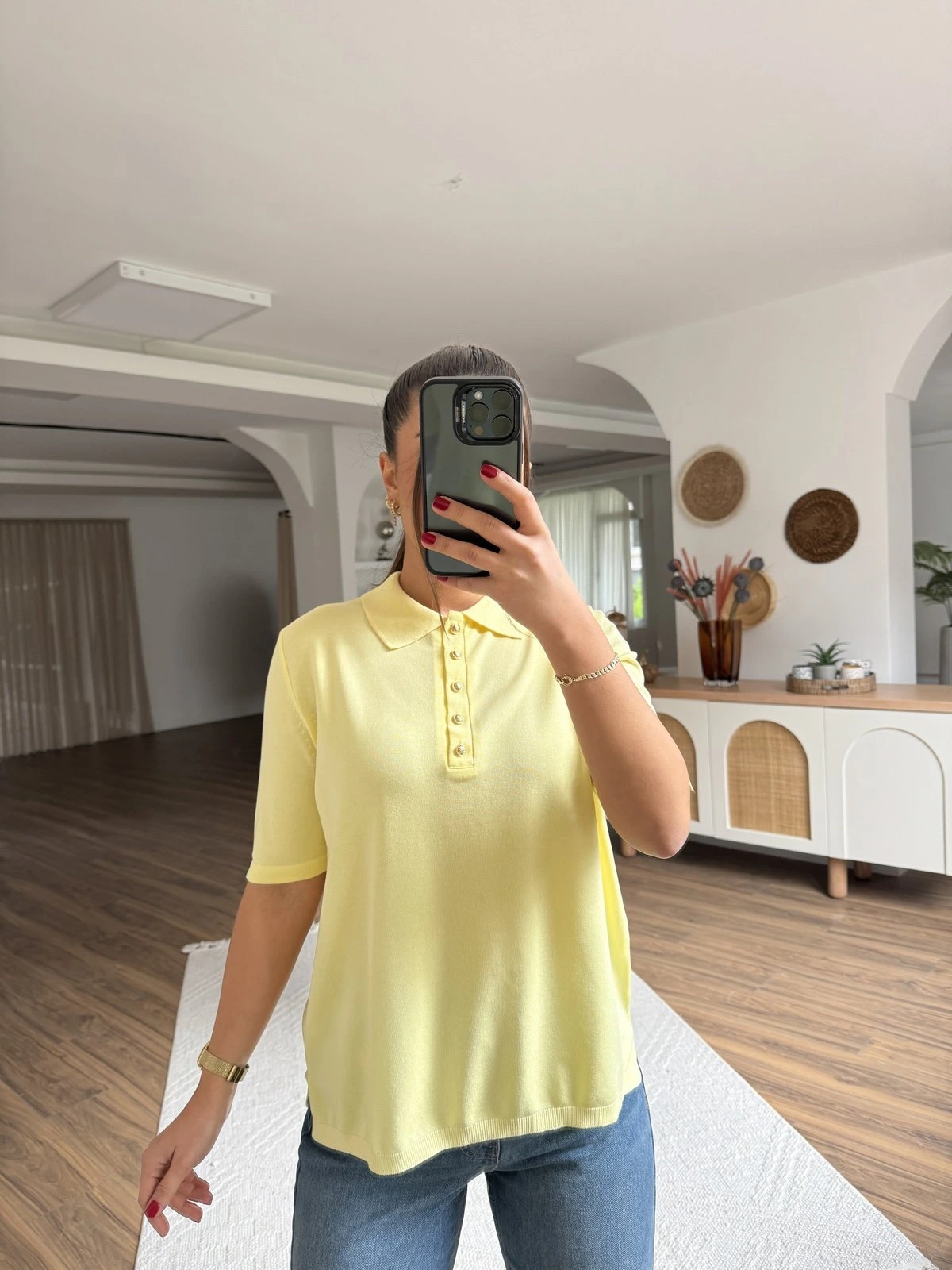 POLO YAKA DÜĞMELİ KISA KOL VİSKON TRİKO – SARI
