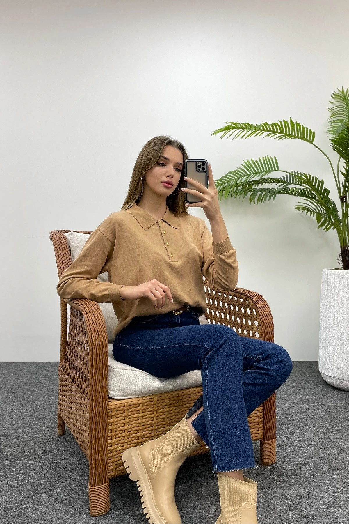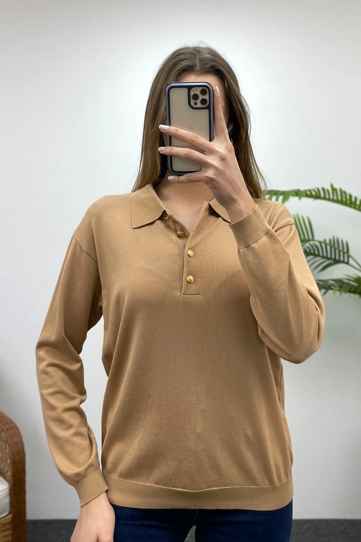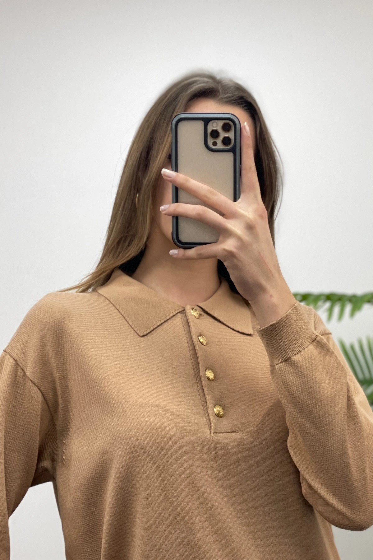 POLO YAKA DÜĞMELİ TRİKO – CAMEL