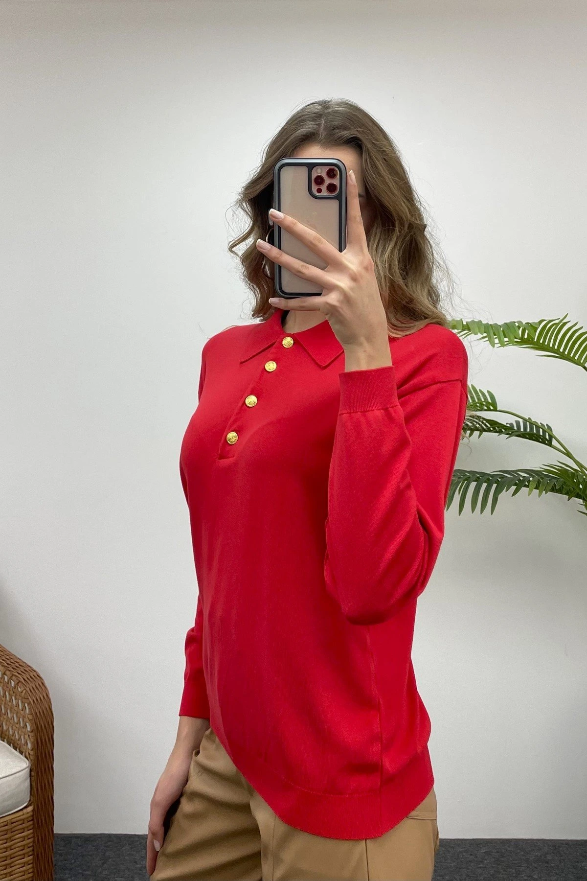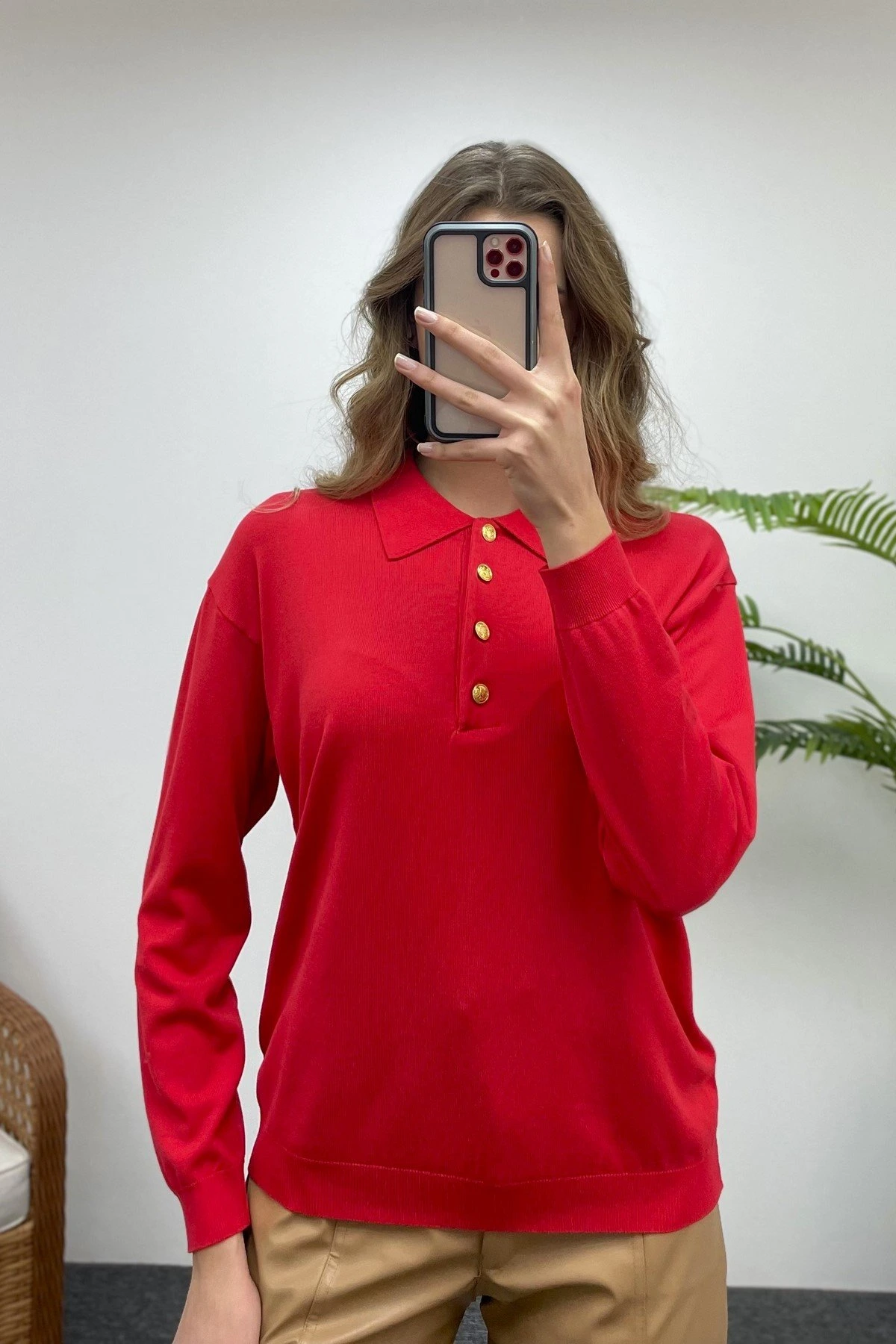 POLO YAKA DÜĞMELİ TRİKO – KIRMIZI