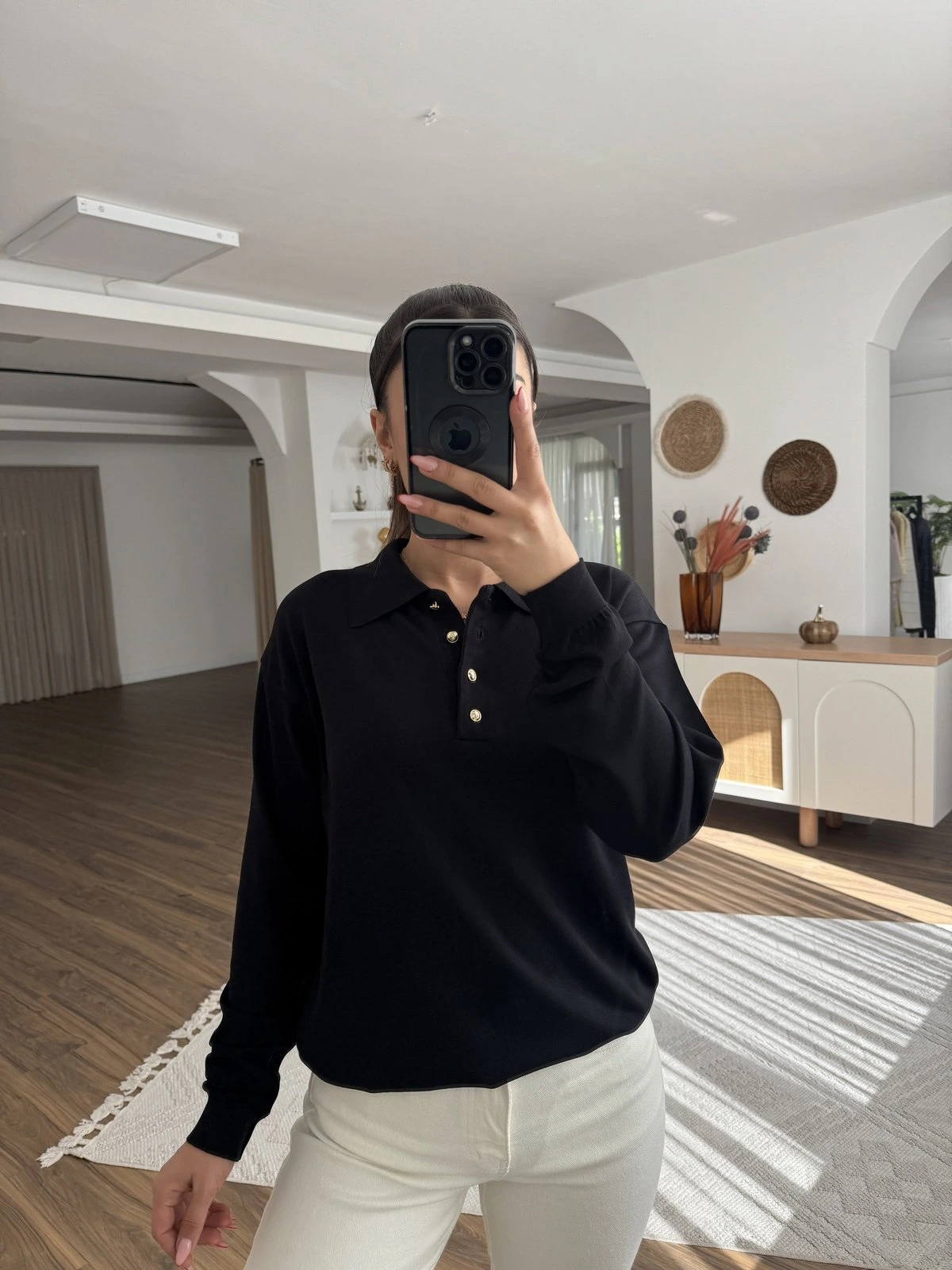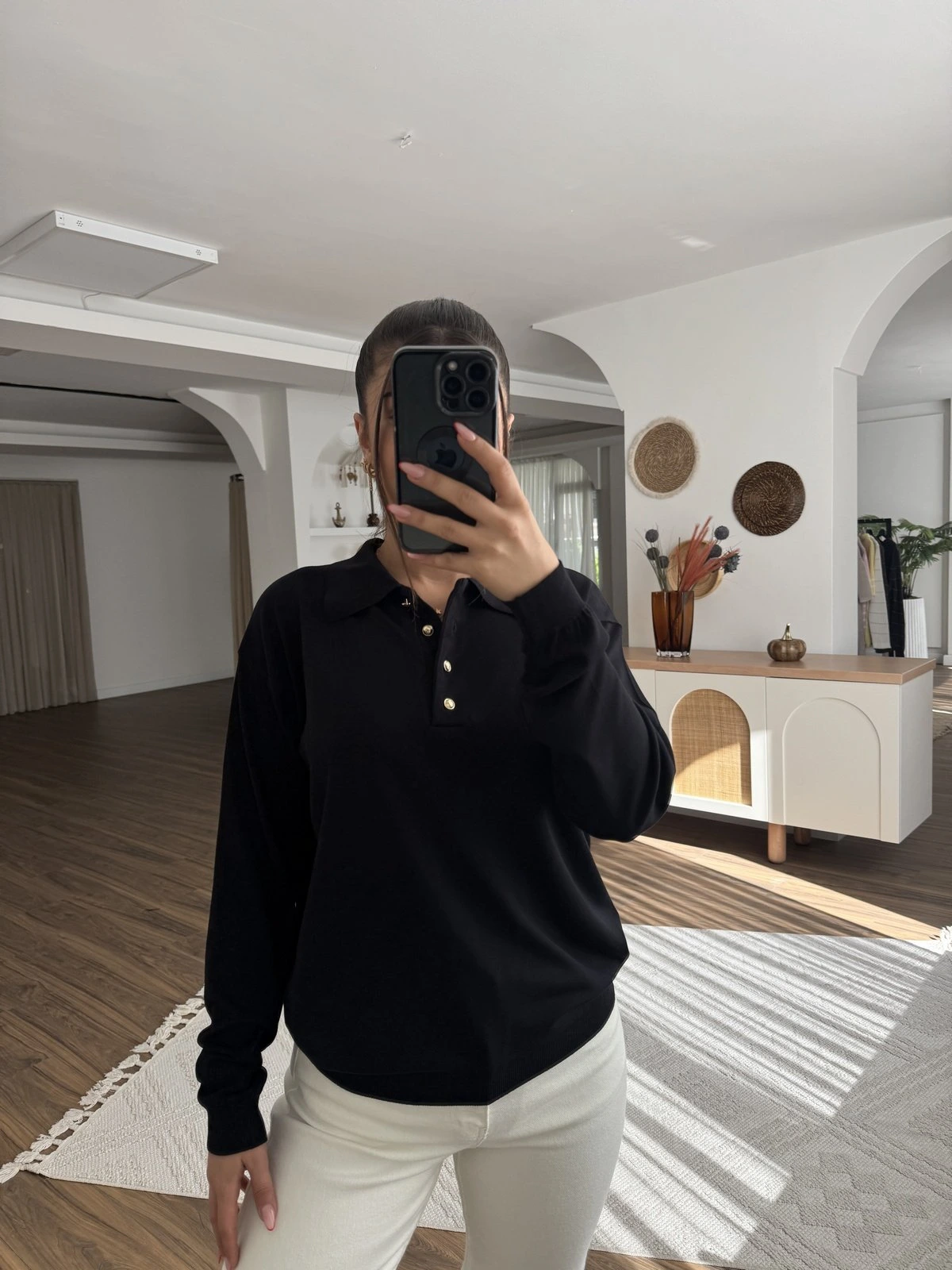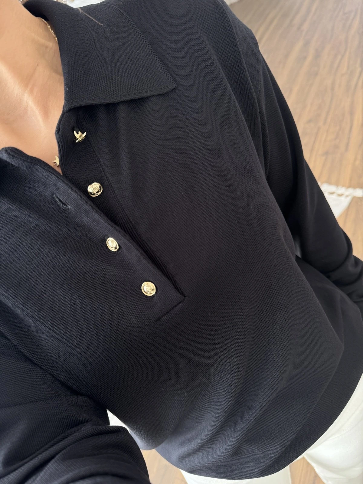 POLO YAKA GOLD DÜĞME VİSKON TRİKO – SİYAH