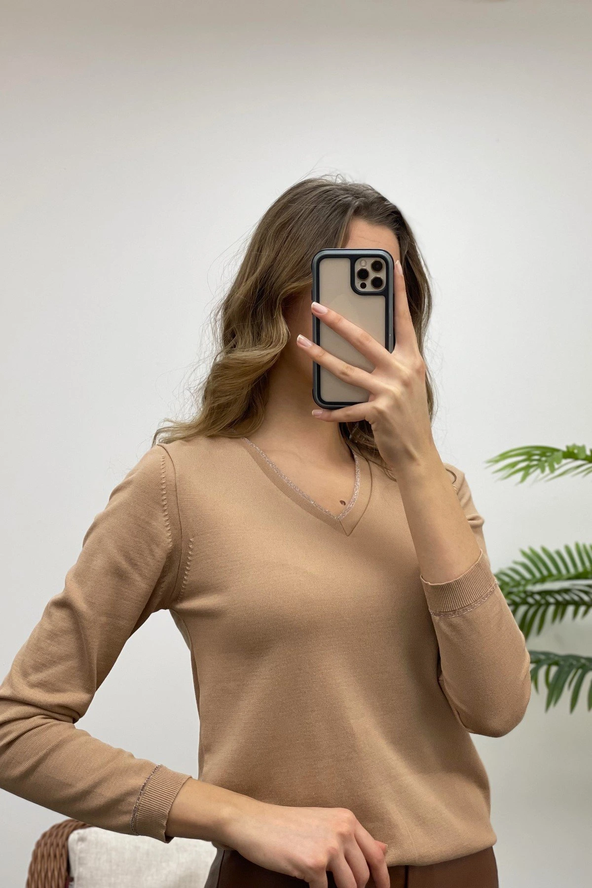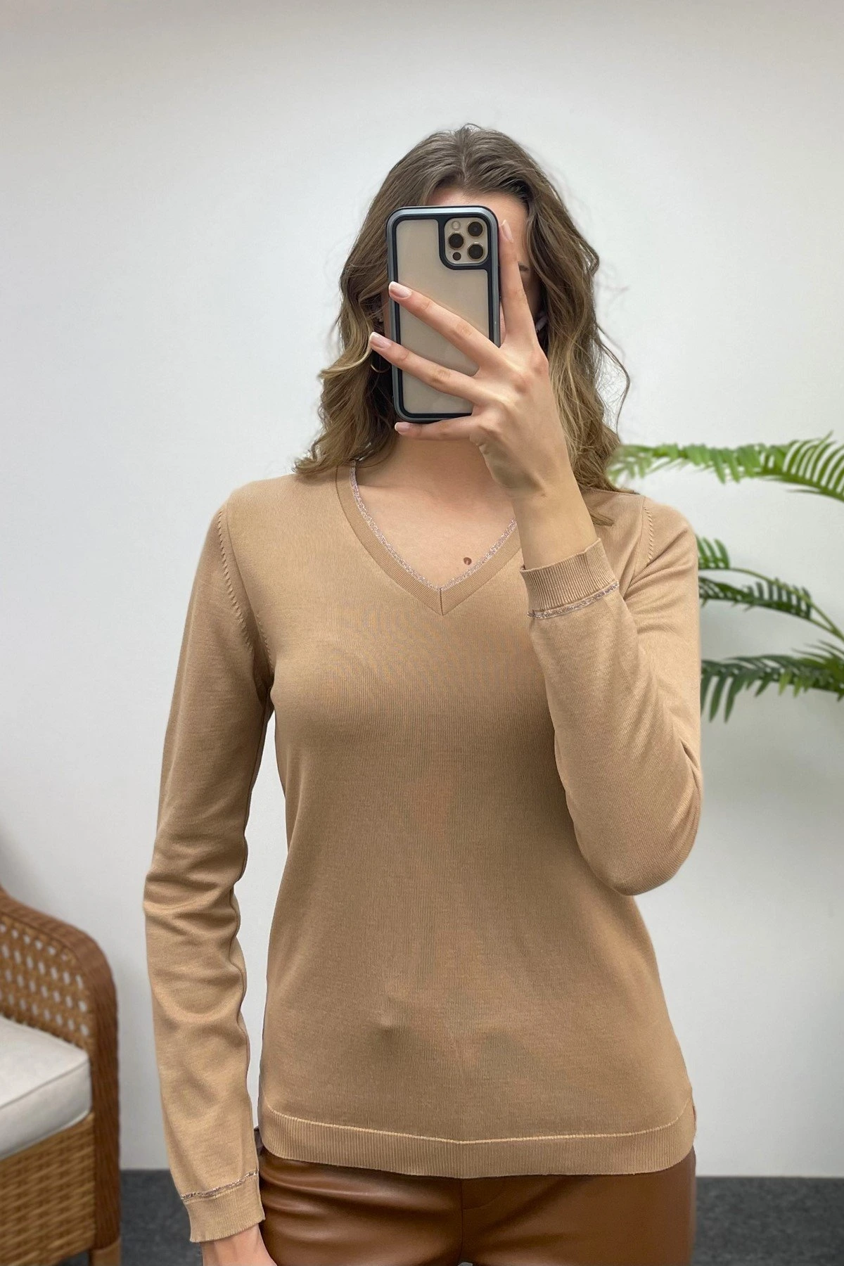 SİMLİ V YAKA TRİKO – CAMEL