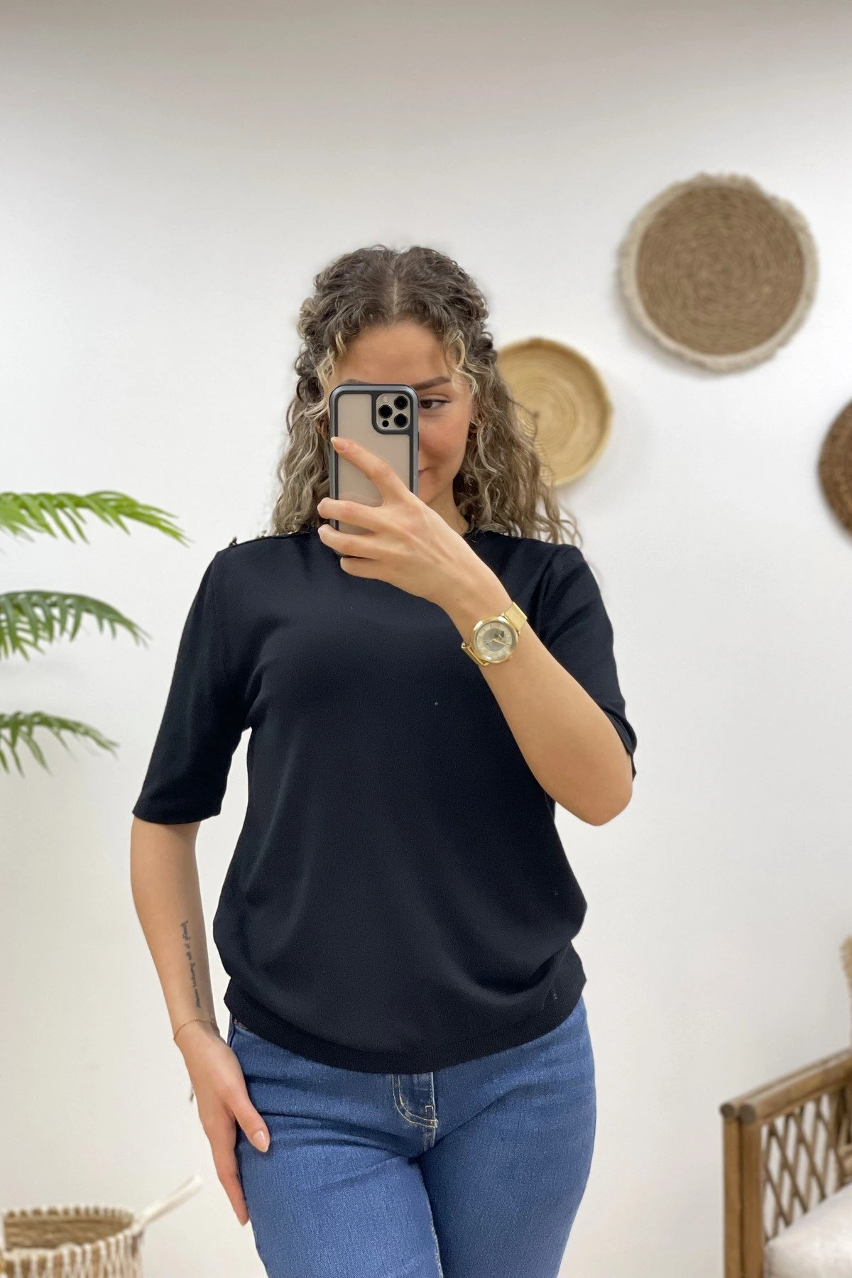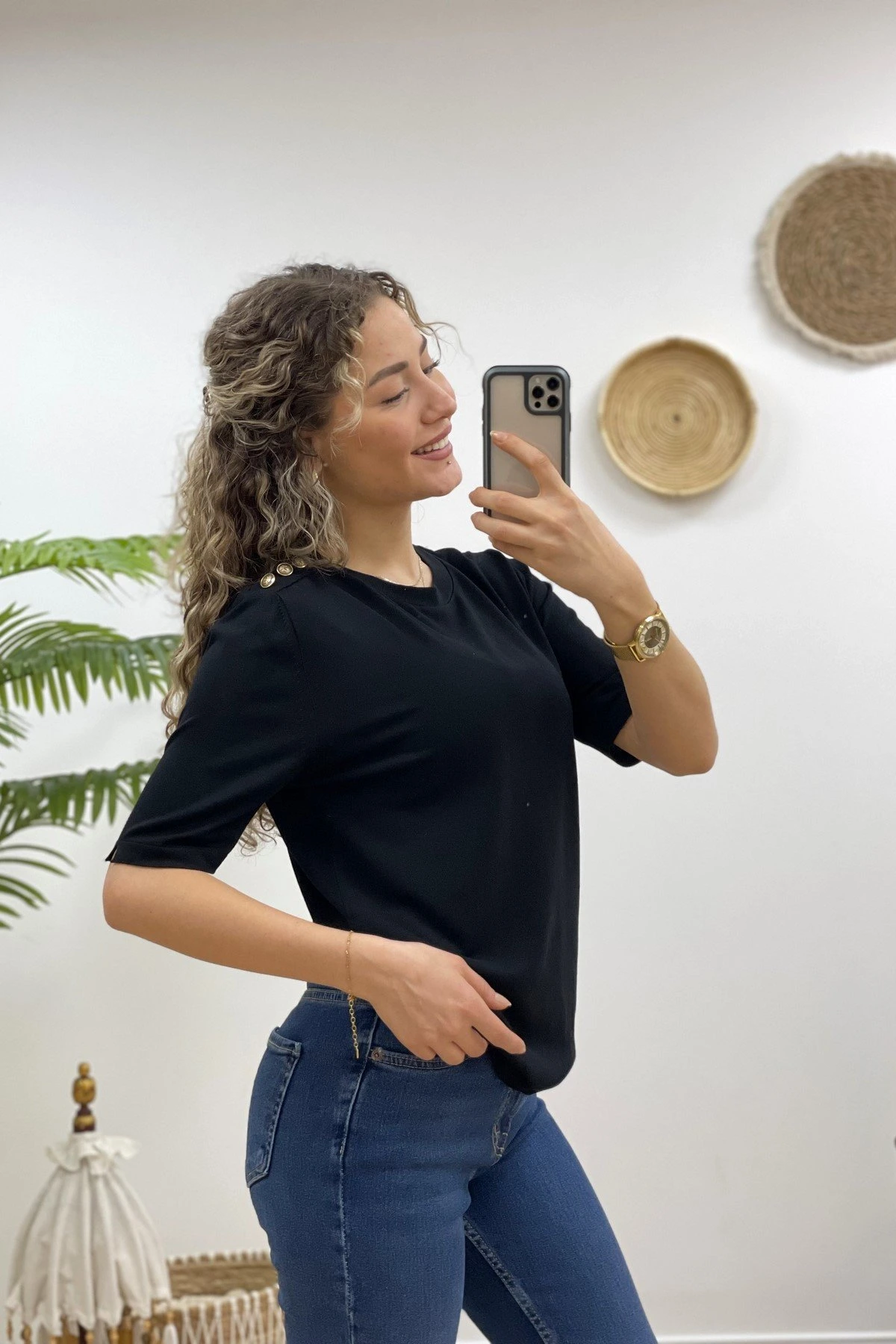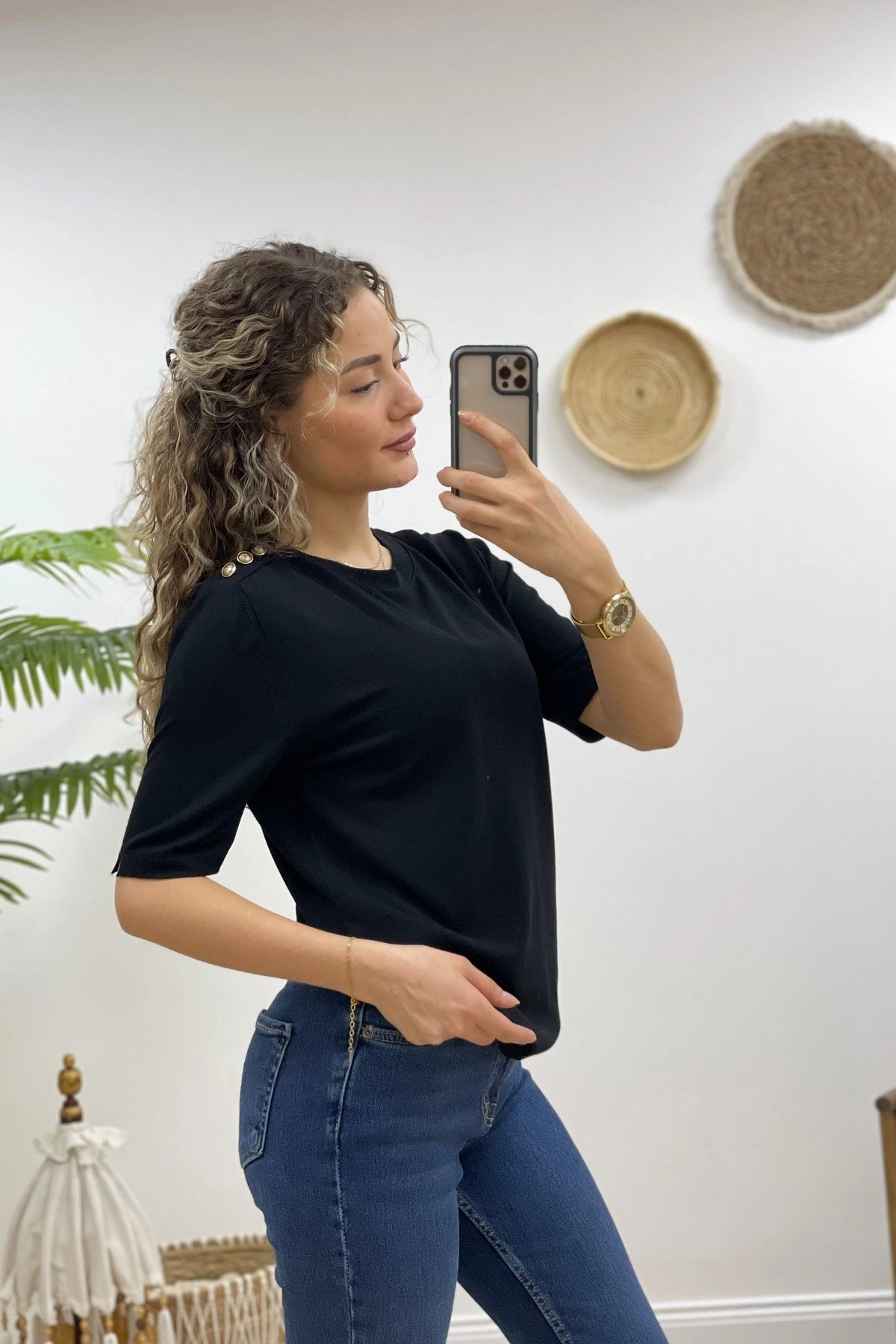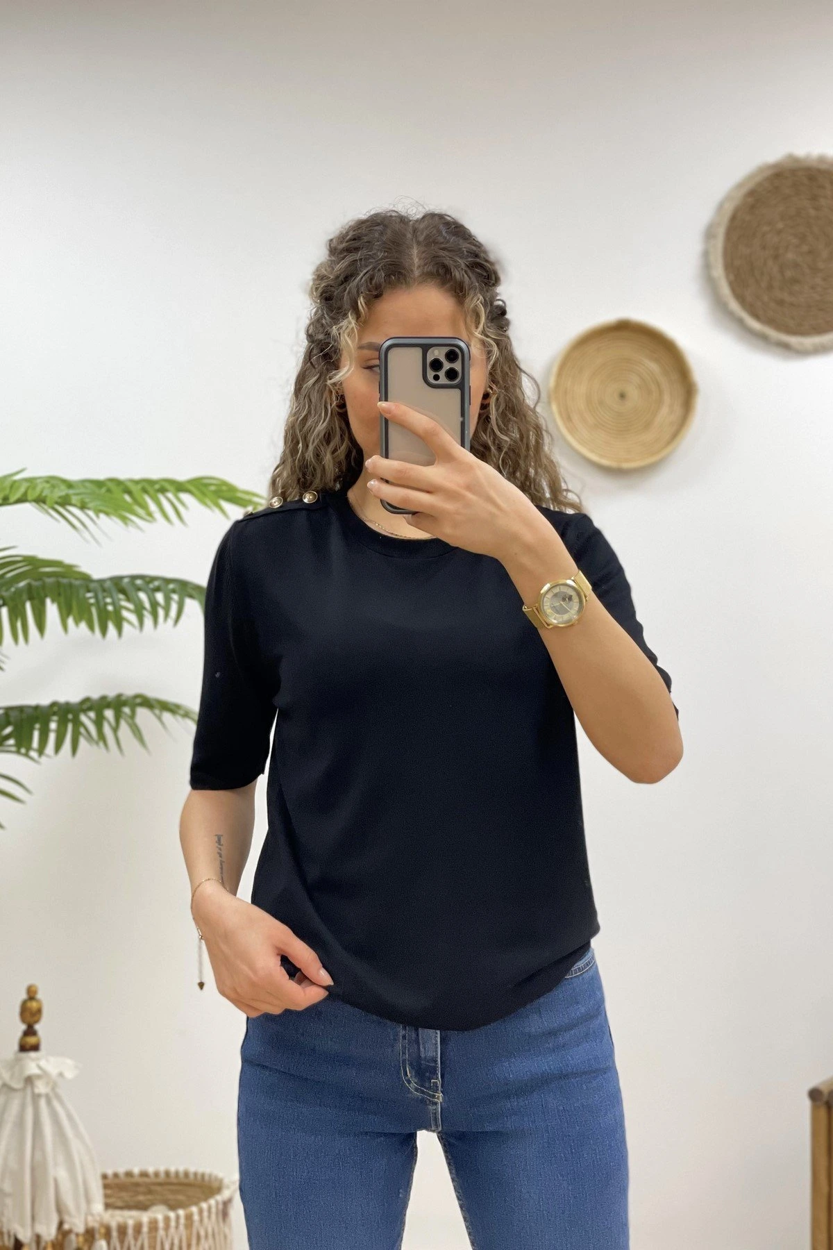 TEK OMUZ DÜĞMELİ KISA KOL VİSKON TRİKO – SİYAH