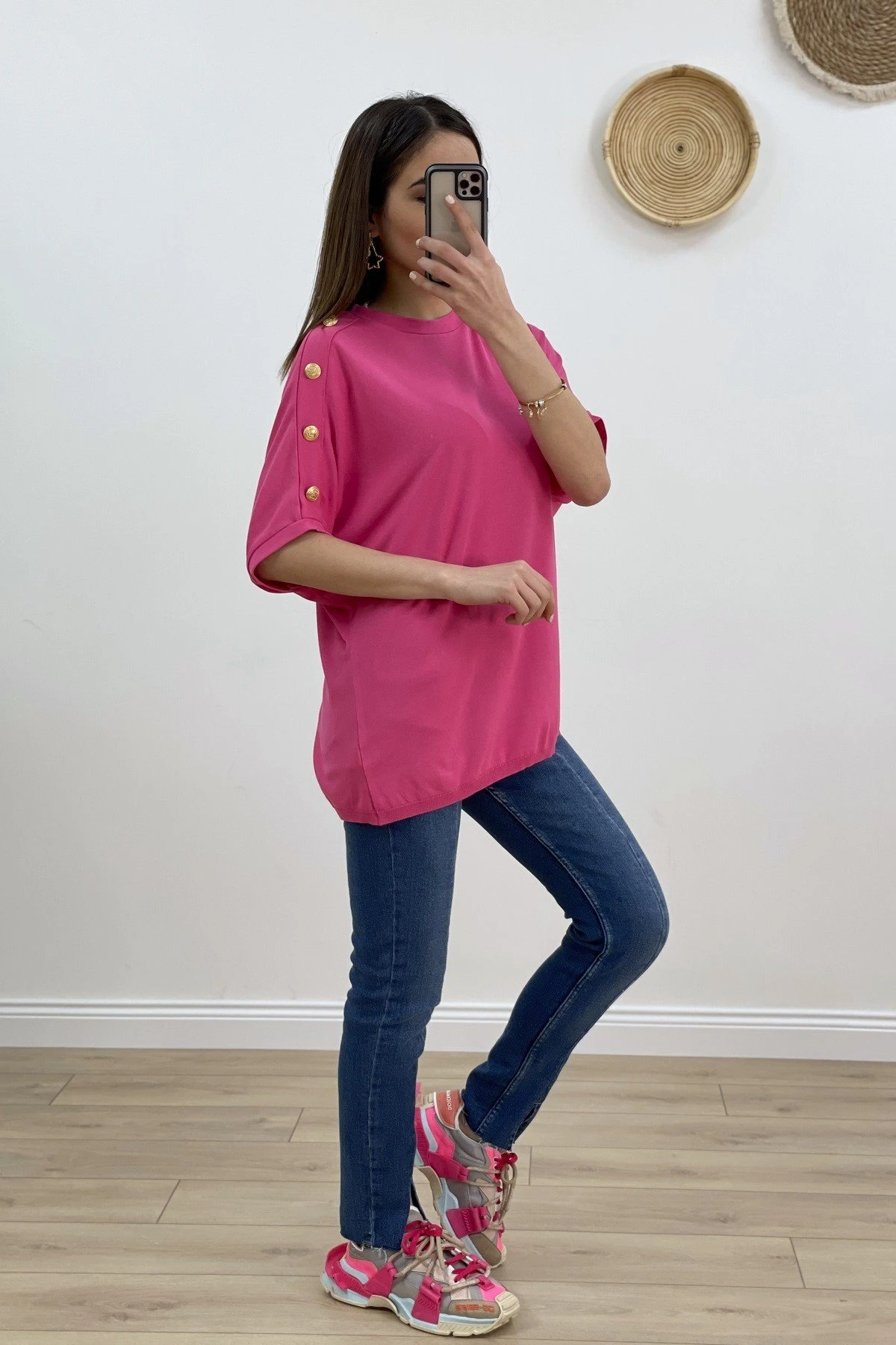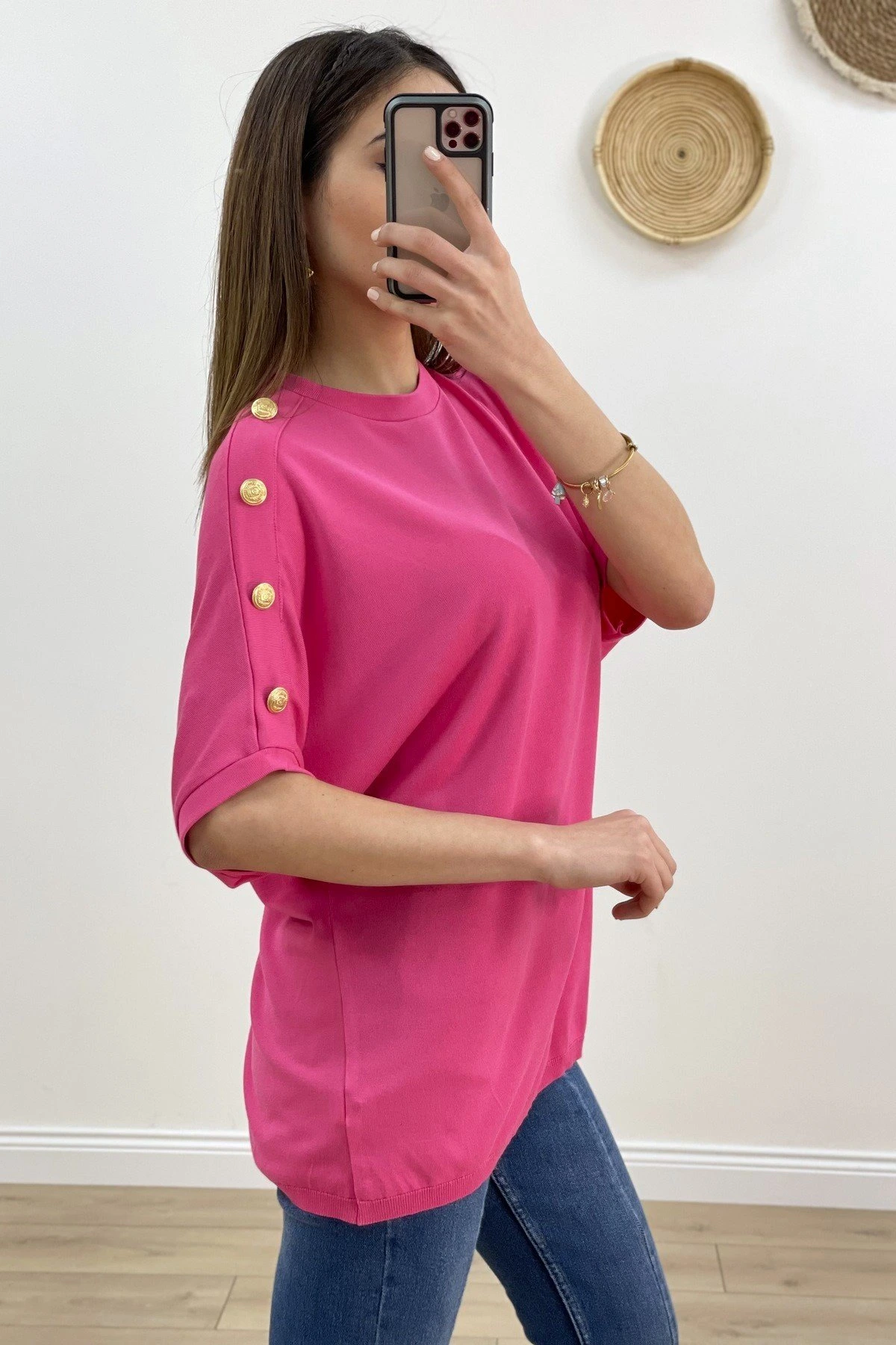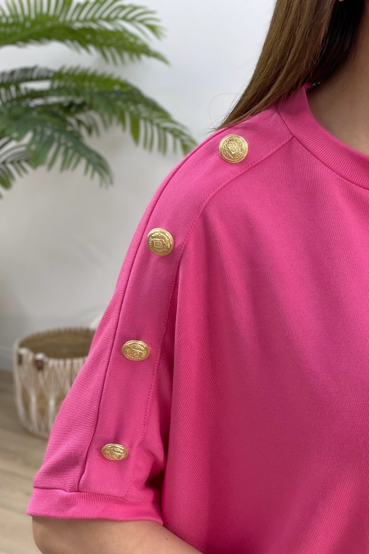 TEK OMUZ KOL DÜĞME SALAŞ DÜŞÜK KOL TRİKO – FUŞYA