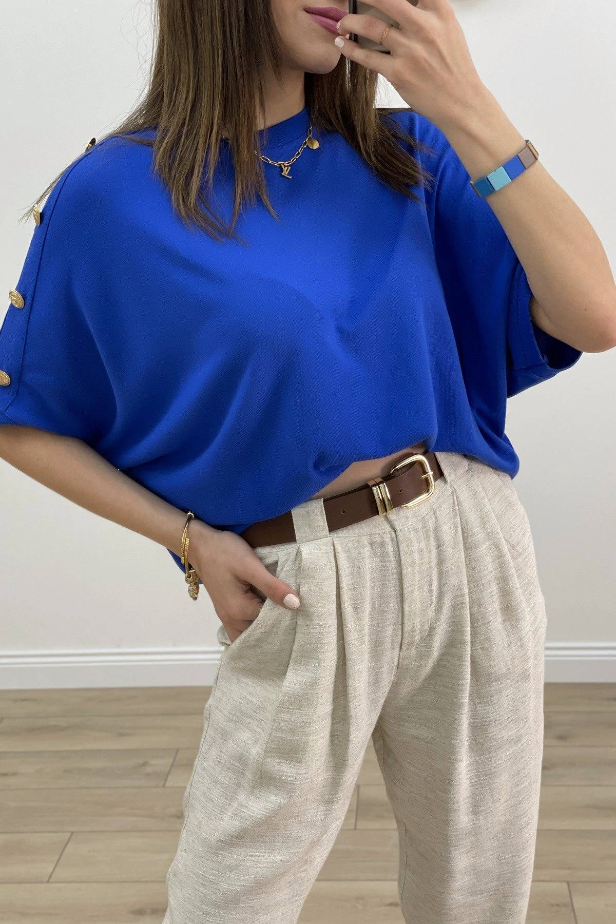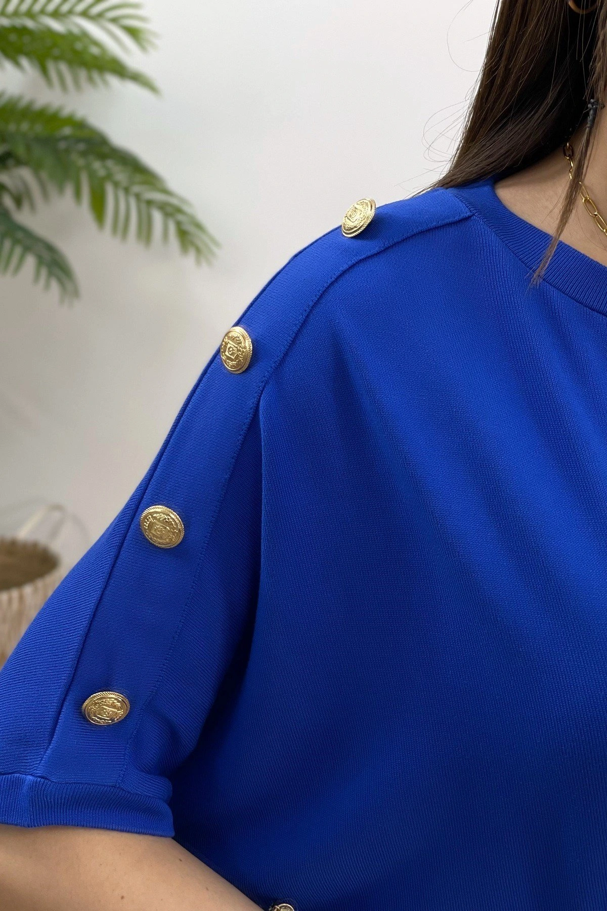 TEK OMUZ KOL DÜĞME SALAŞ DÜŞÜK KOL TRİKO – SAKS