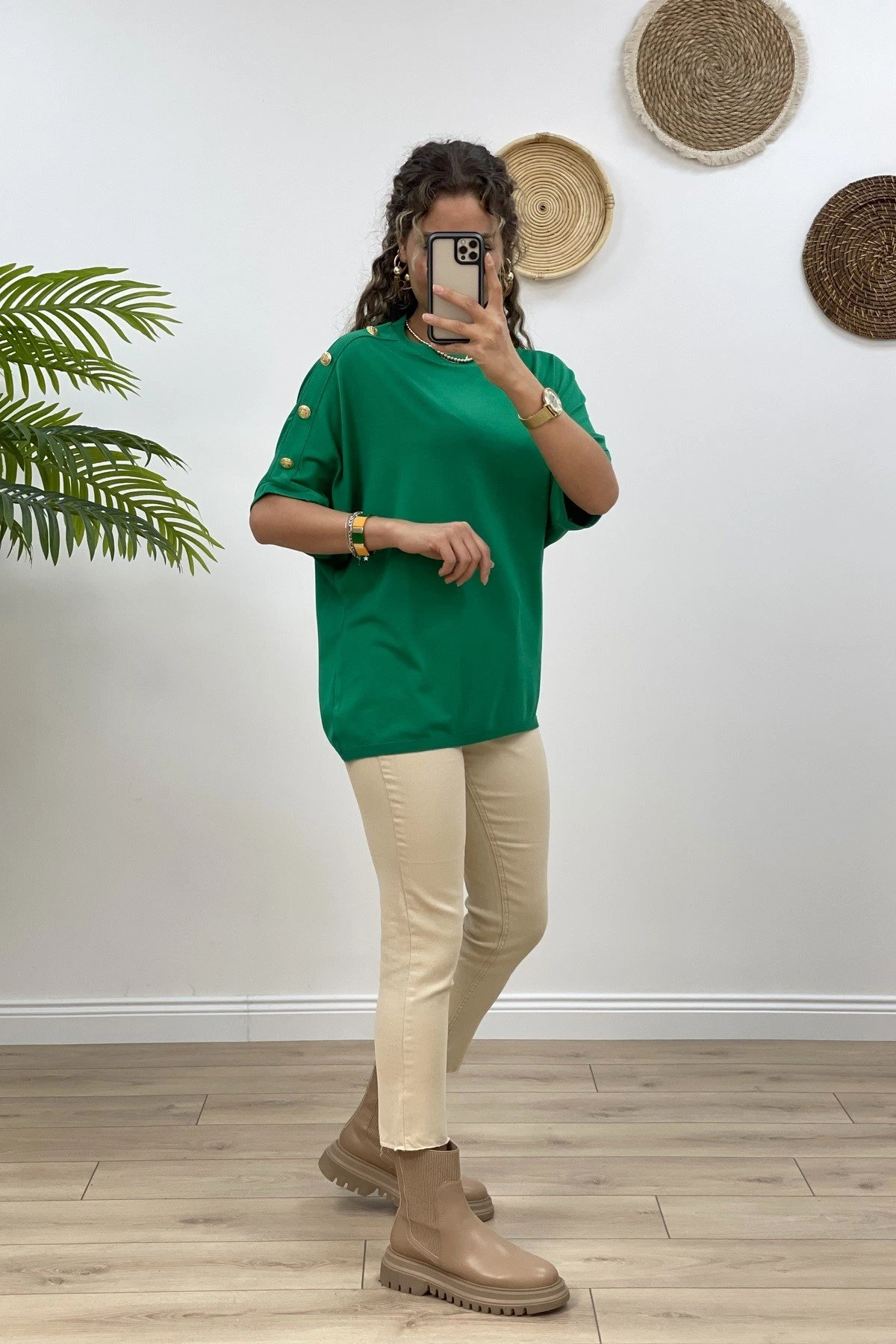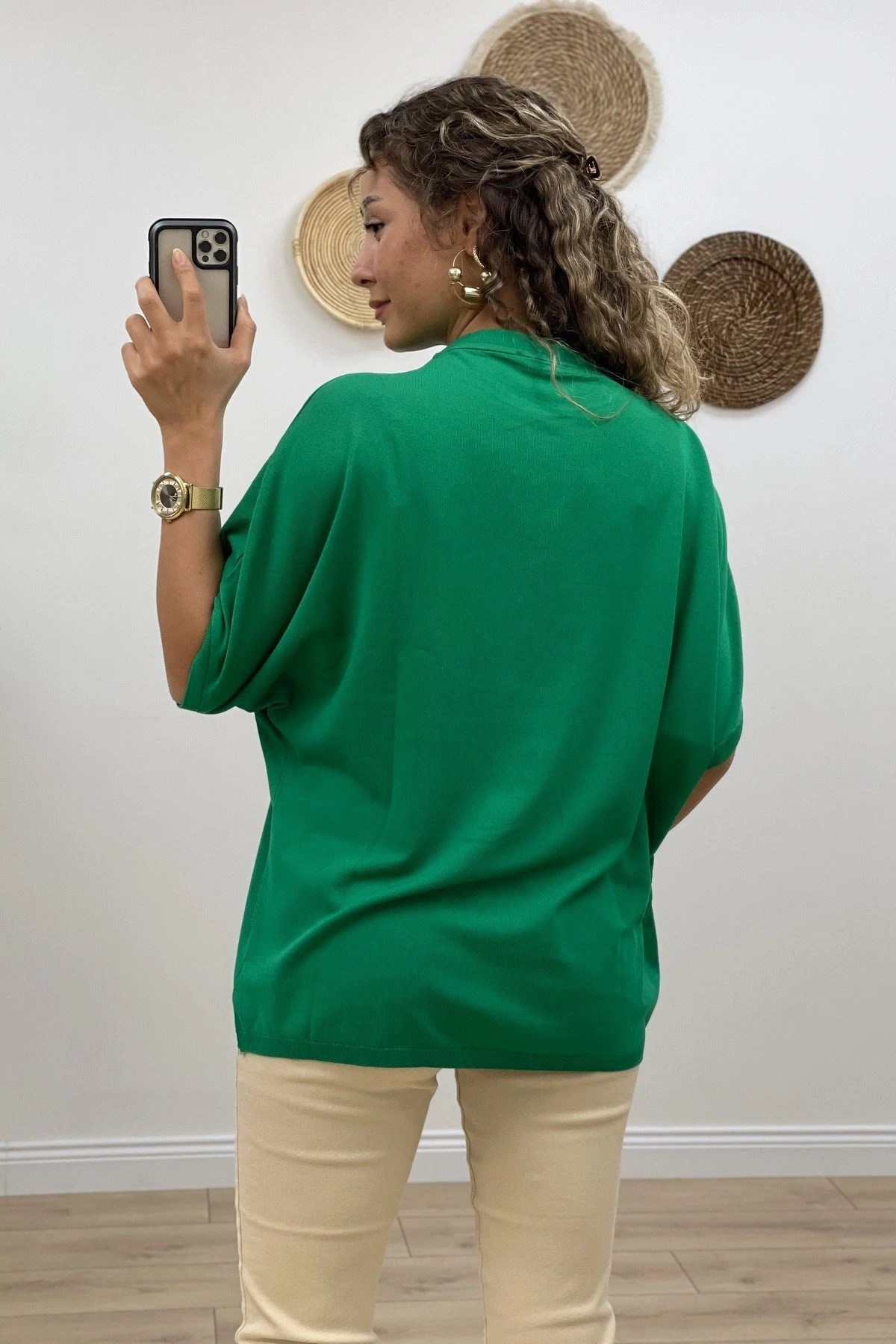 TEK OMUZ KOL DÜĞME SALAŞ DÜŞÜK KOL TRİKO – ZÜMRÜT YEŞİL