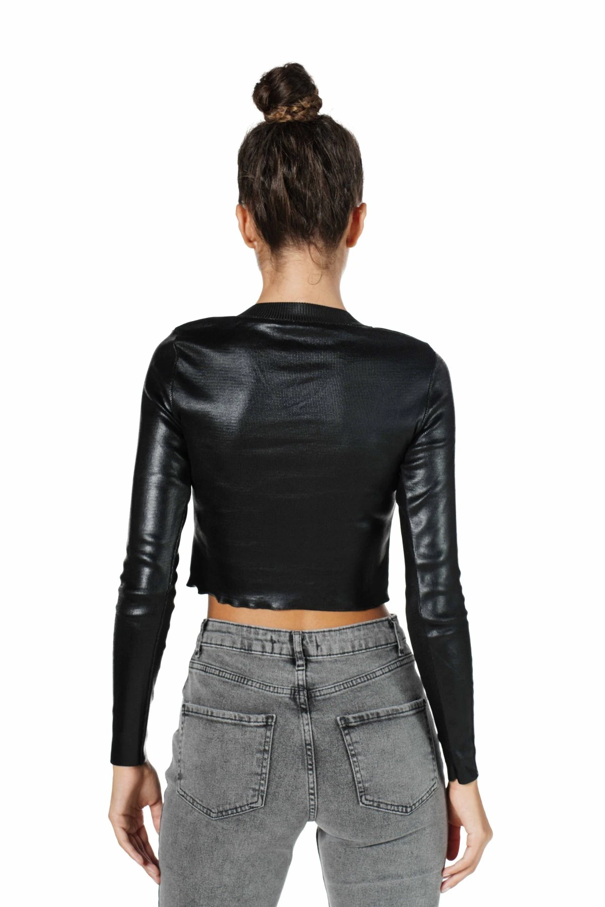 UZUN KOL DİK YAKA VARAK BASKI KISA TRİKO. – SİYAH