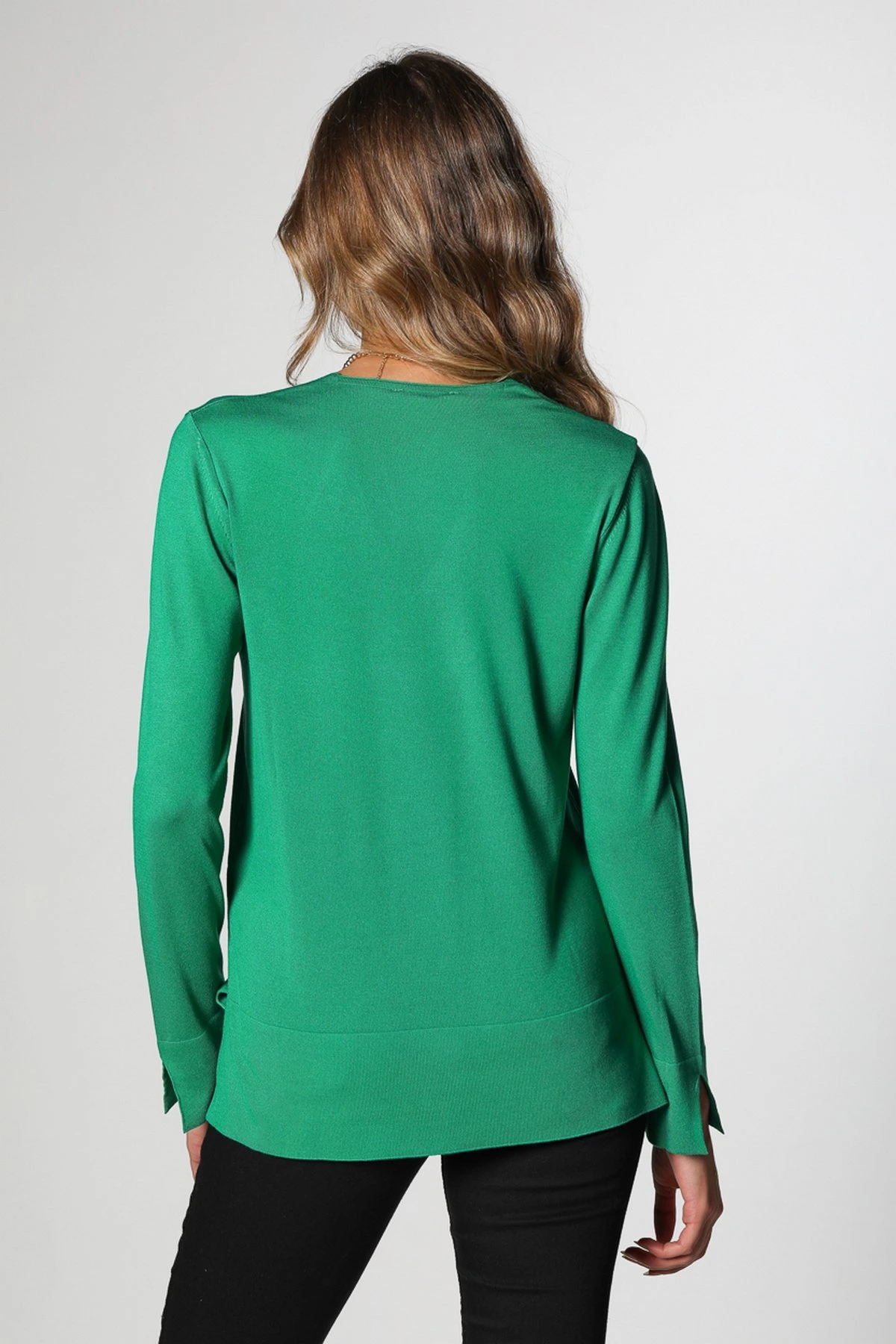 V YAKA BİLEK VE ETEK UCU YIRTMAÇLI TRİKO – ZÜMRÜT YEŞİL