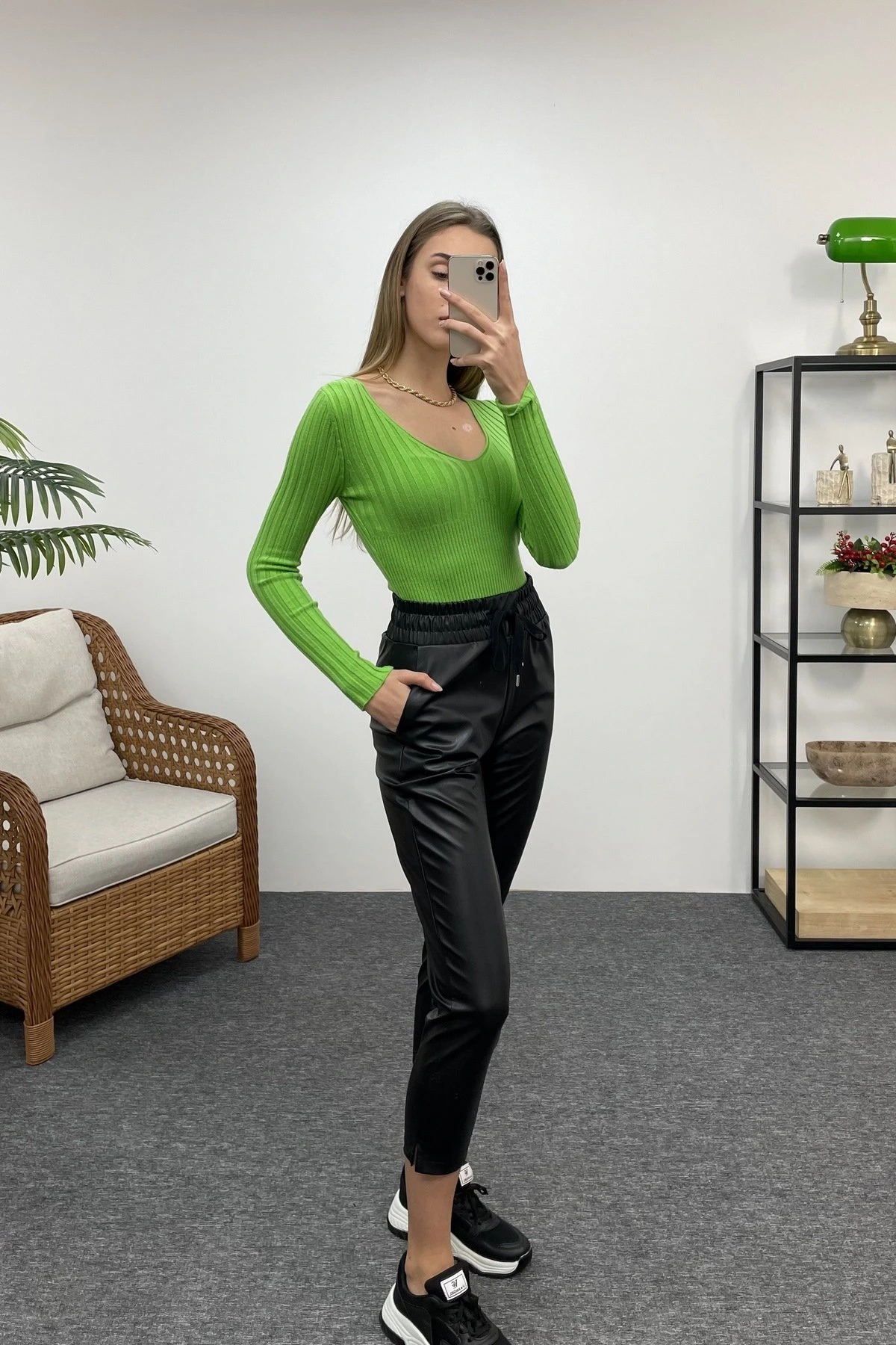 V YAKA FİTİLLİ LİKRALI TRİKO – YEŞİL