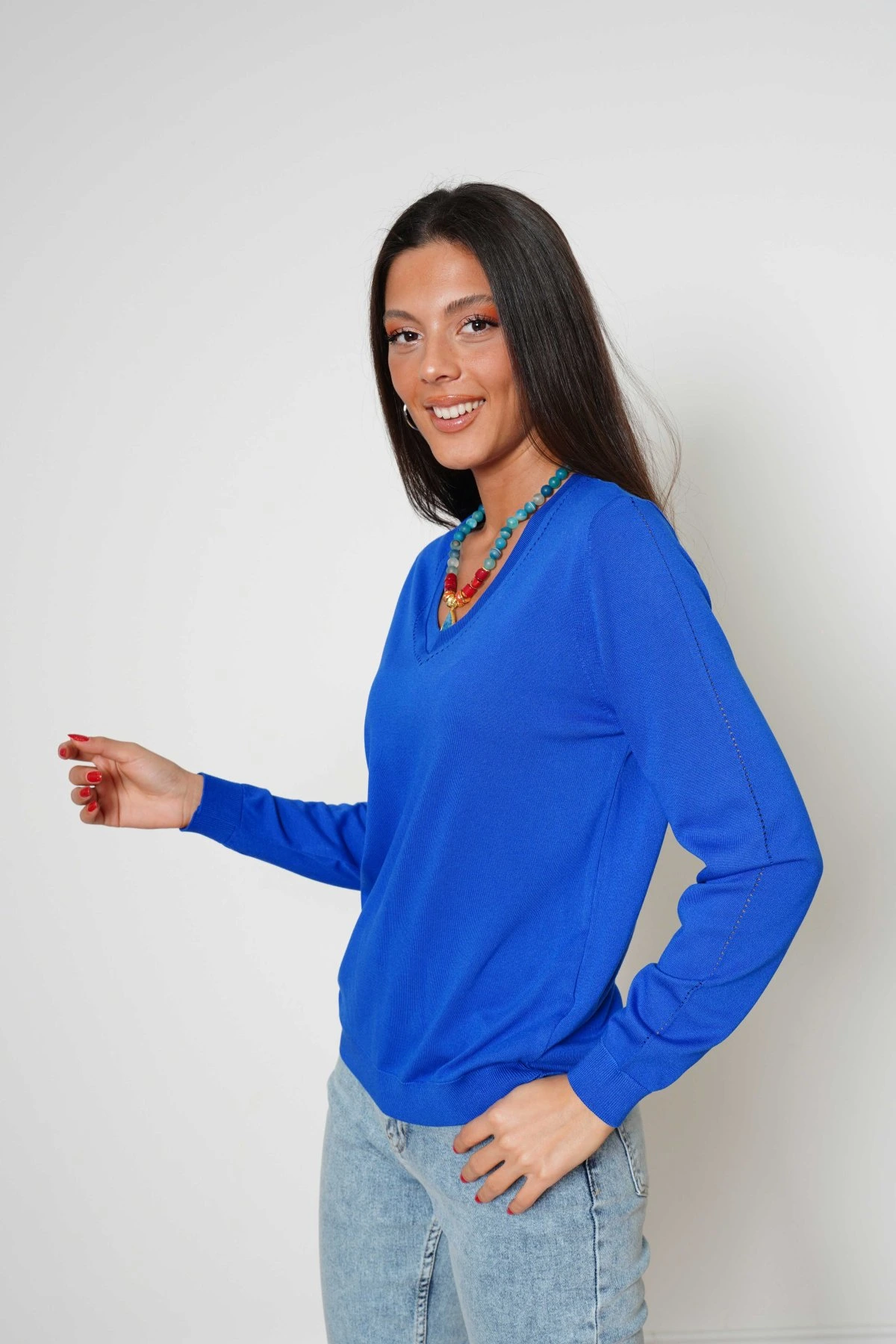 V YAKA KOL AJUR DETAY VİSKON TRİKO – SAKS