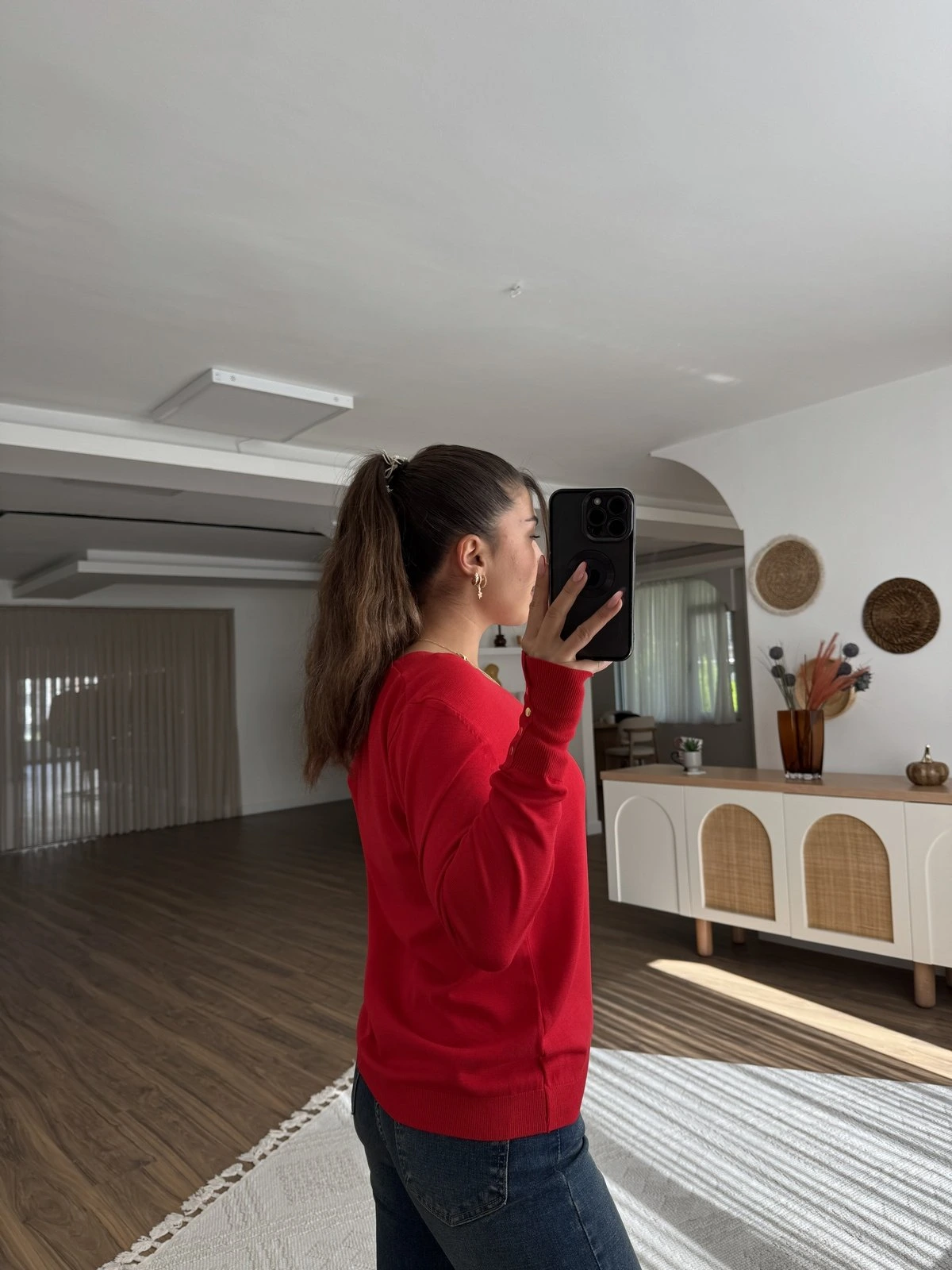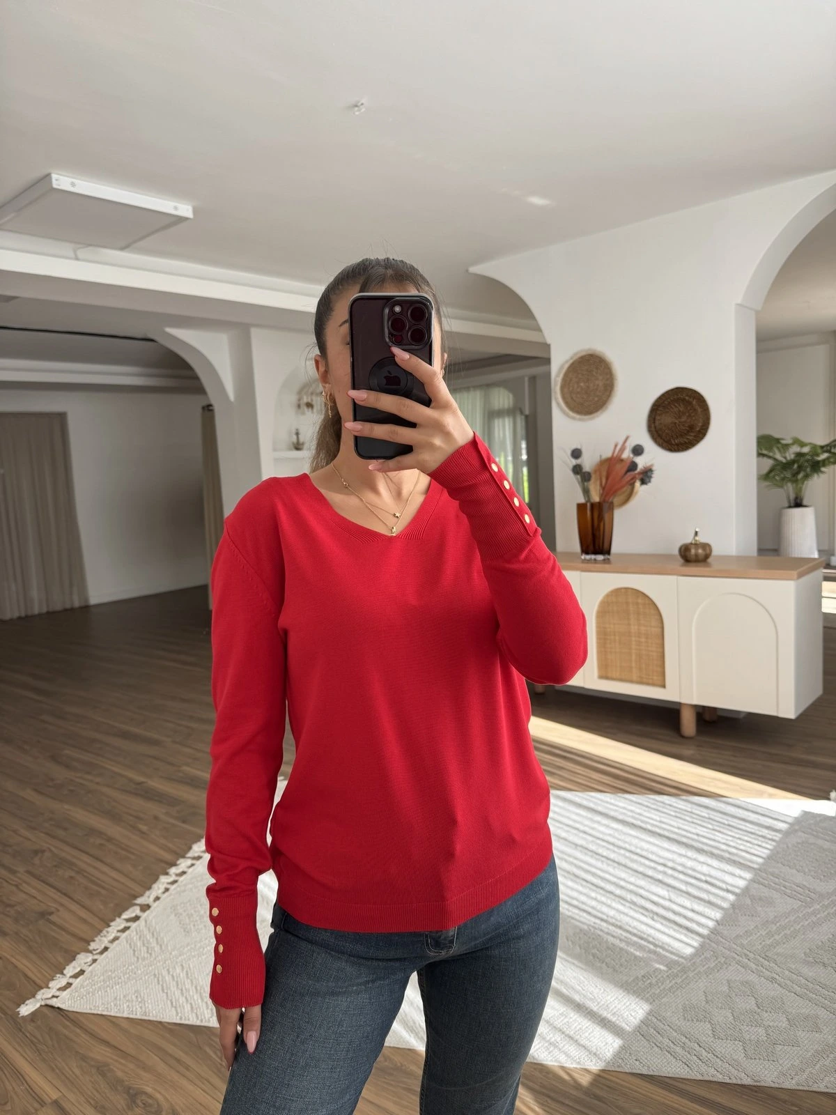 V YAKA KOL DROPLU VİSKON TRİKO – KIRMIZI