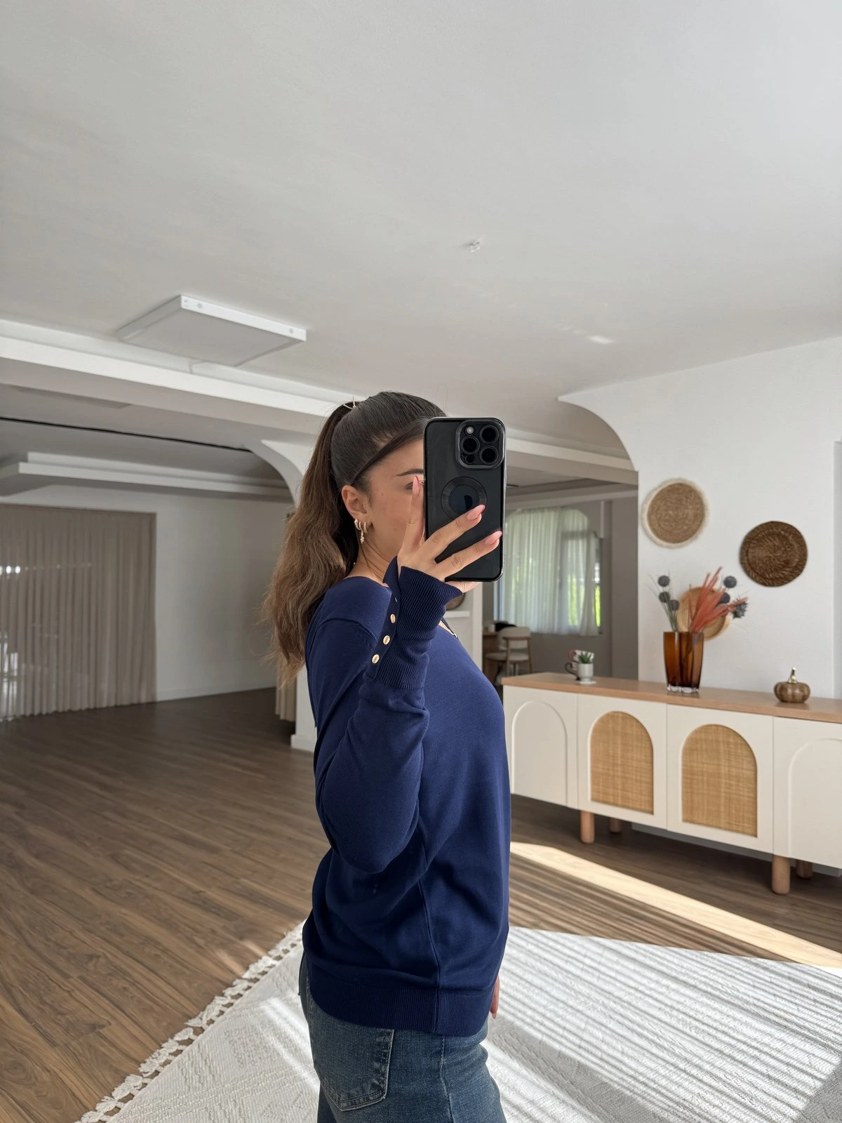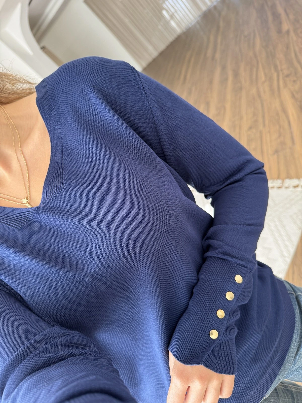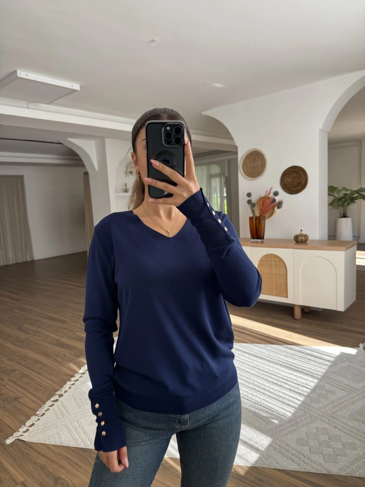 V YAKA KOL DROPLU VİSKON TRİKO – LACİVERT