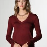 V YAKA KOL MANŞETİ DROPLU TRİKO – BORDO