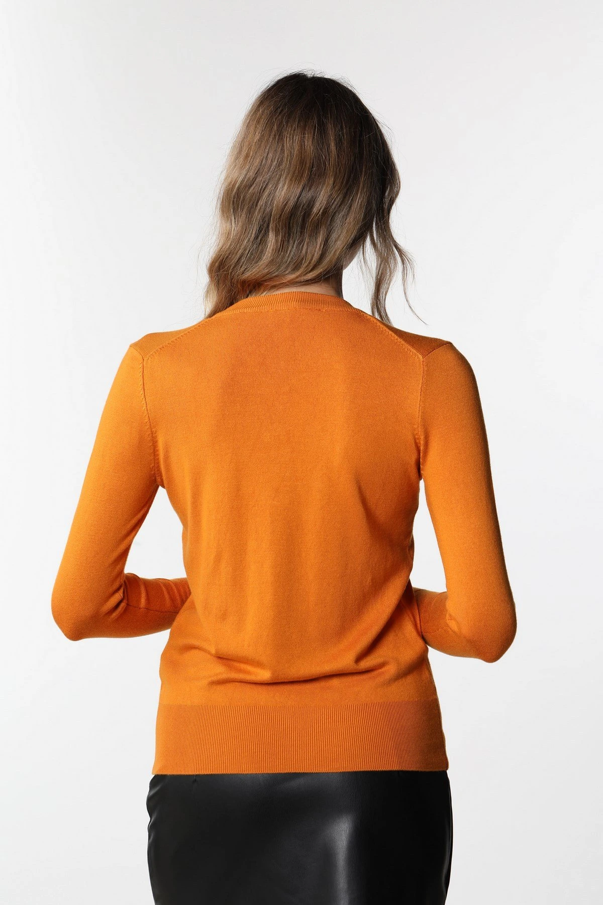 V YAKA KOL MANŞETİ DROPLU TRİKO – YANIK TURUNCU