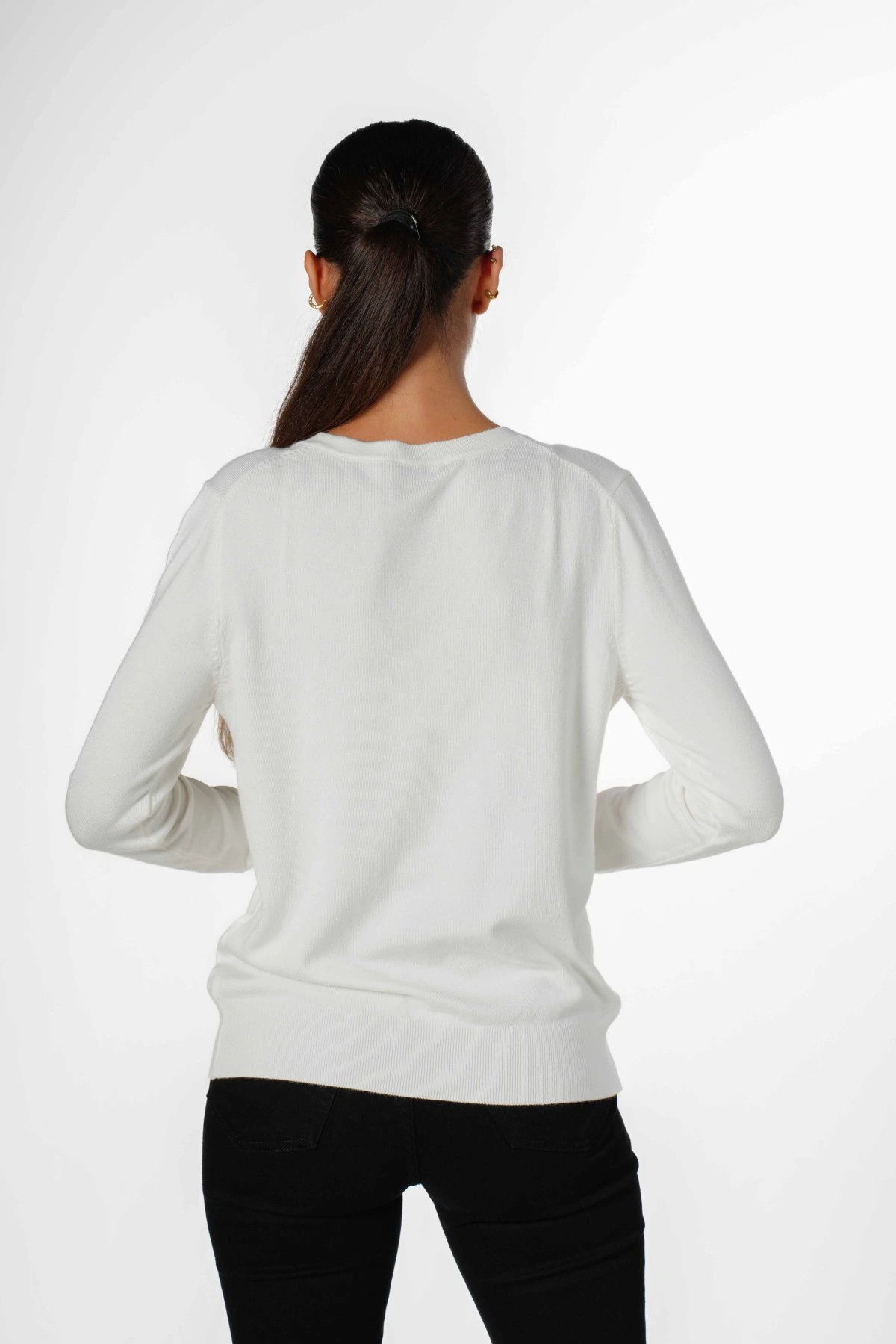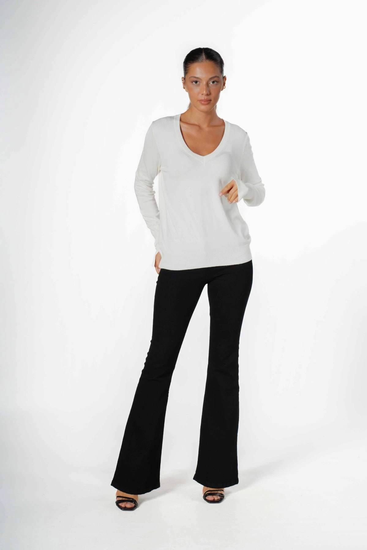 V YAKA KOL YIRTMAÇ TRİKO – EKRU