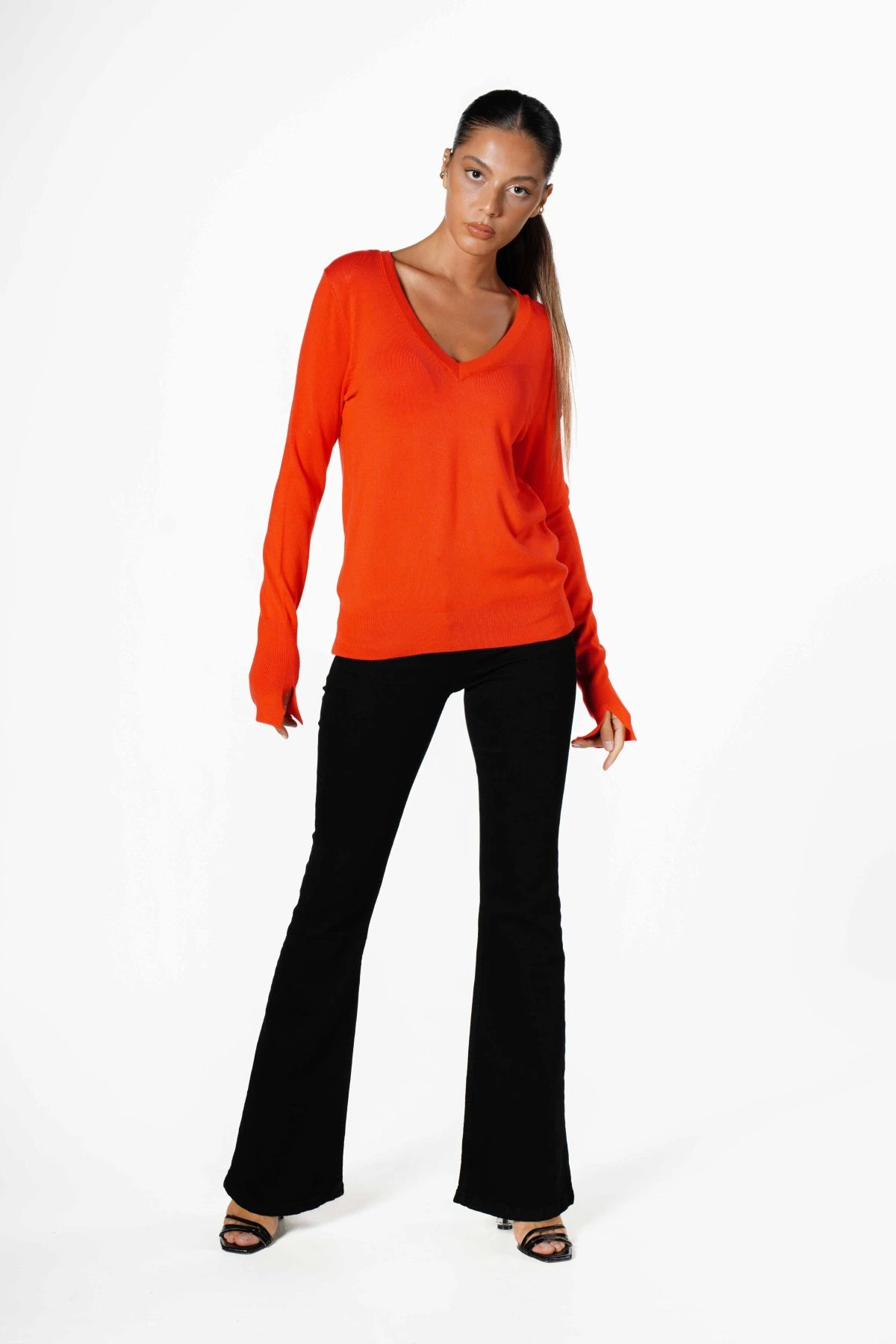 V YAKA KOL YIRTMAÇ TRİKO – KIRMIZI