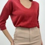 V YAKA SİMLİ TRİKO – KIRMIZI