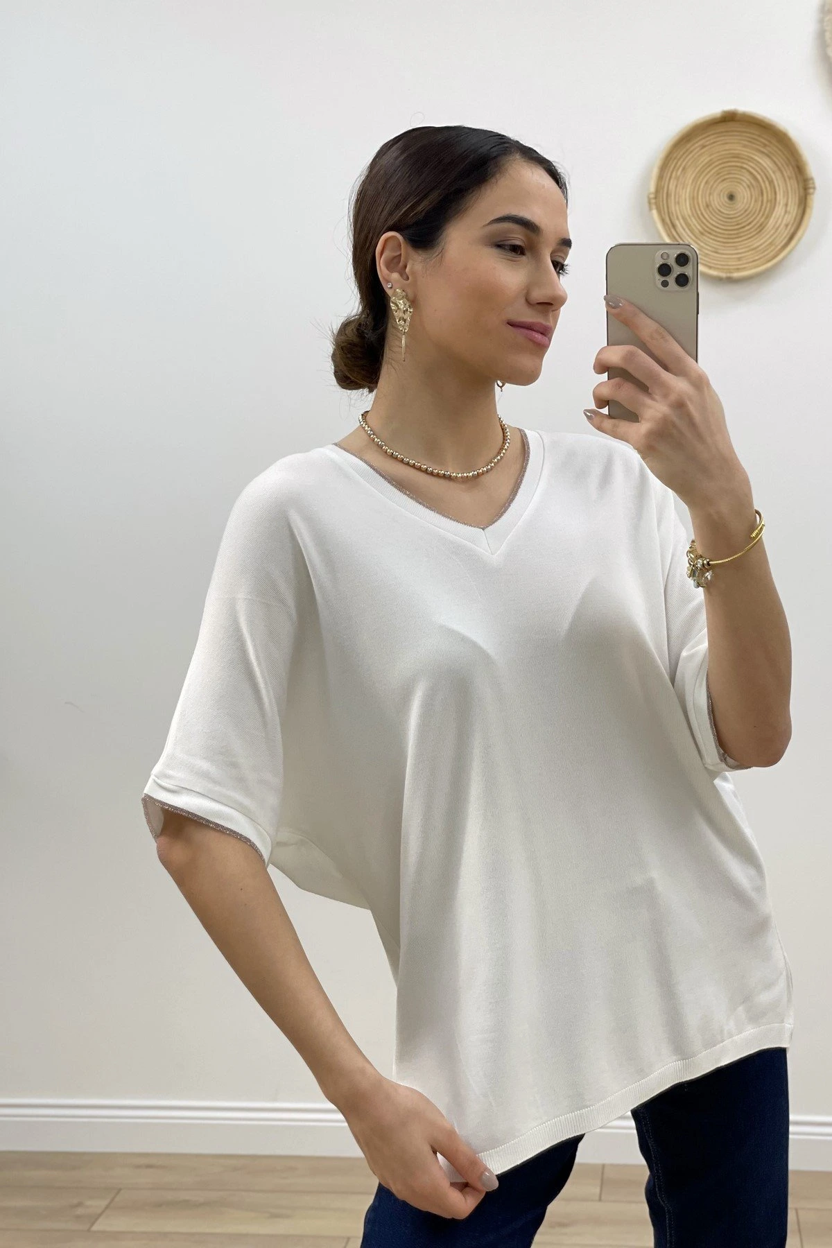V YAKA VE KOL SİM ŞERİT YARASA KOL TRİKO – EKRU