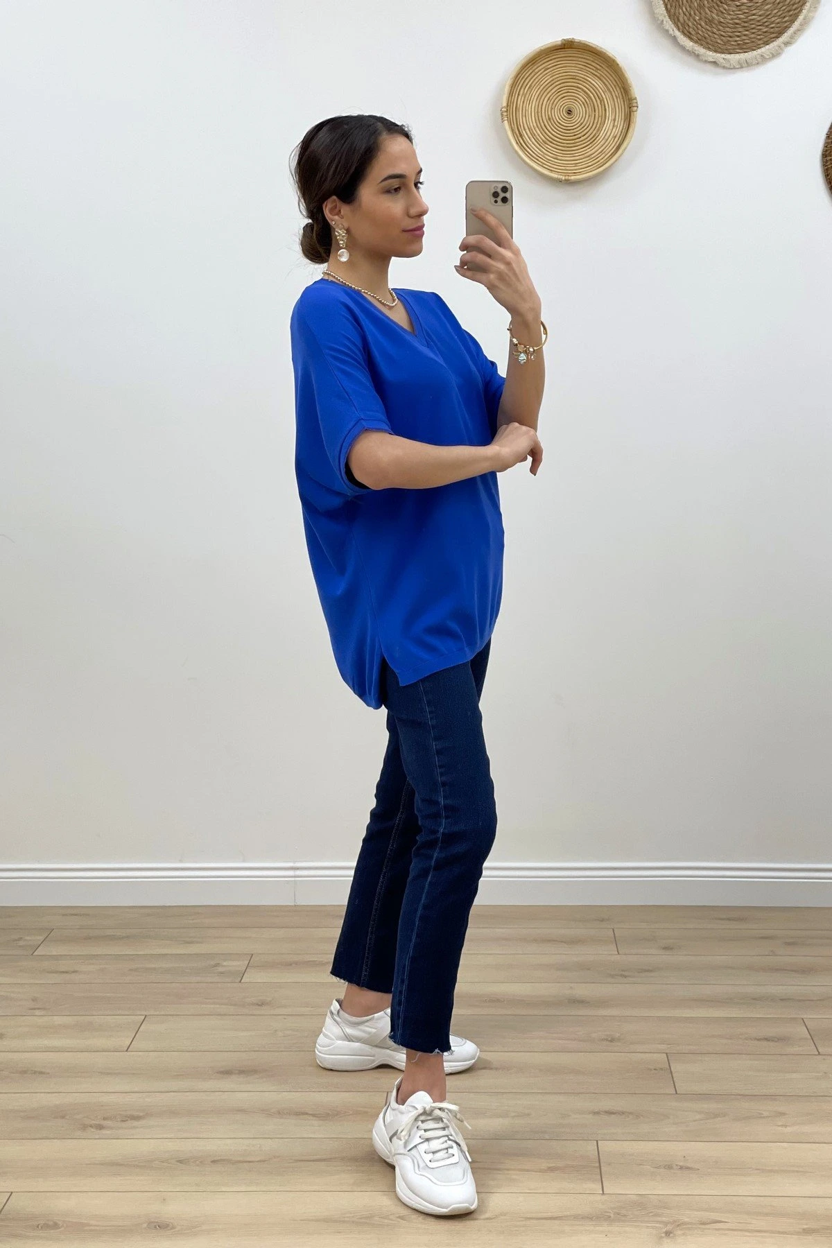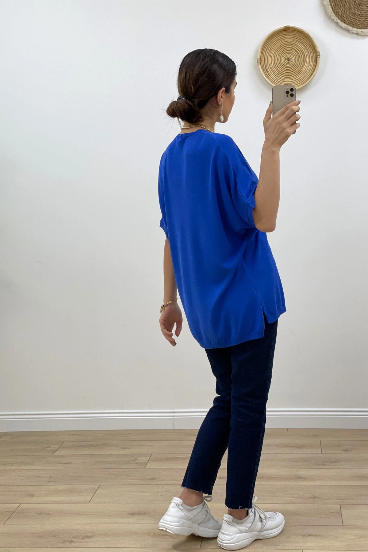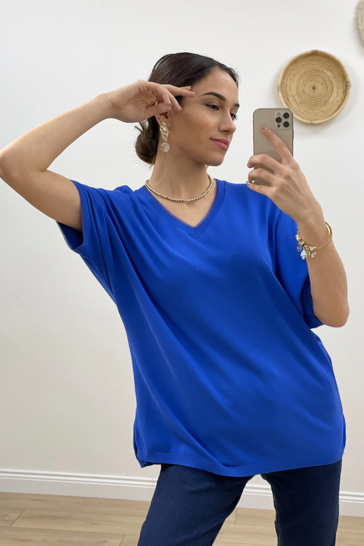 V YAKA VE KOL SİM ŞERİT YARASA KOL TRİKO – SAKS