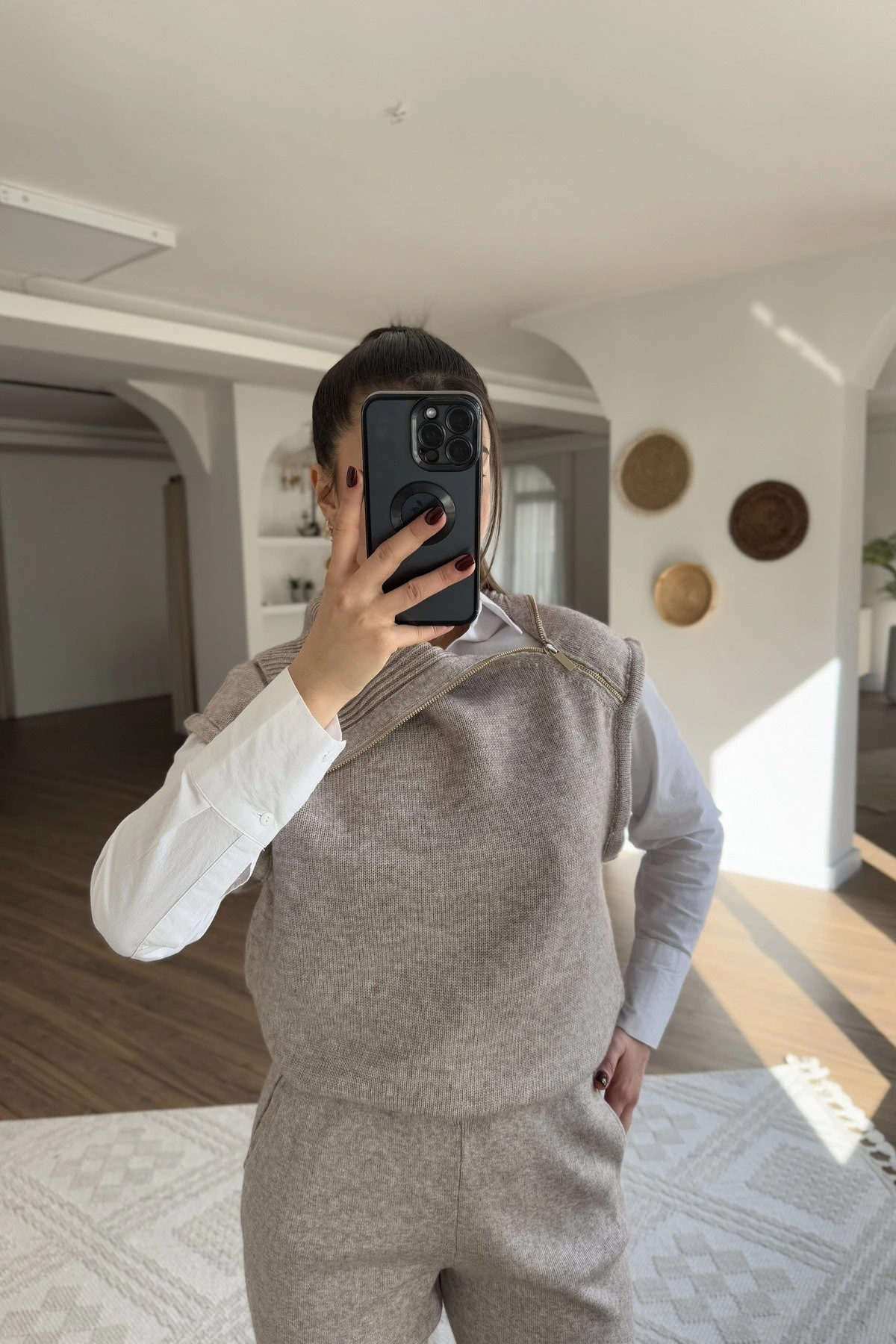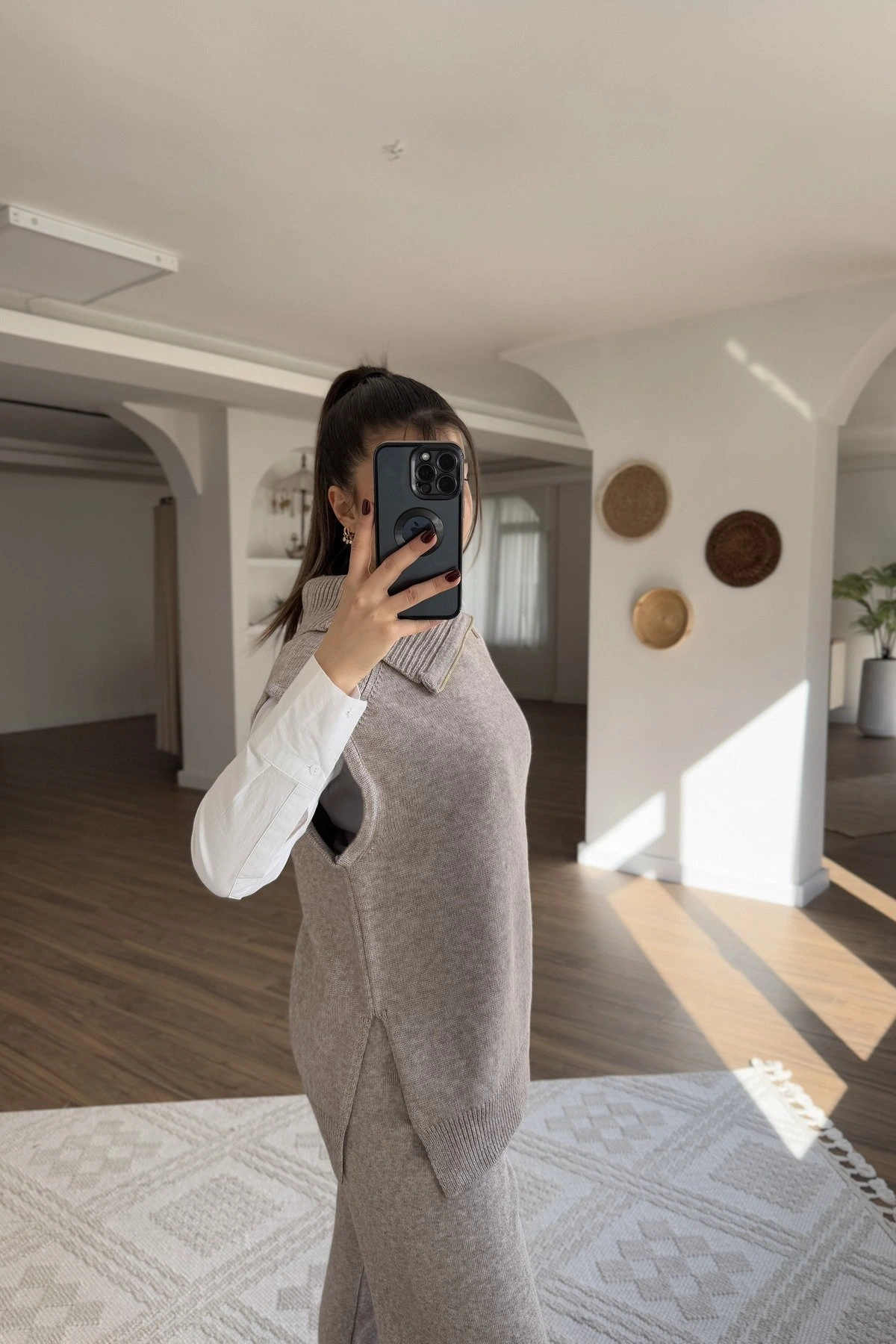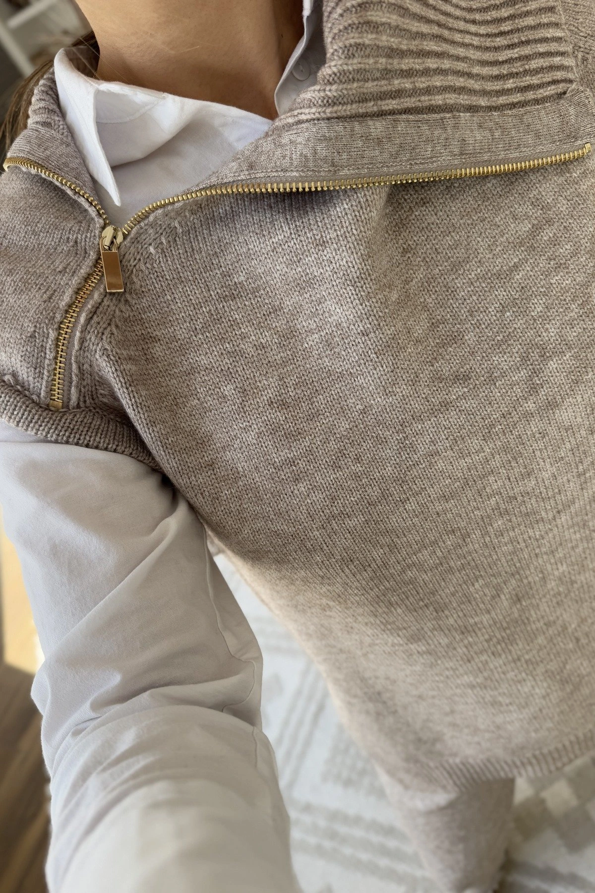 YAKA FERMUAR YAN YIRTMAÇLI YÜN KARIŞIM SÜVETER – VİZON