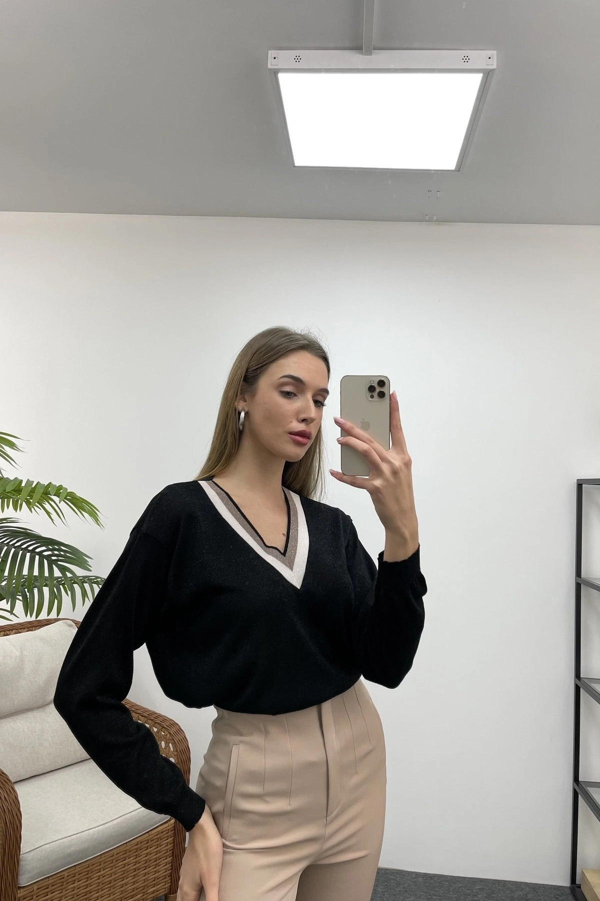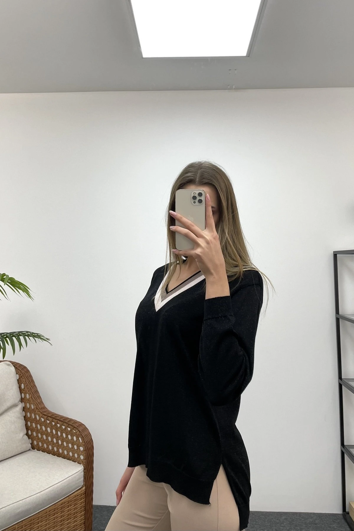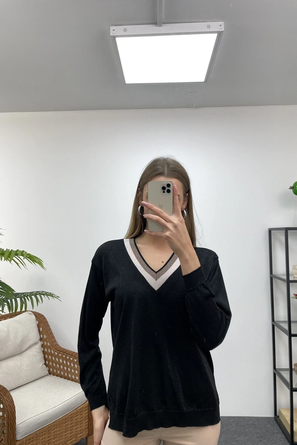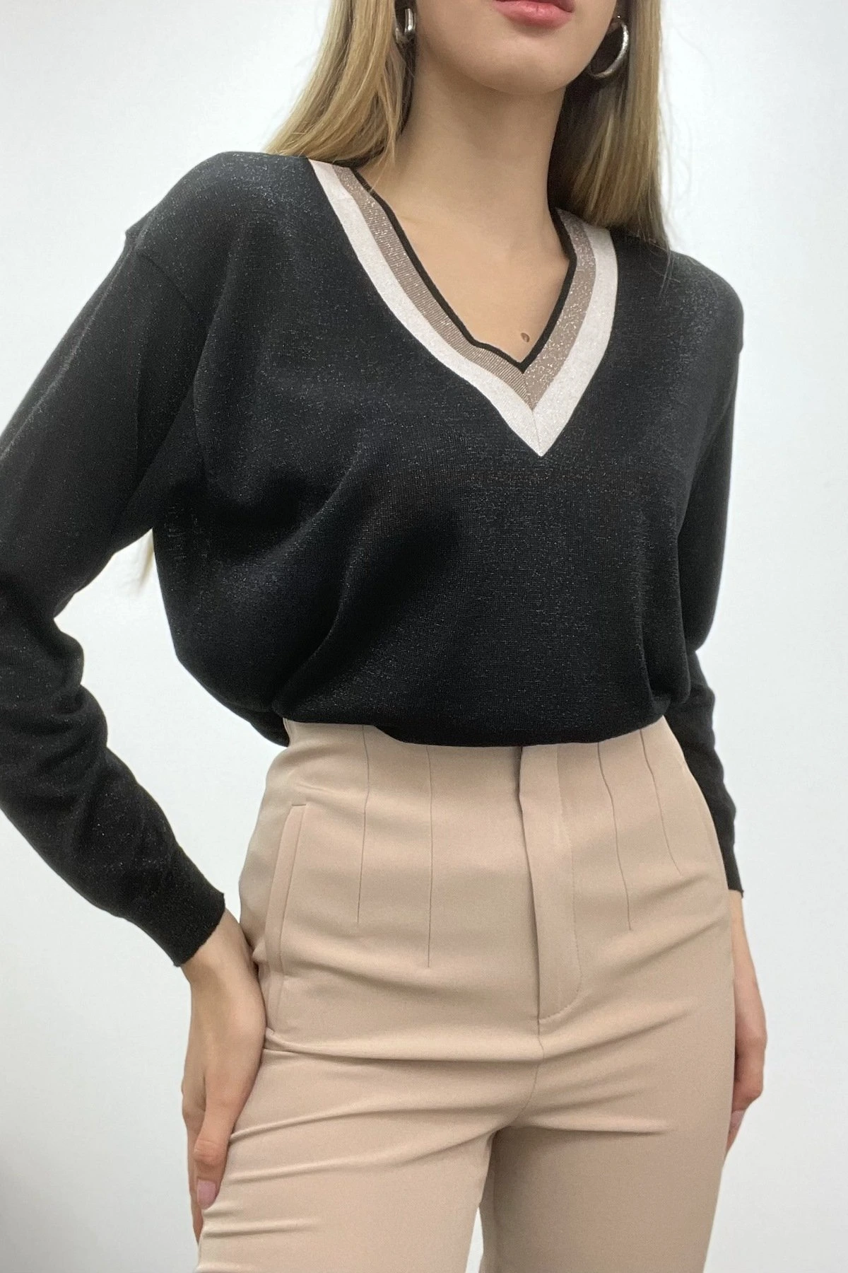 YAKA İKİ RENKLİ SİMLİ TRİKO – SİYAH