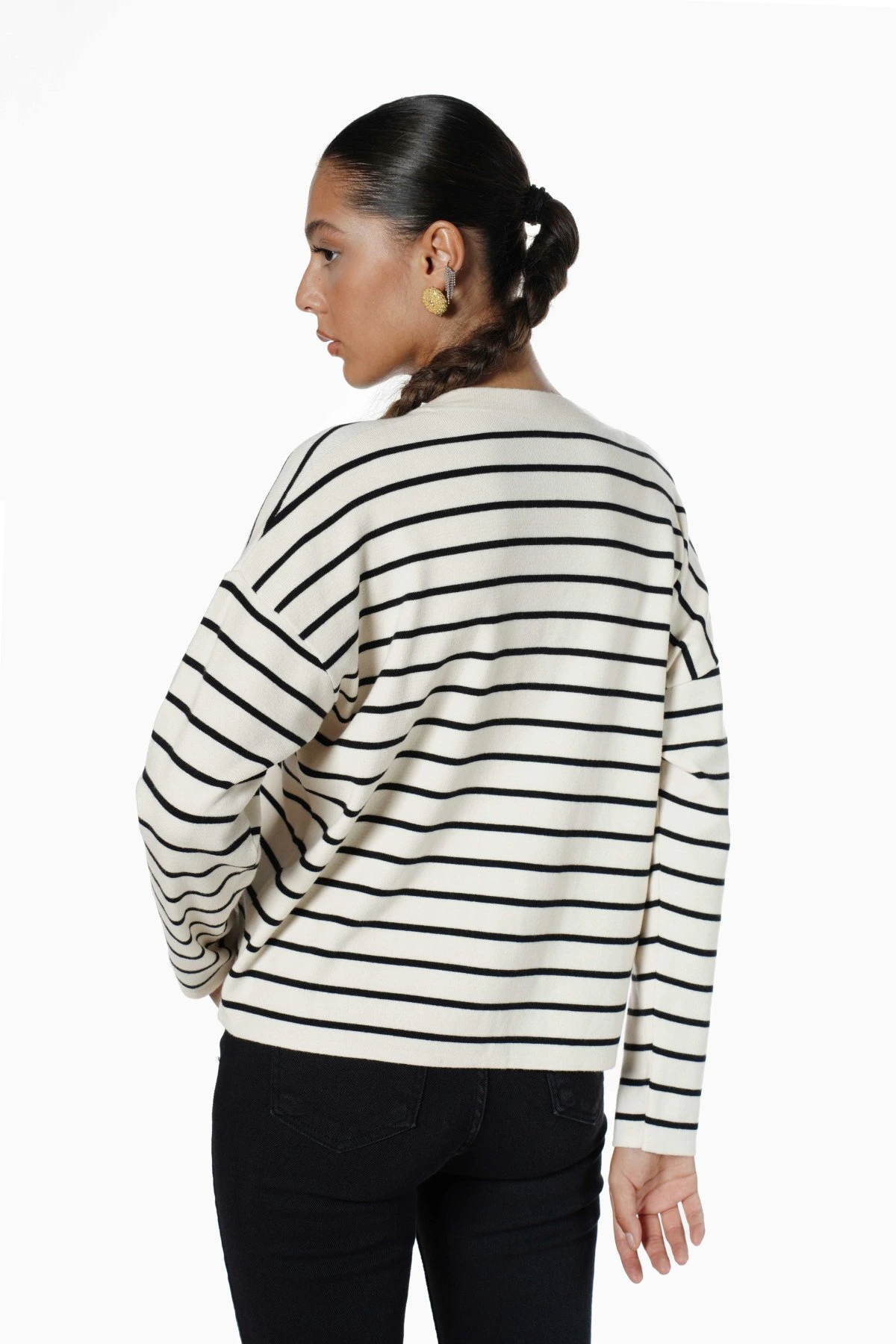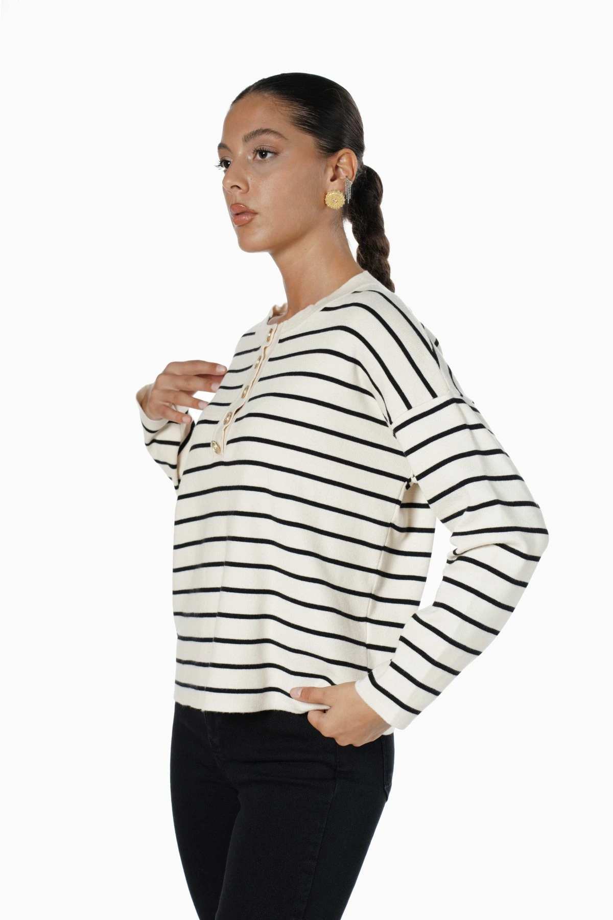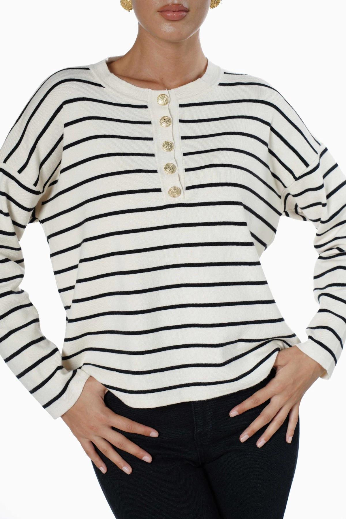 YARI PATLI GOLD DÜĞME ÇİZGİLİ VİSKON TRİKO – KREM