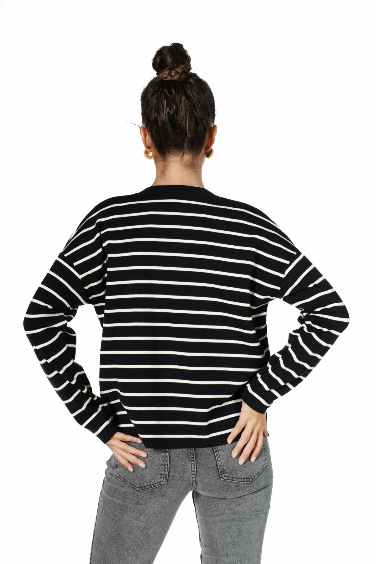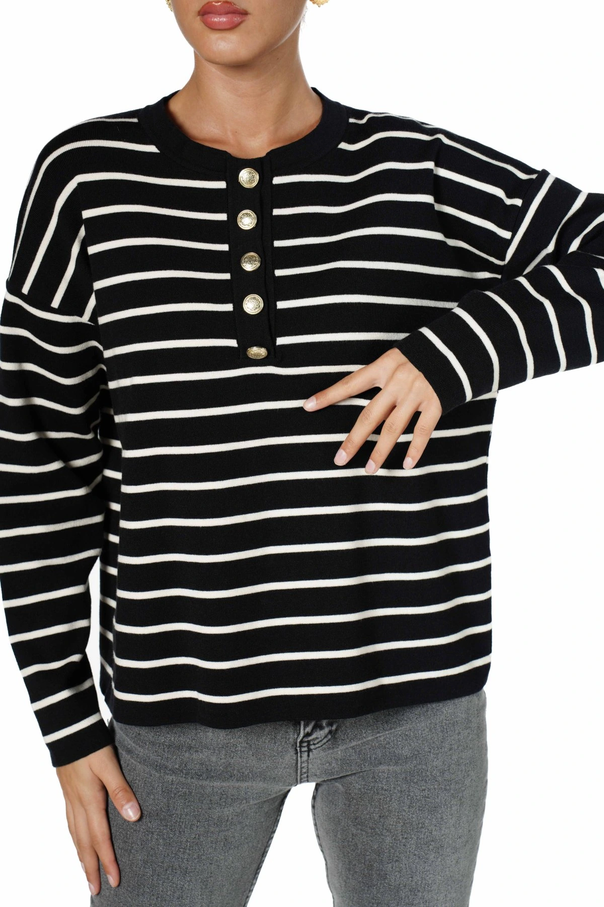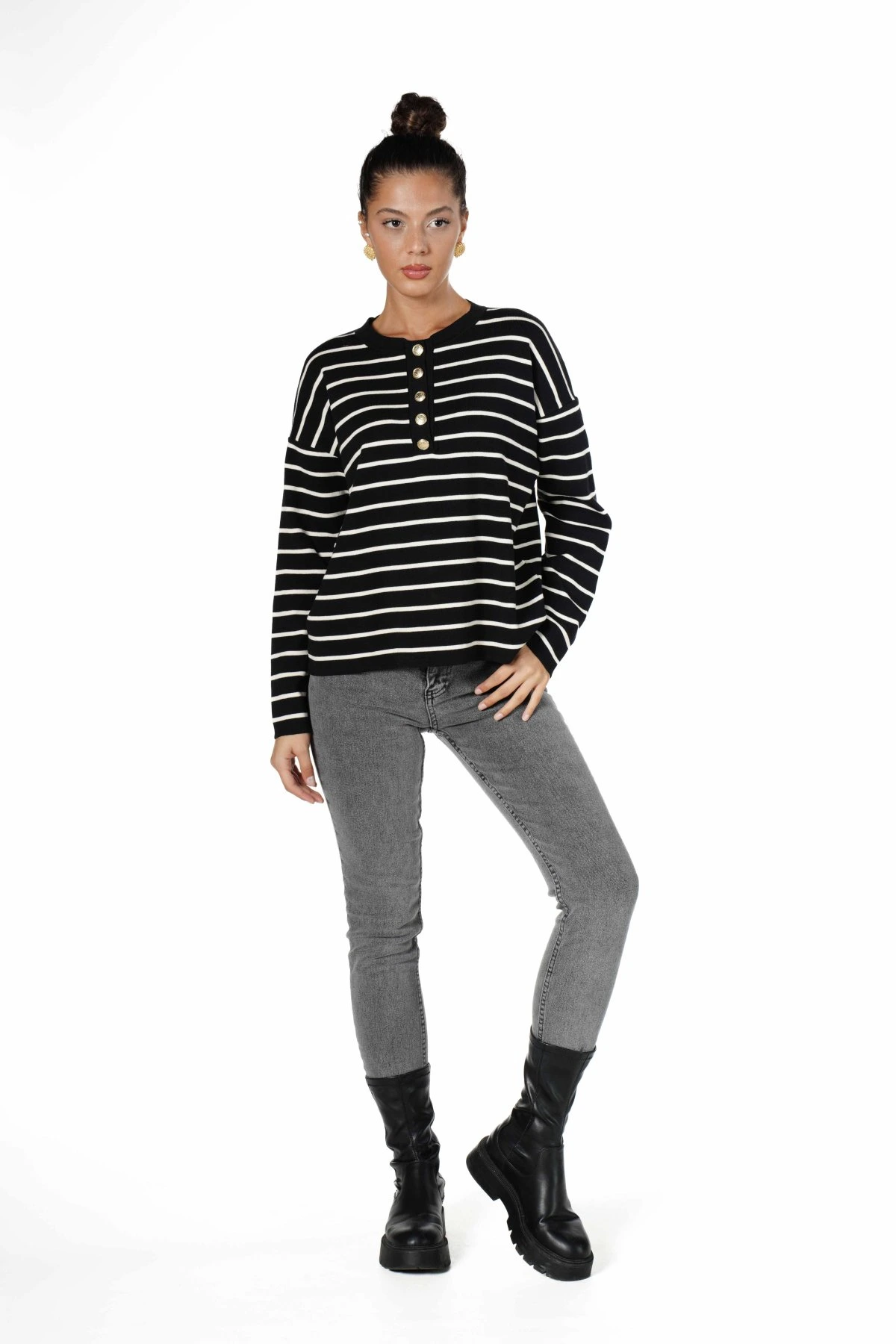 YARI PATLI GOLD DÜĞME ÇİZGİLİ VİSKON TRİKO – SİYAH