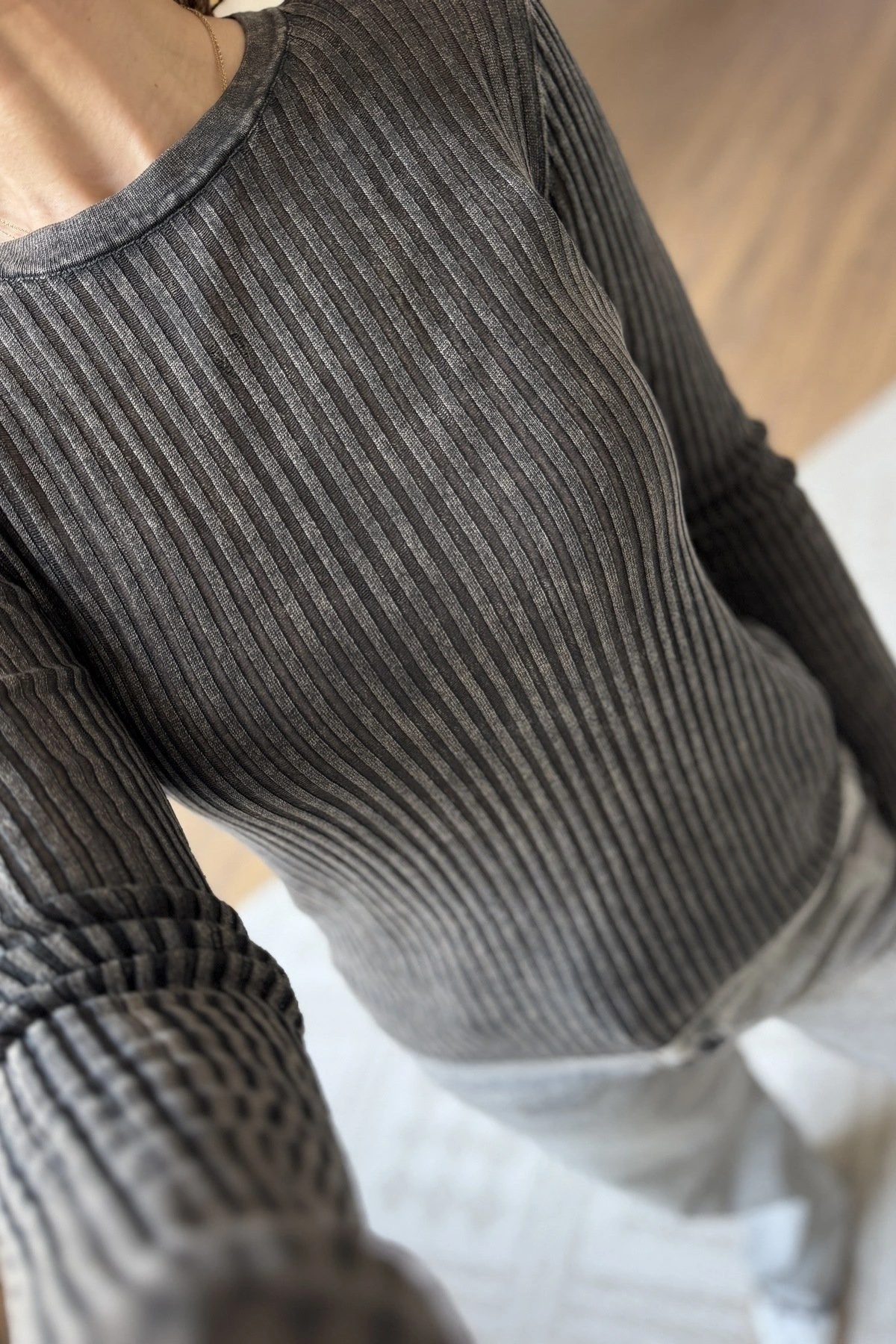 YIKAMALI AJURLU VİSKON TRİKO BLUZ – FÜME