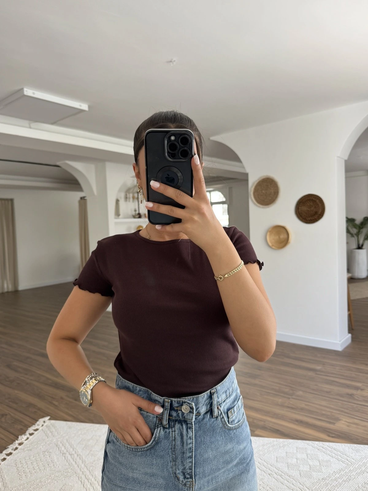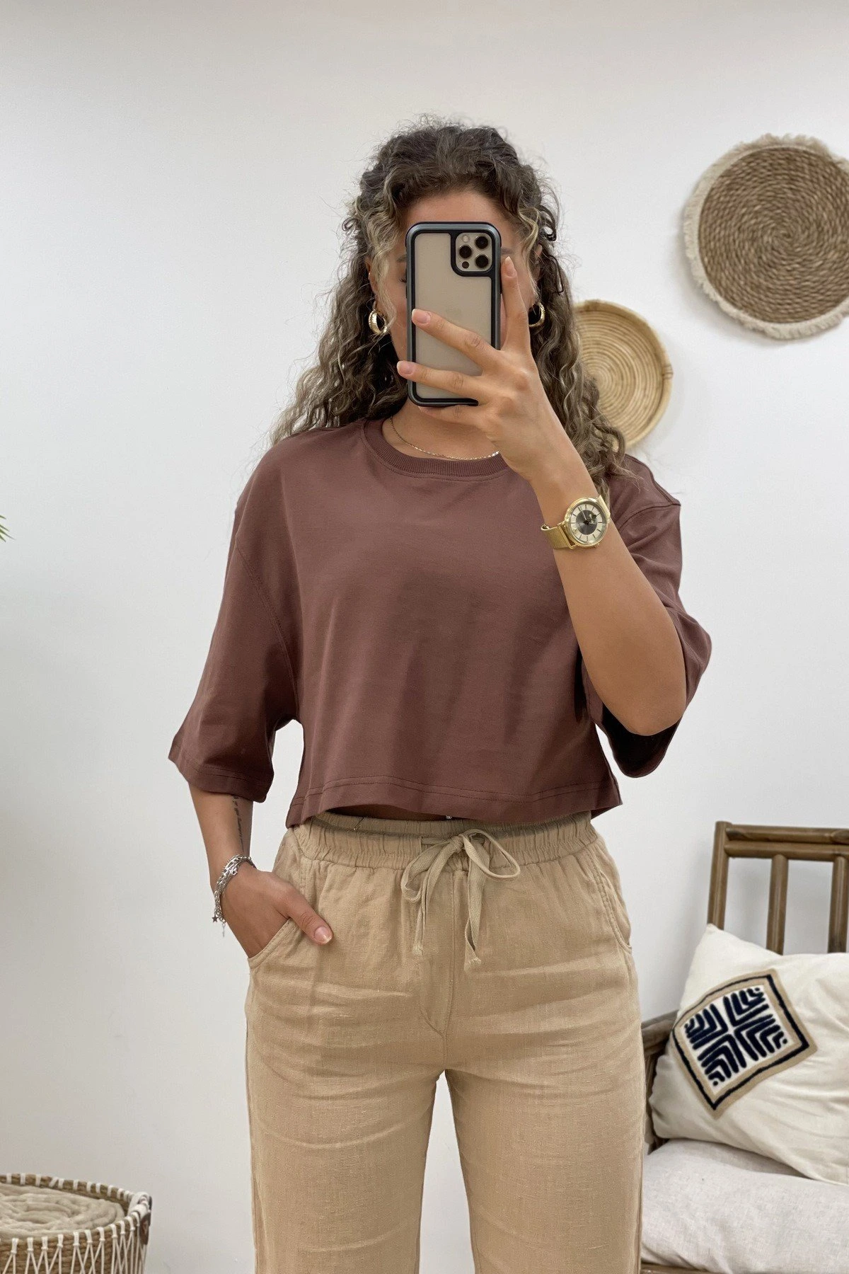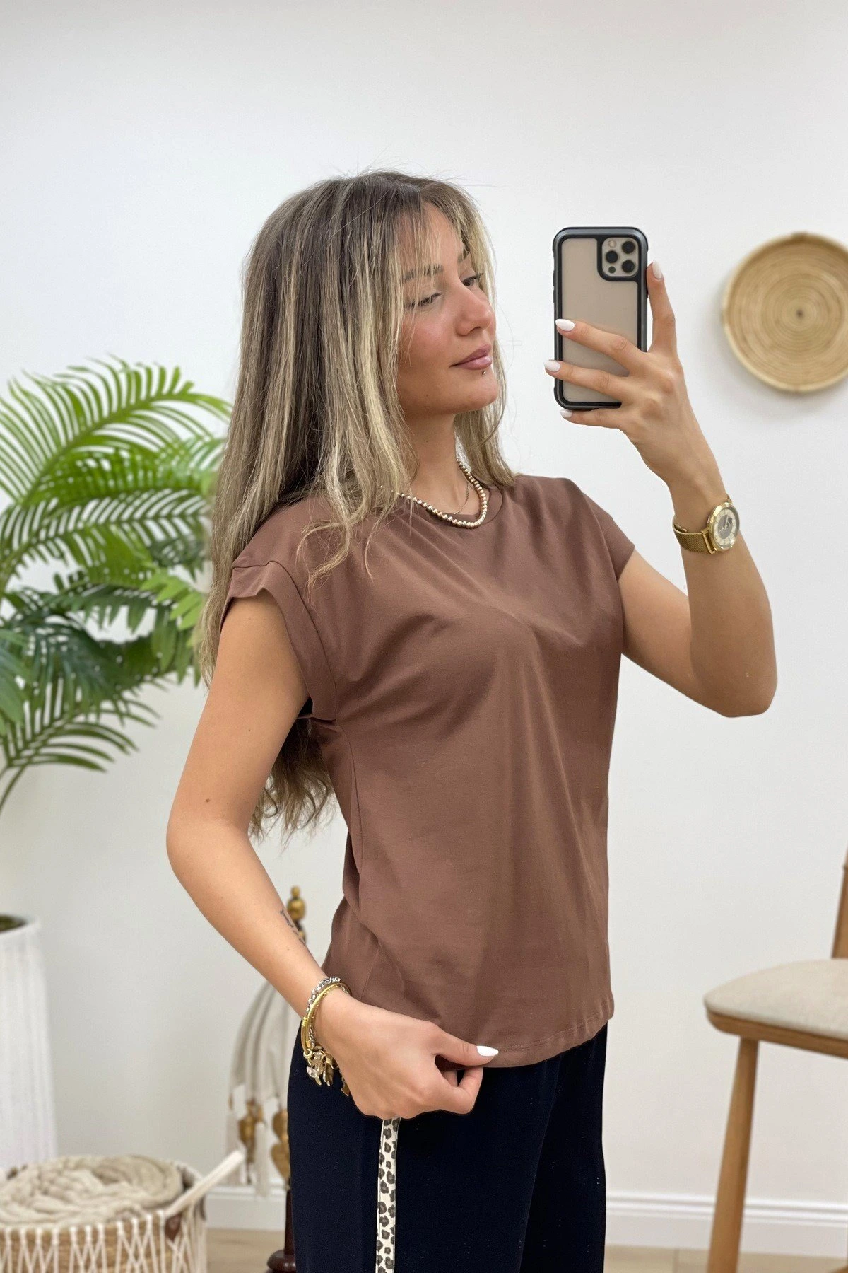 BİSİKLET YAKA SALAŞ TİŞÖRT – KAHVE