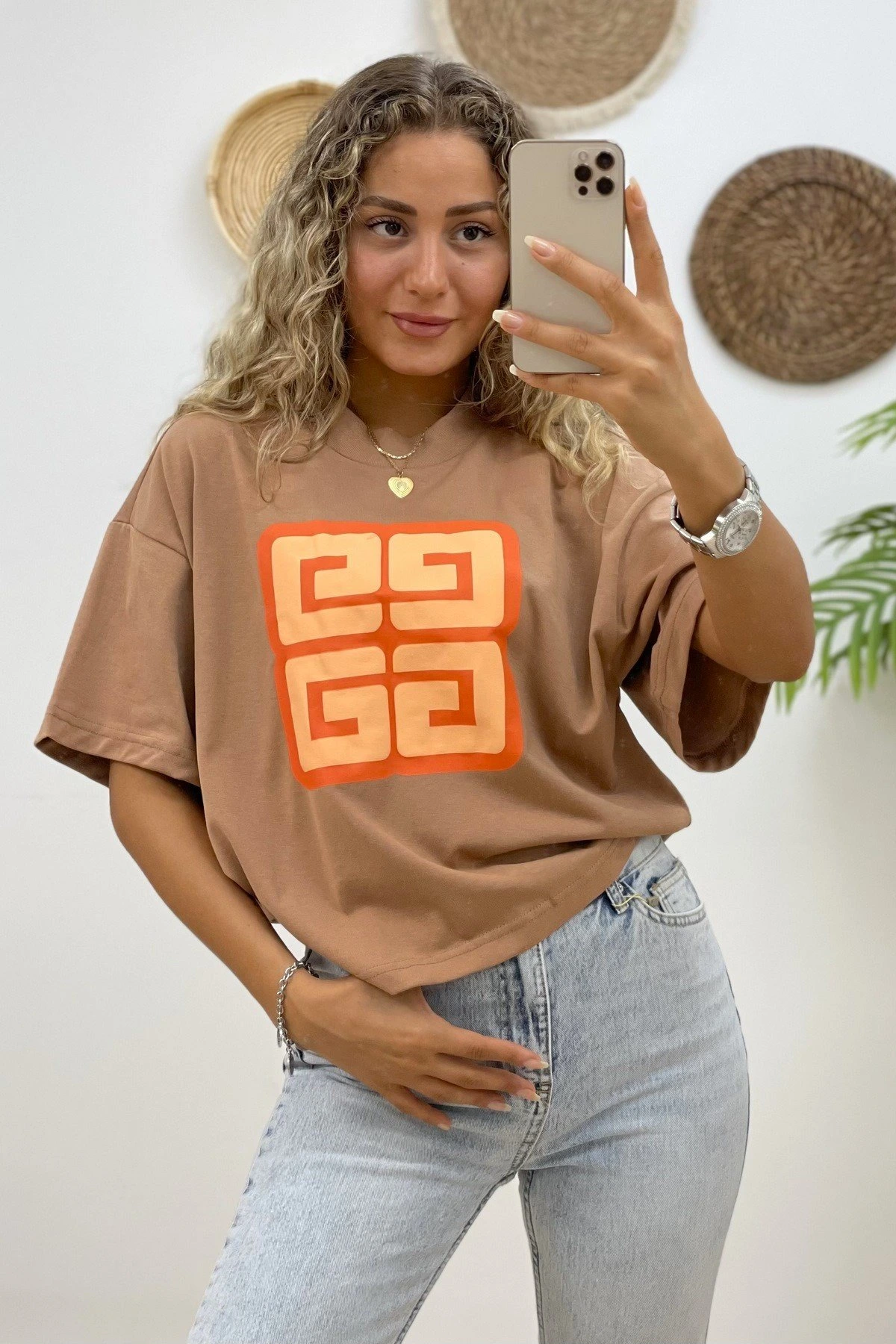 ÖN KABARTMA BASKI SALAŞ TİŞÖRT – KAHVE