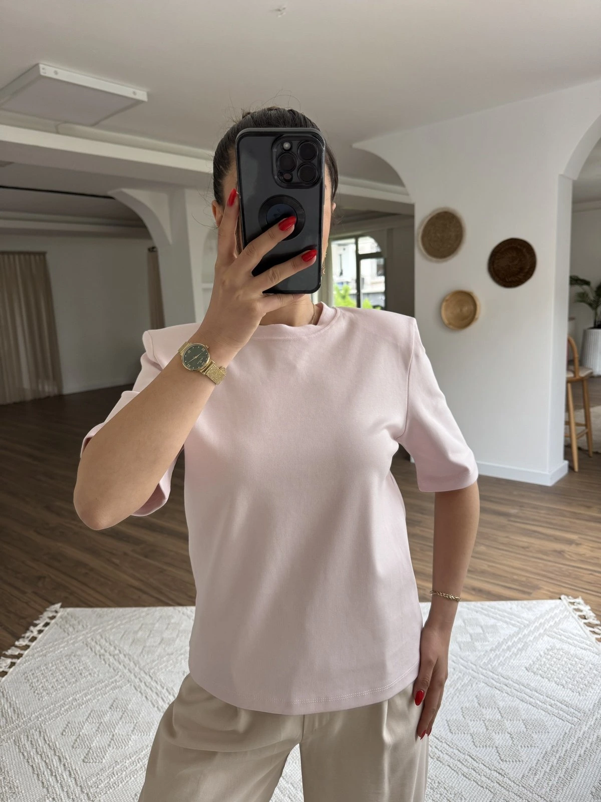 YAKALI GİZLİ FERMUAR ÇIKMA KOL PAMUK TİŞÖRT – ŞEKER PEMBE