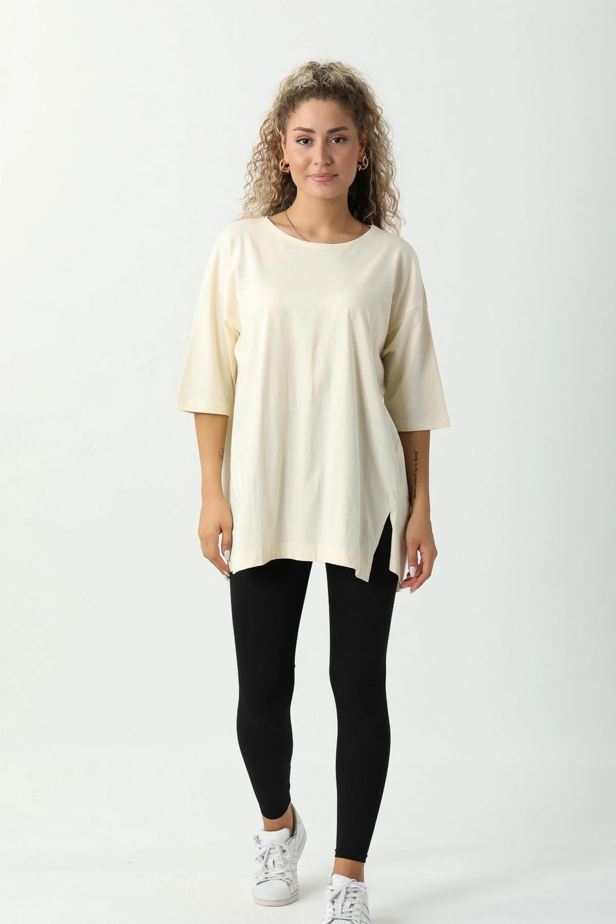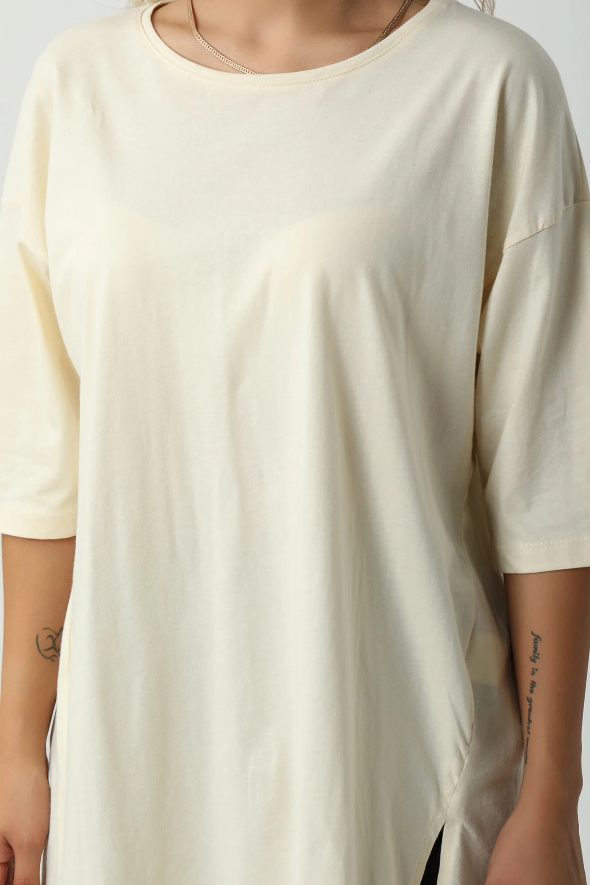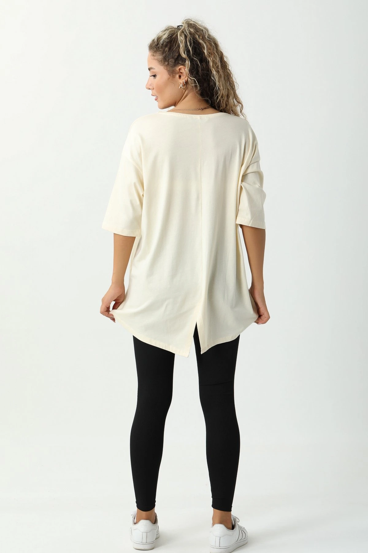 ARKA YIRTMAÇLI TİŞÖRT – KREM