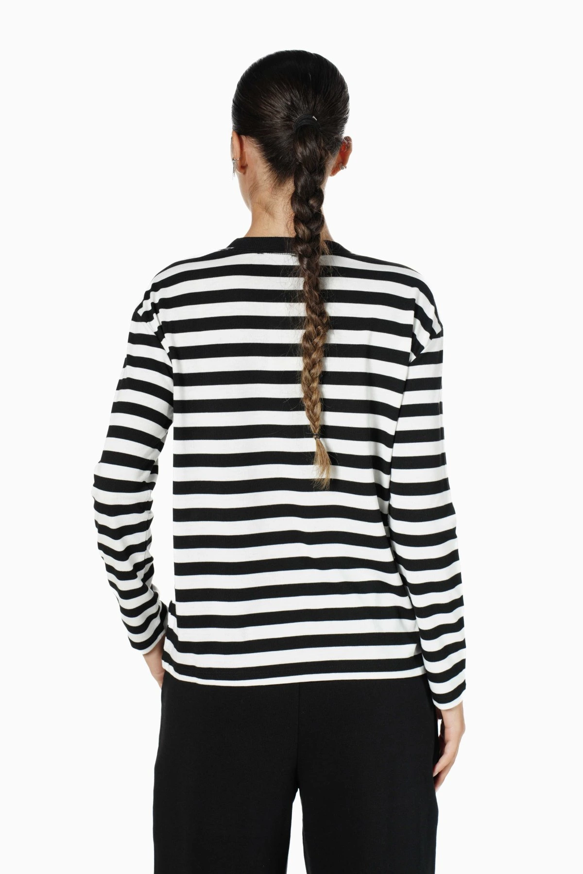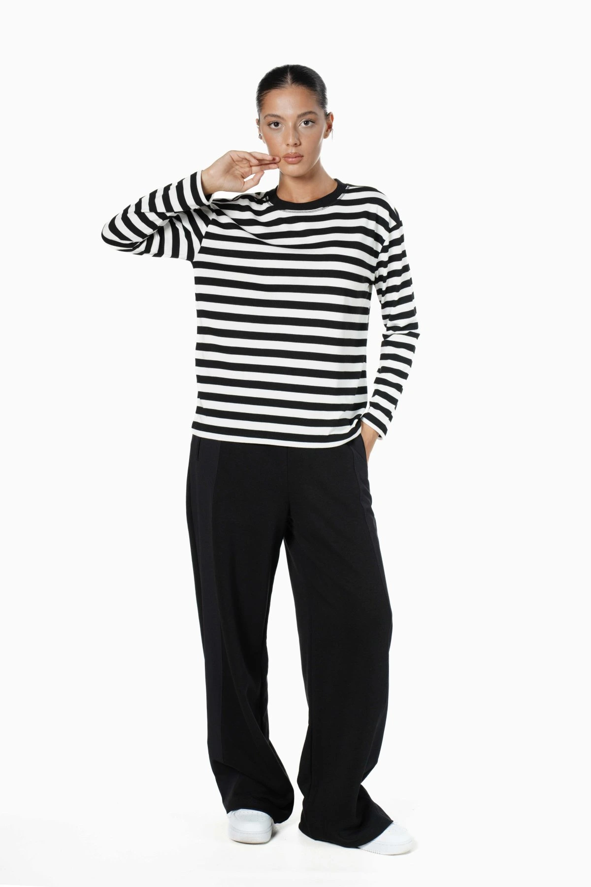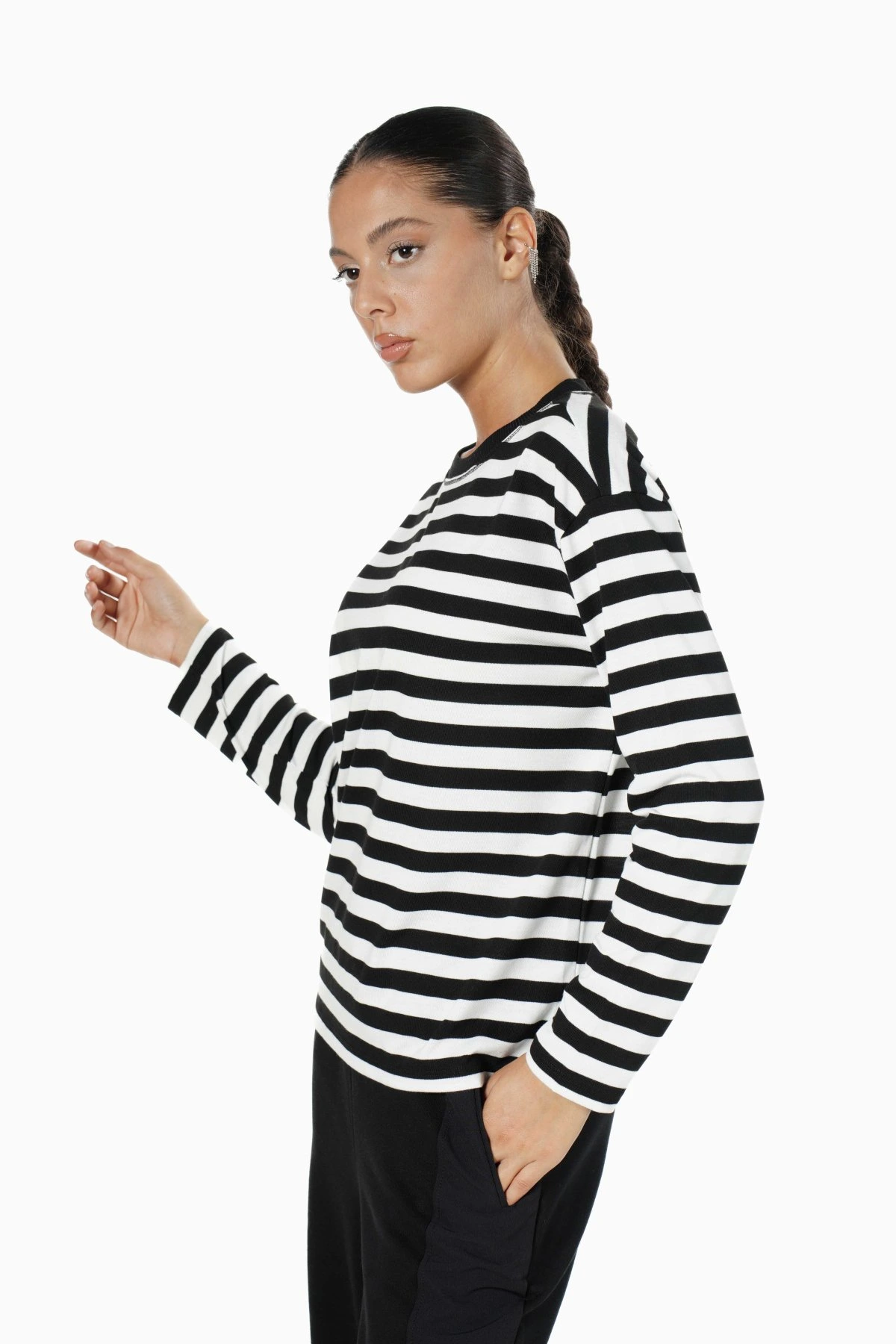 BASİC ÇİZGİLİ UZUN KOL VİSKON TİŞÖRT – SİYAH BEYAZ