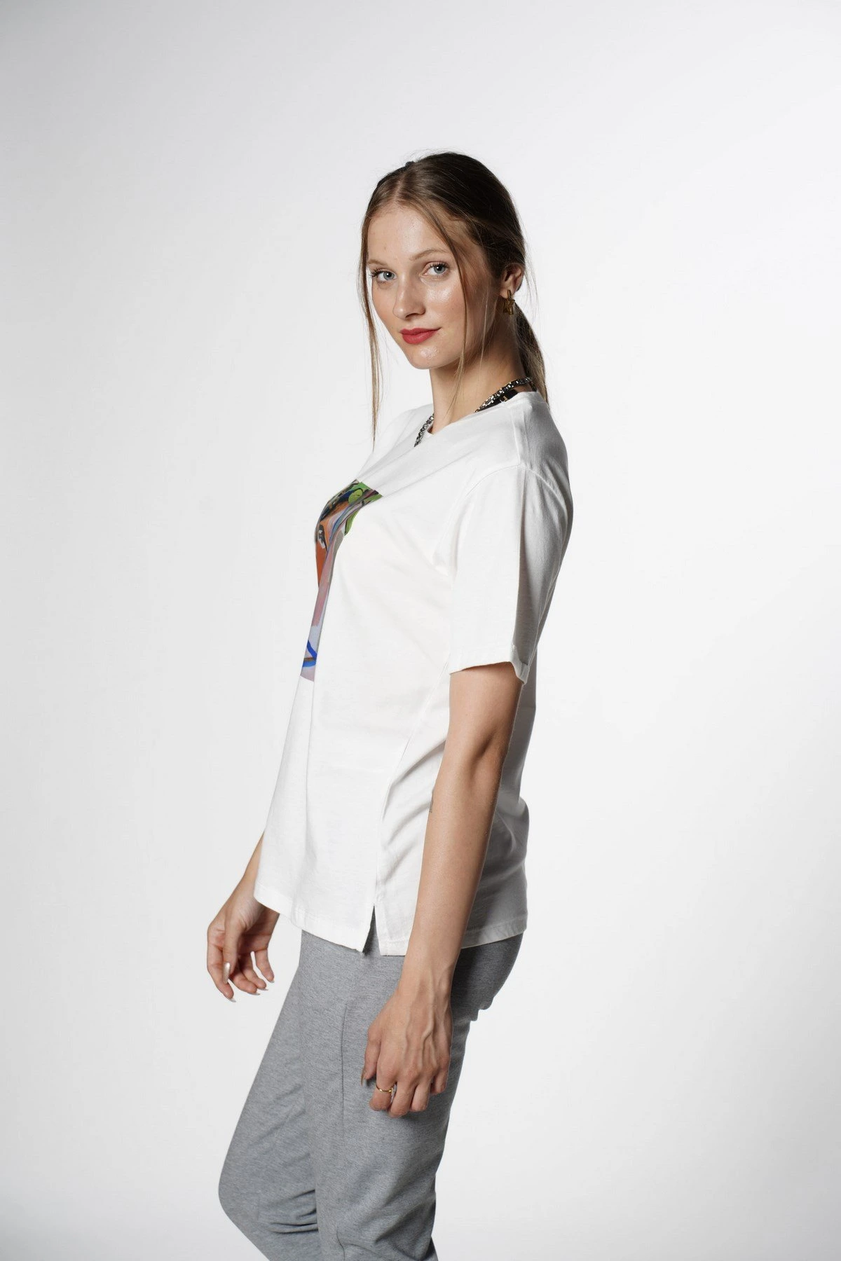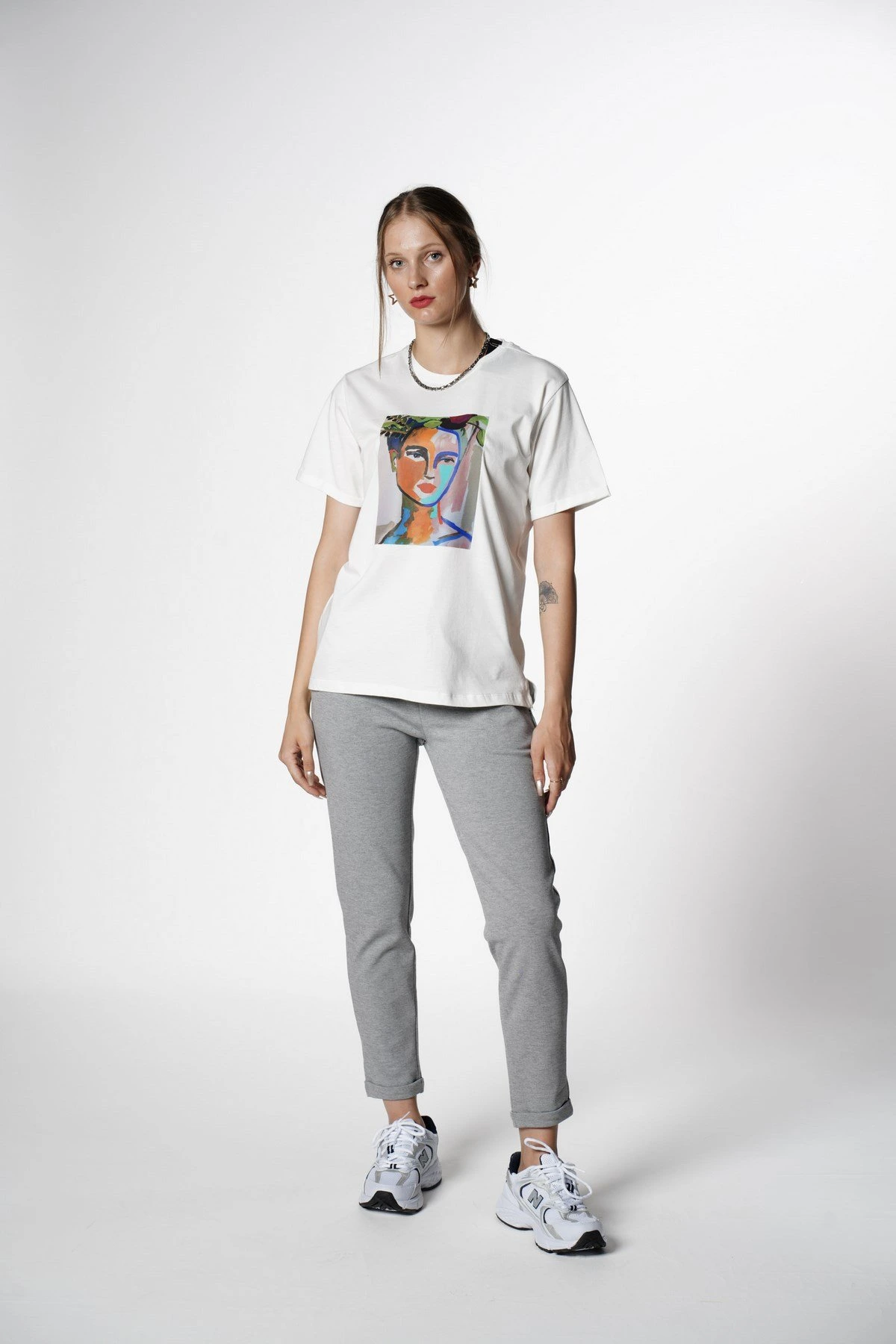 BASKILI KISA KOL TİŞÖRT – EKRU