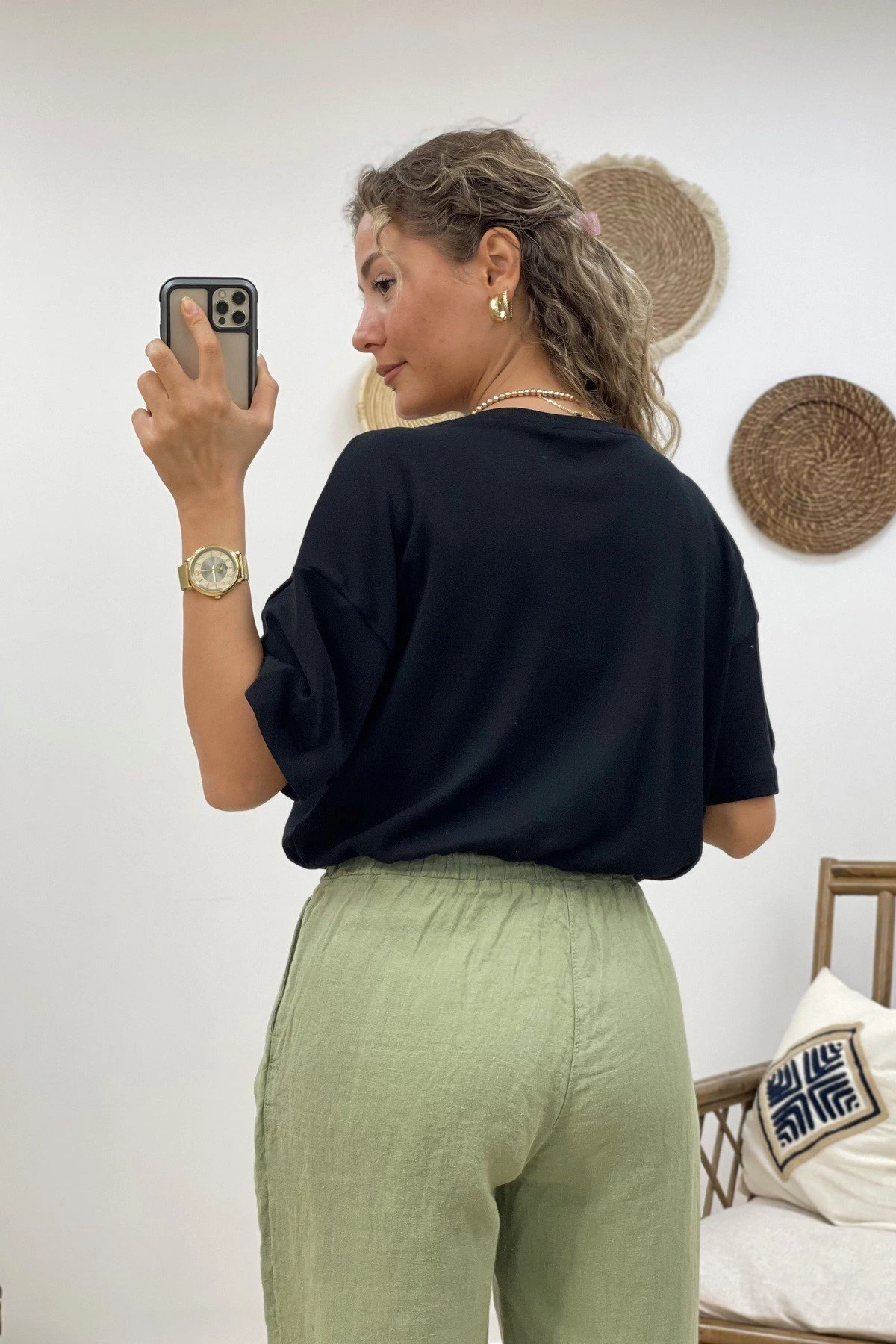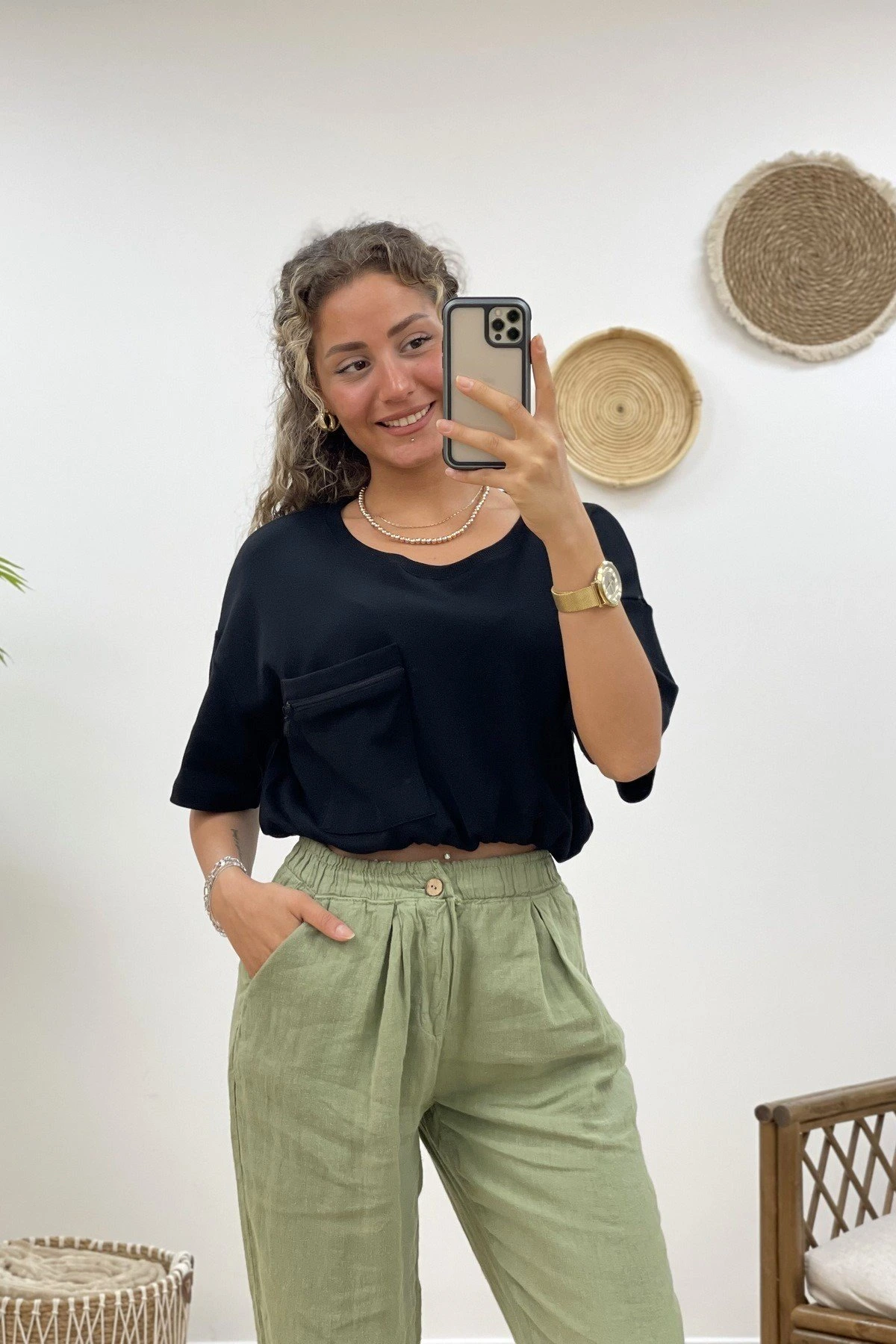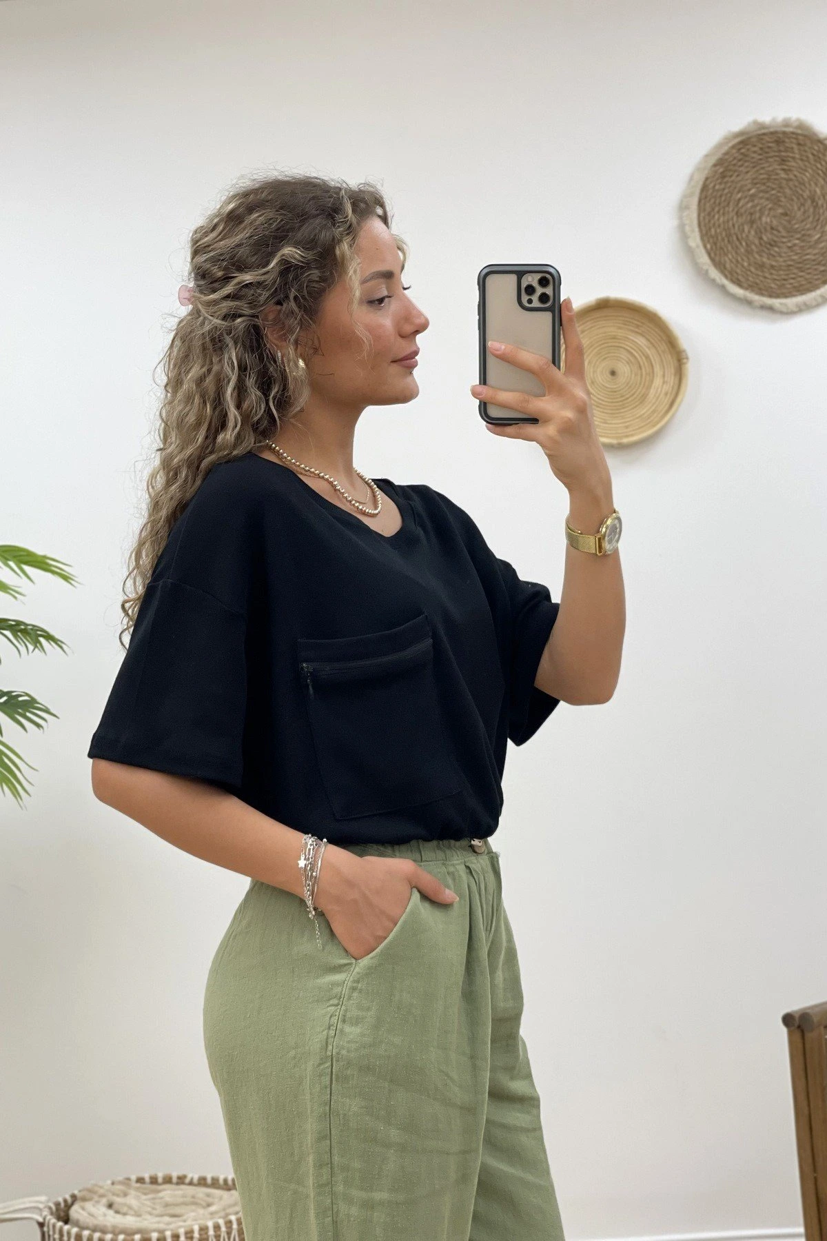 BEL BÜZGÜ CEP FERMUAR PAMUK TİŞÖRT – SİYAH