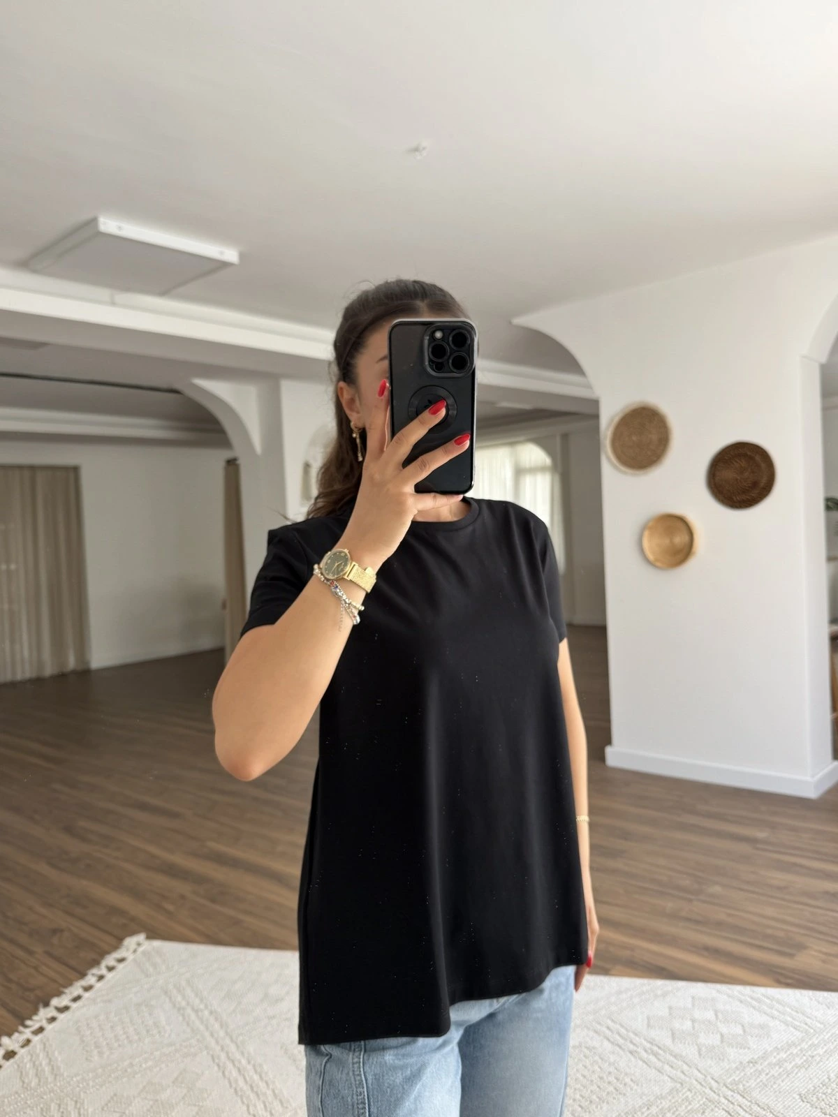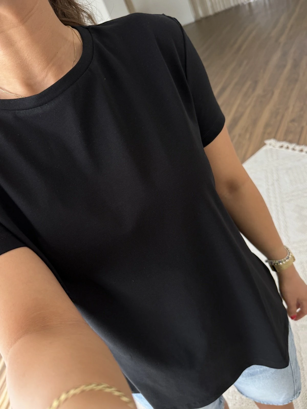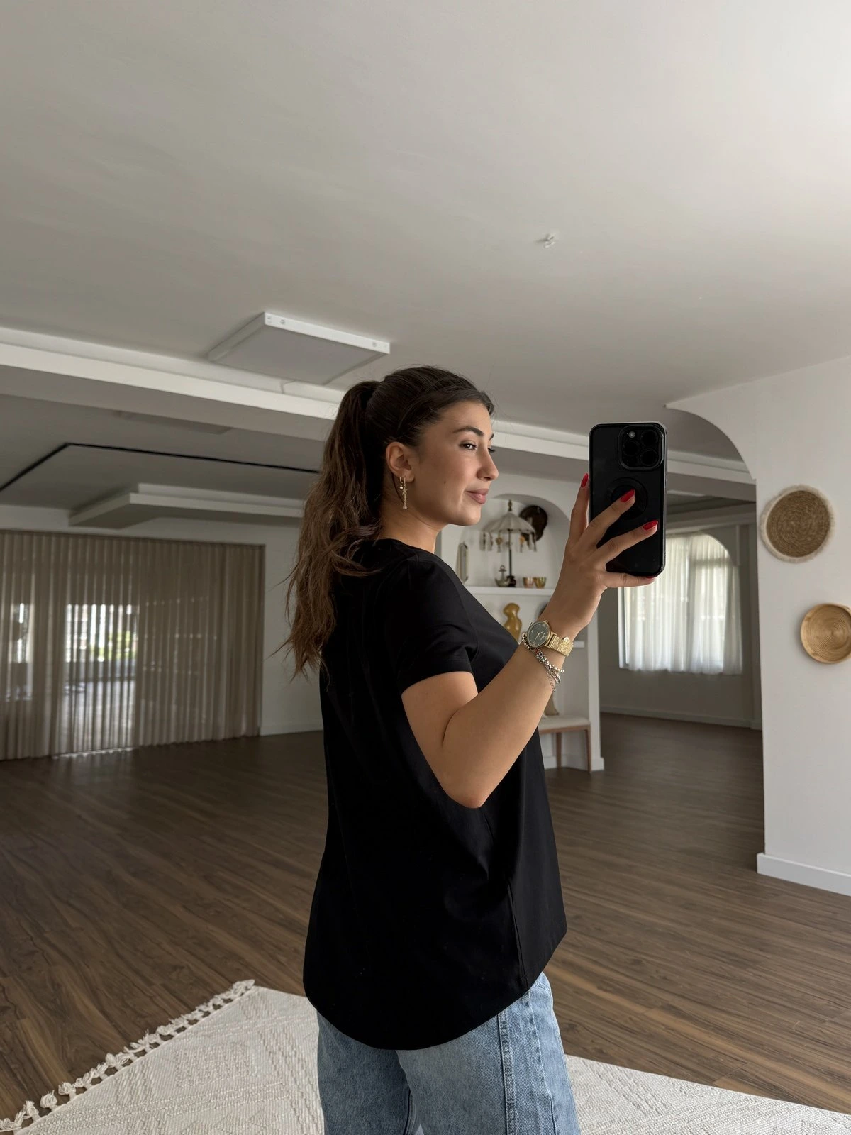 BİSİKLET YAKA ARKA UZUN BASİC PAMUK TİŞÖRT – SİYAH