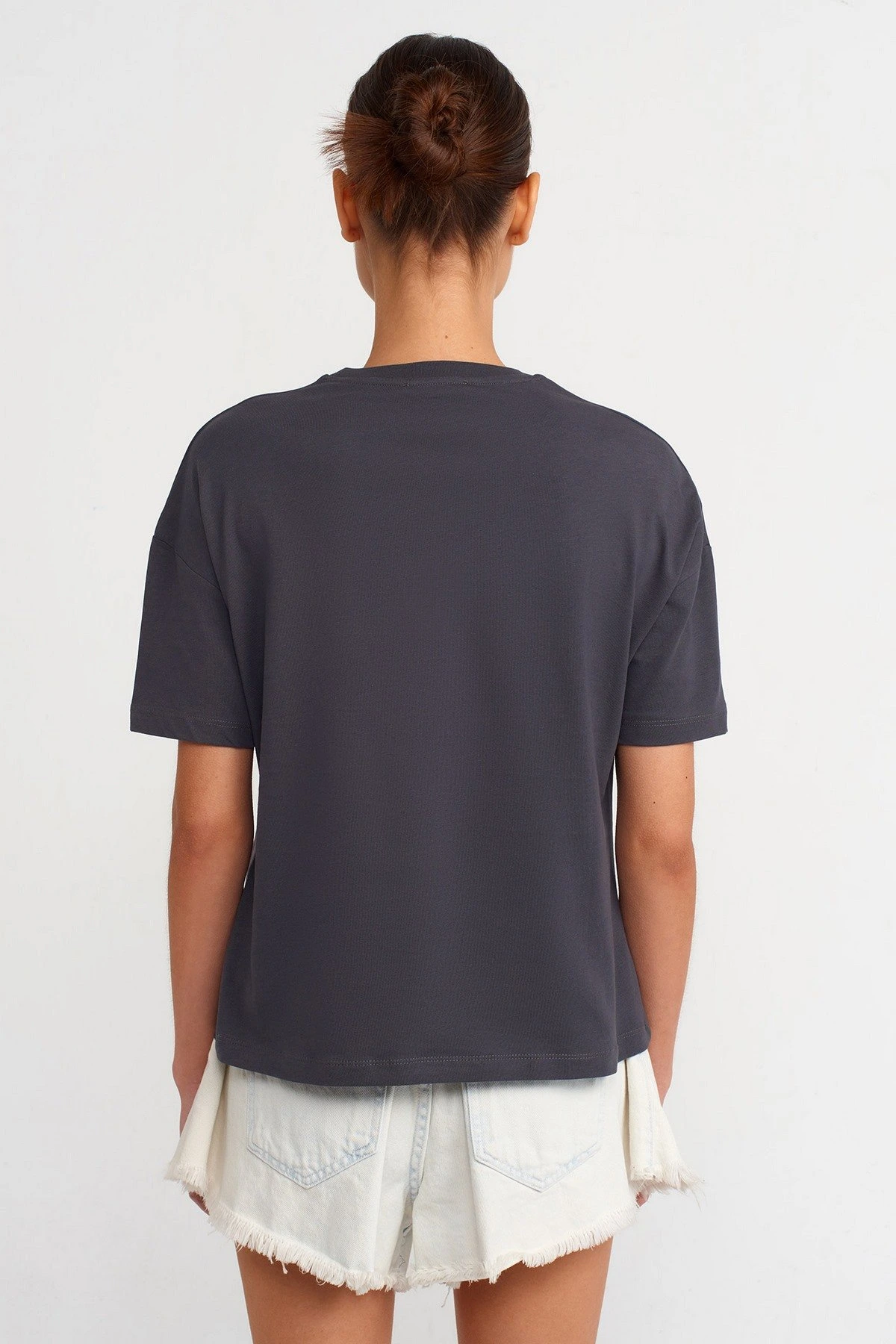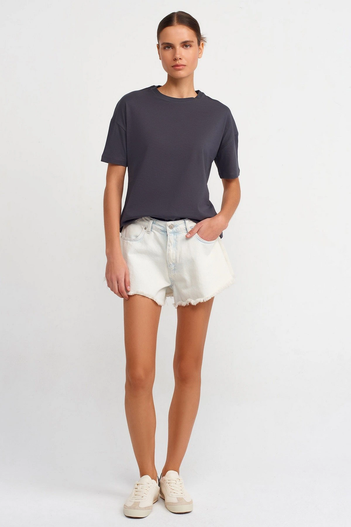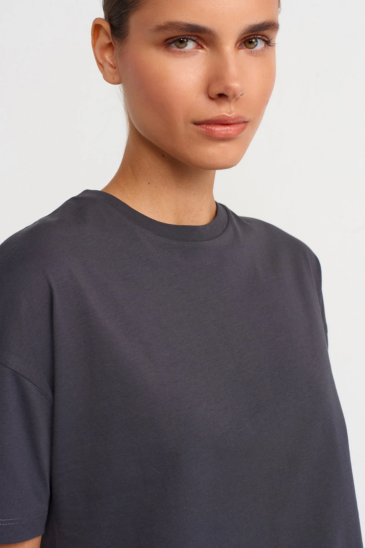 BİSİKLET YAKA BASİC PAMUK TİŞÖRT – ANTRASİT