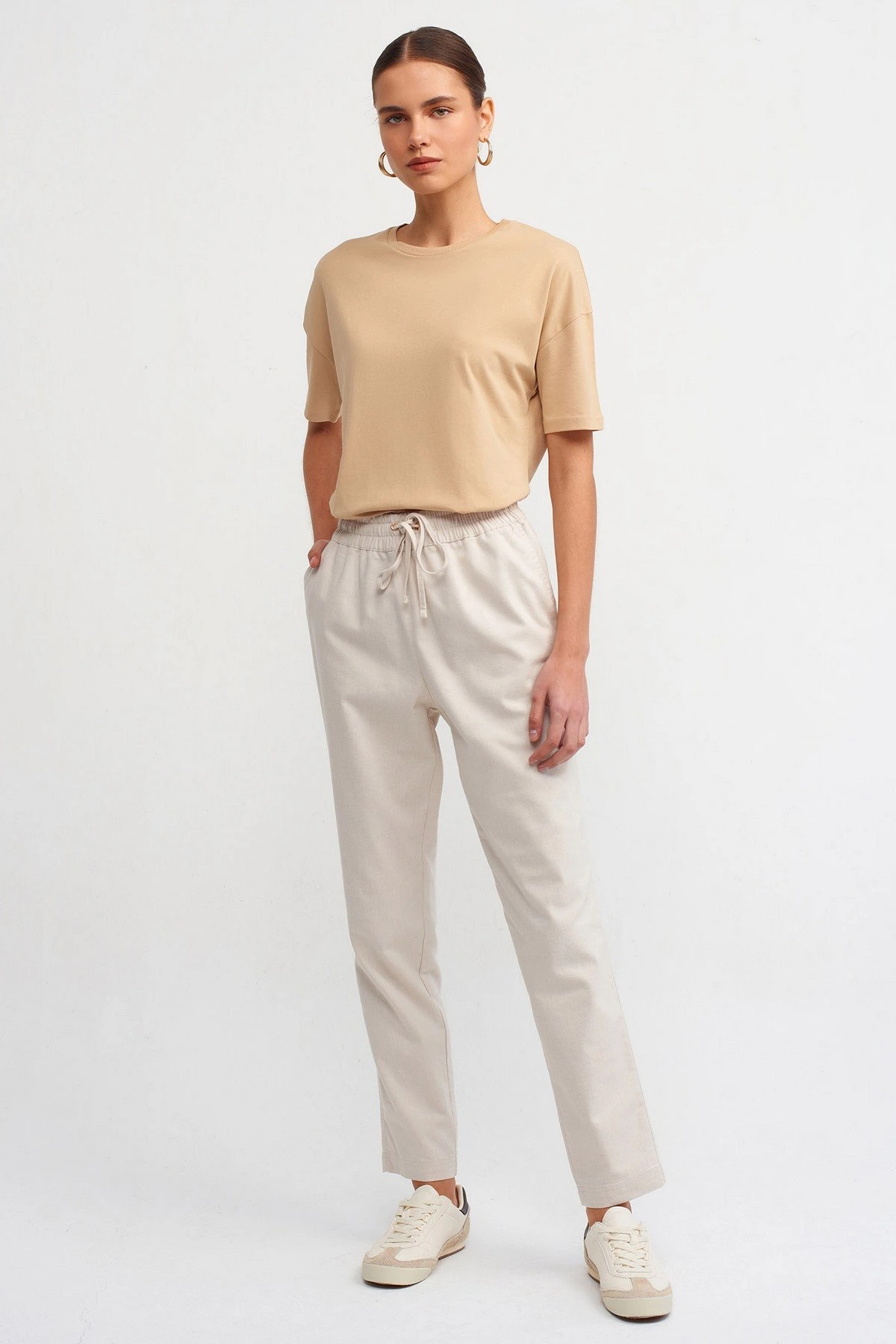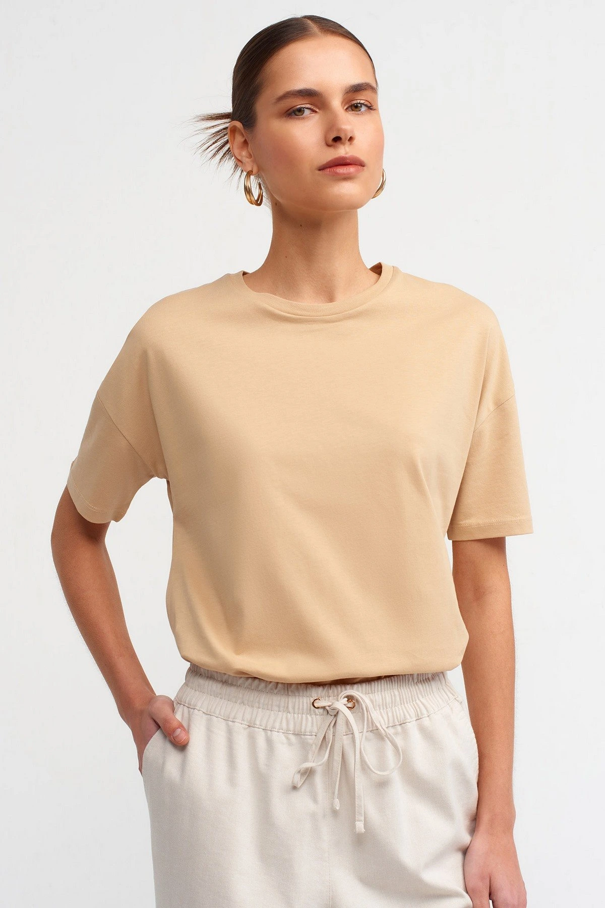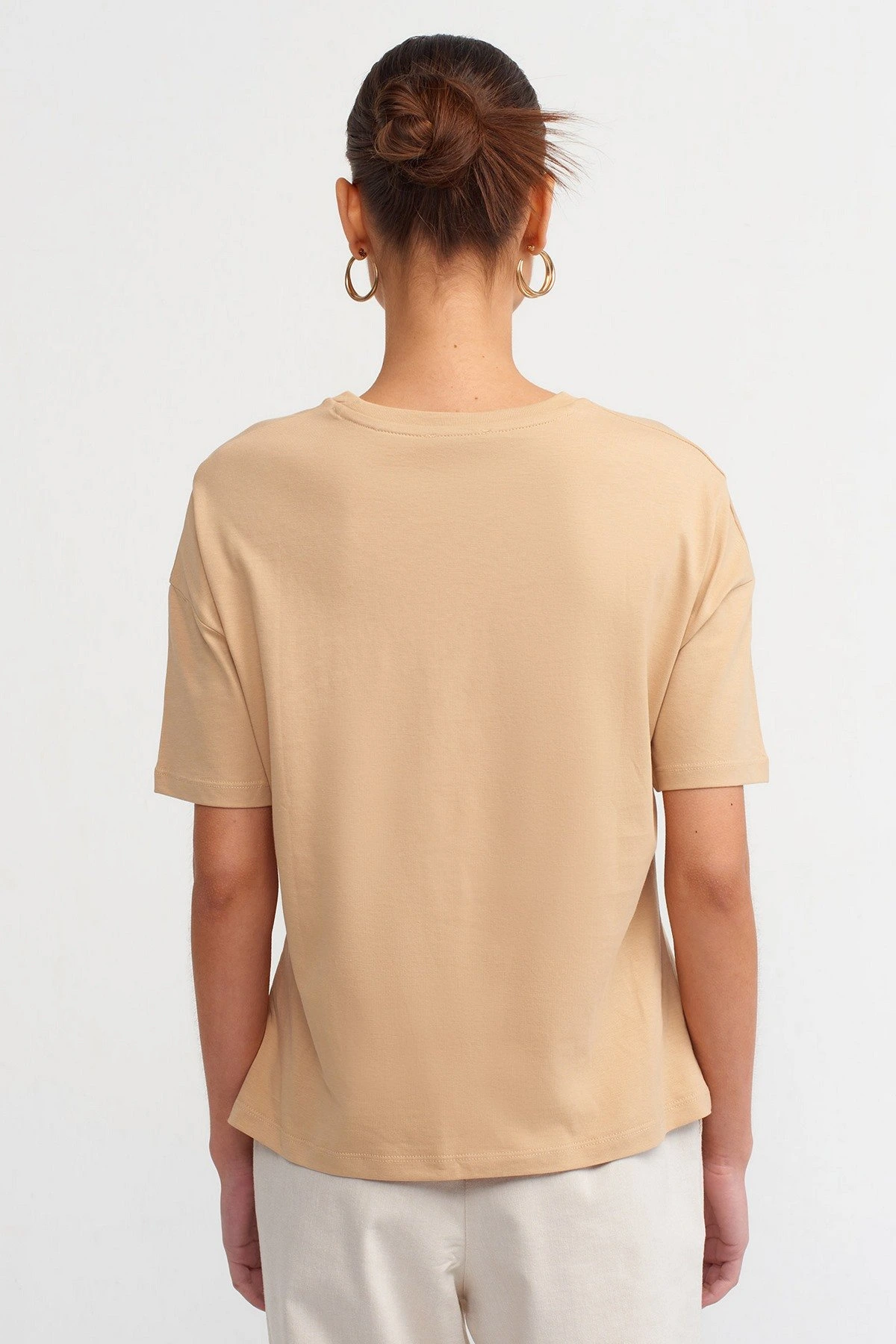 BİSİKLET YAKA BASİC PAMUK TİŞÖRT – BEJ