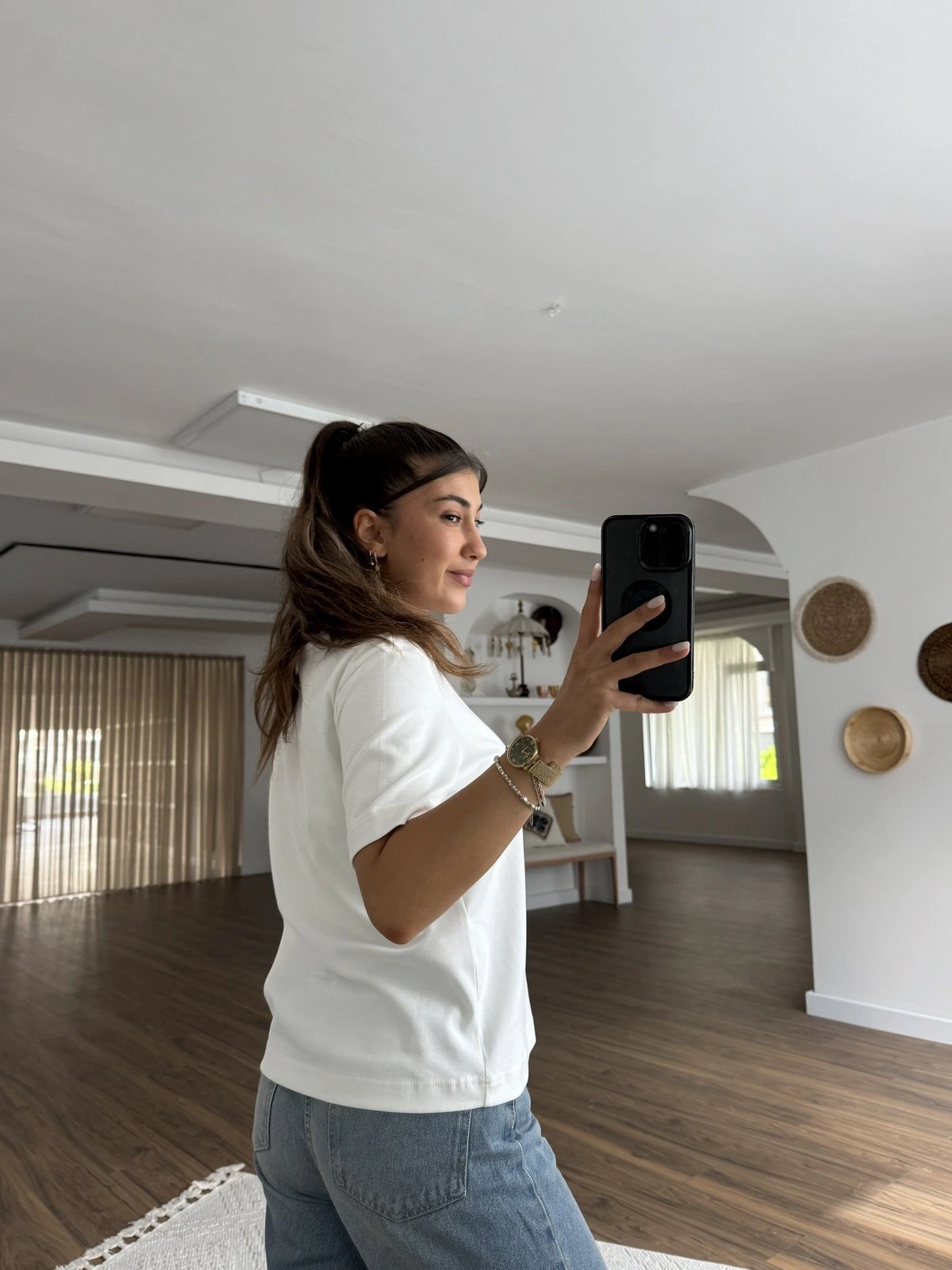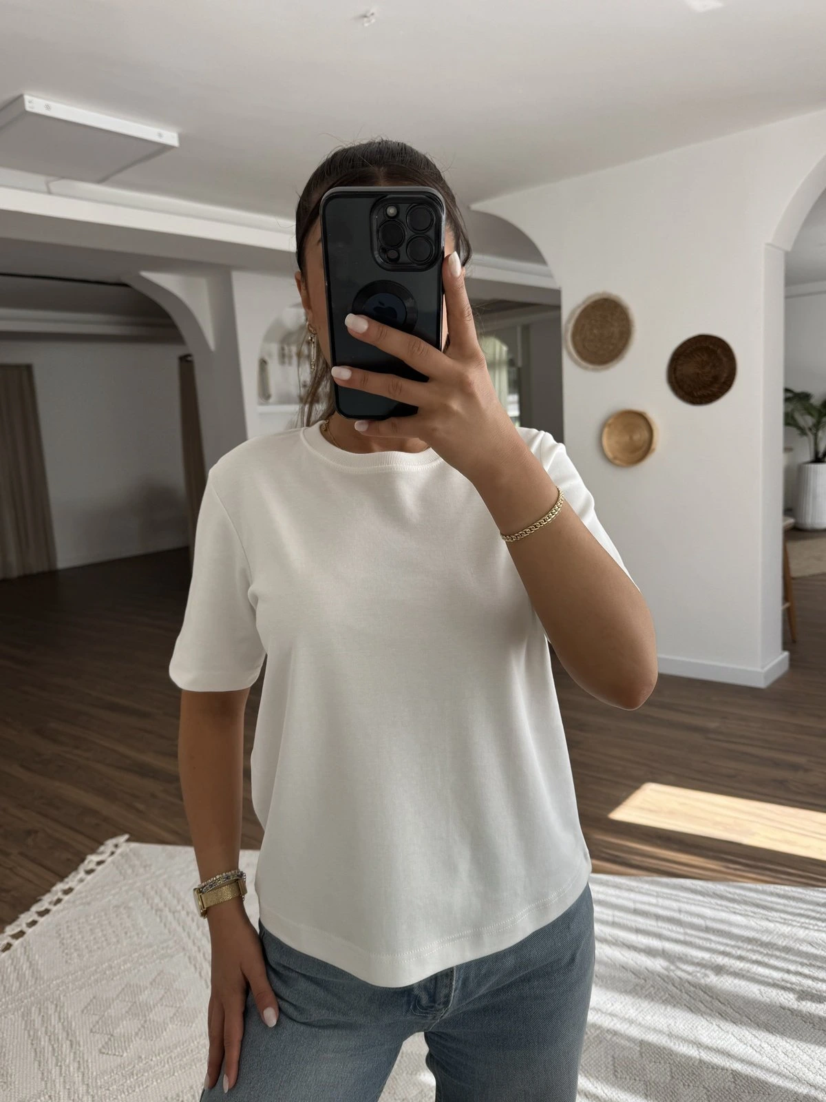 BİSİKLET YAKA BASİC PAMUK TİŞÖRT – EKRU