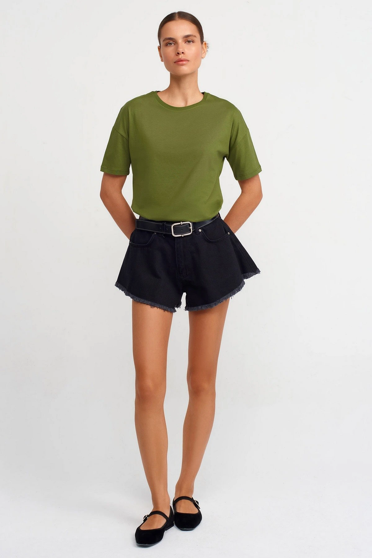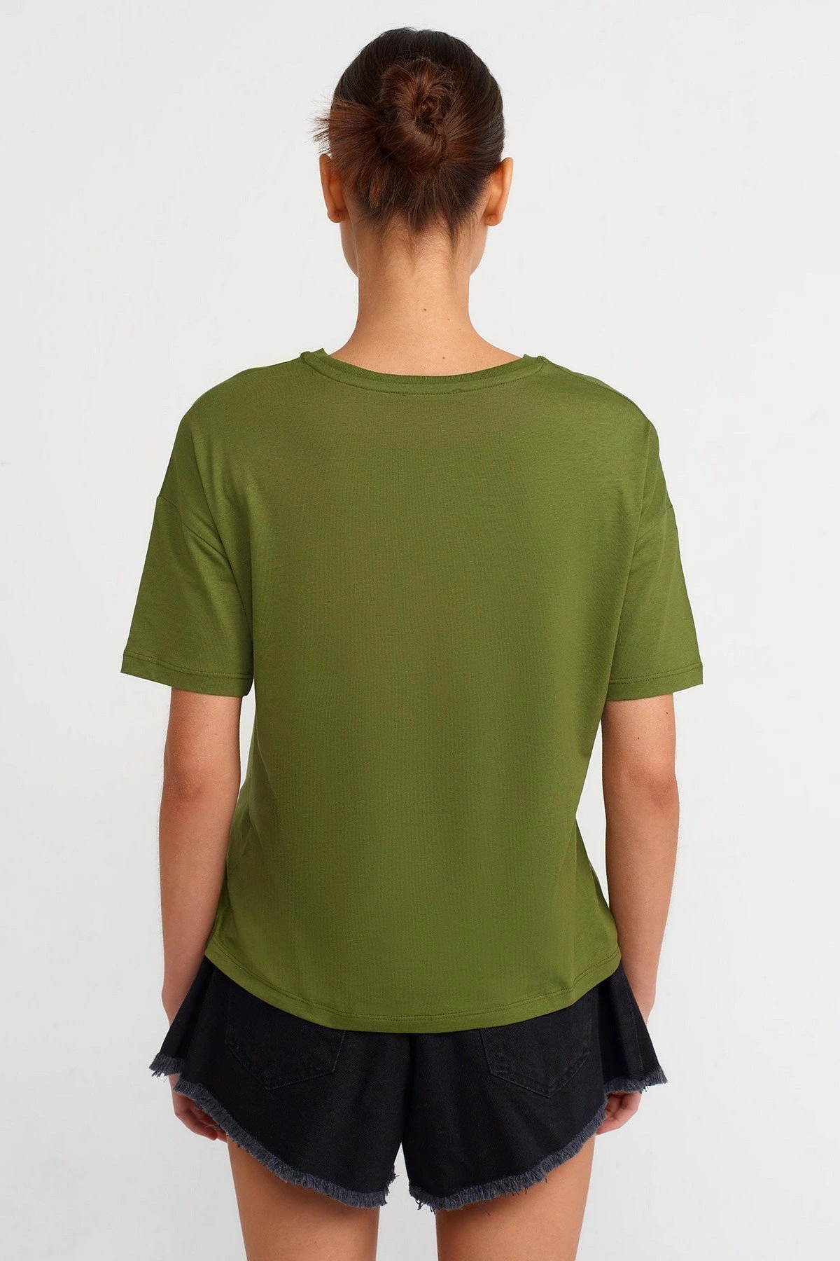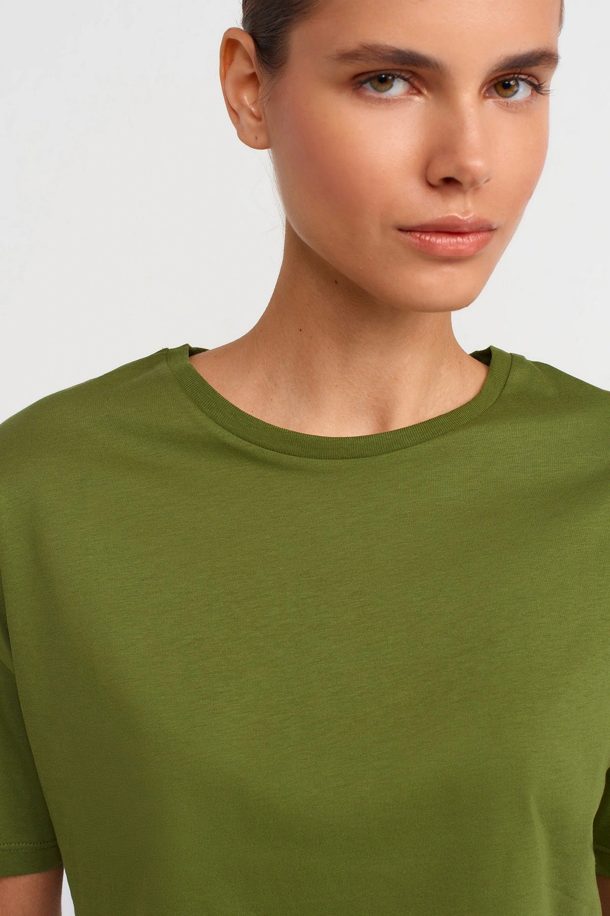 BİSİKLET YAKA BASİC PAMUK TİŞÖRT – HAKİ