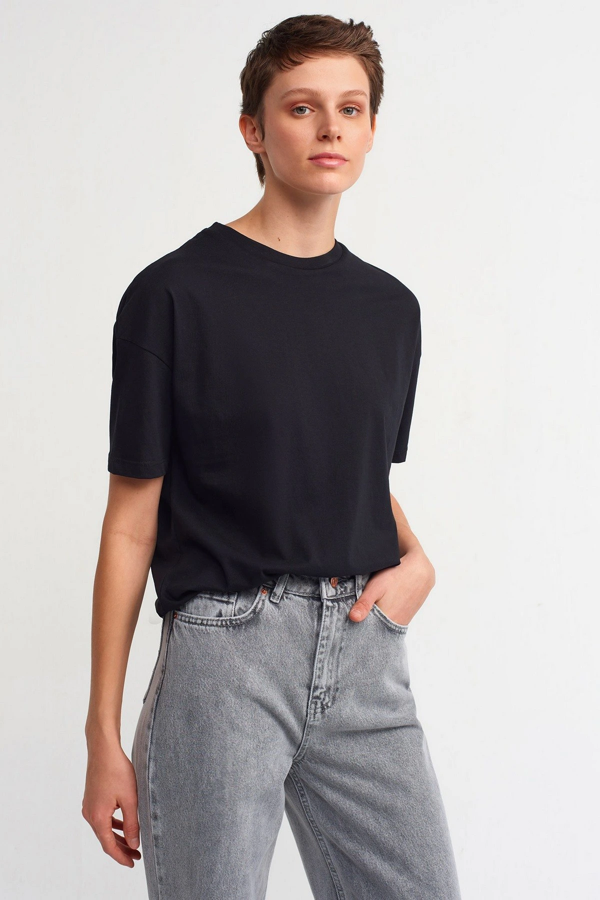 BİSİKLET YAKA BASİC PAMUK TİŞÖRT – SİYAH
