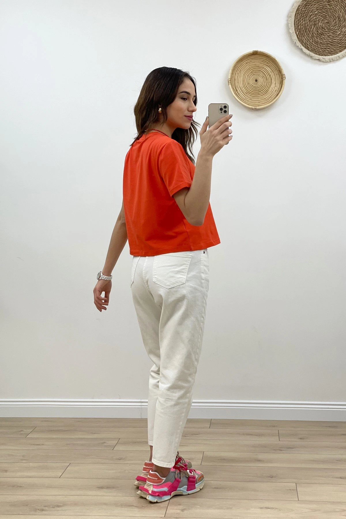 Modelin Üzerindeki Ürün, Serinin en küçük bedeni olan XS-S-26-34-36 Bedenleridir.