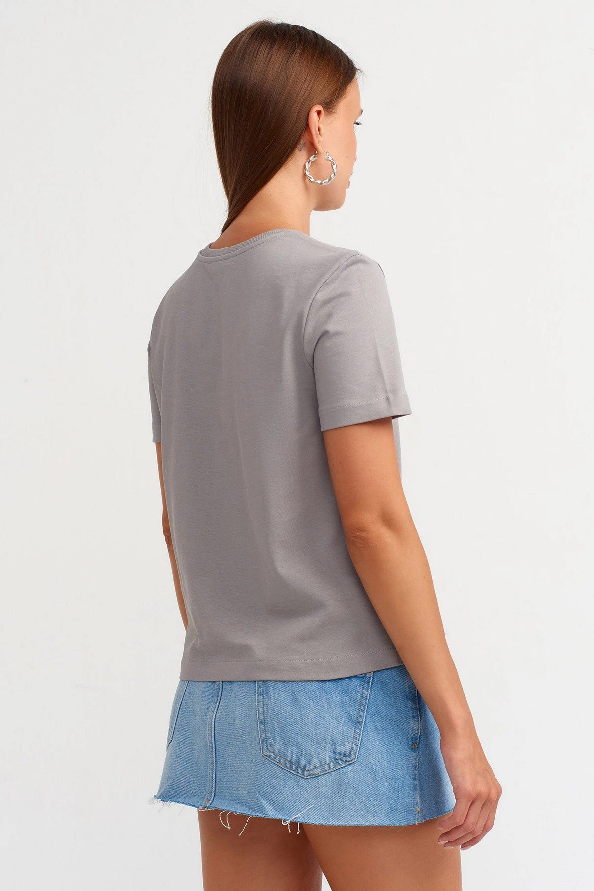 BİSİKLET YAKA DOKUMA PENYE PAMUK TİŞÖRT - FÜME