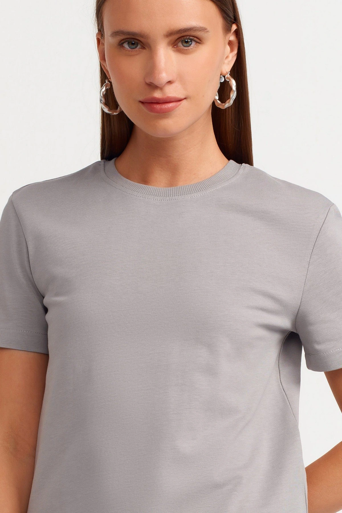 BİSİKLET YAKA DOKUMA PENYE PAMUK TİŞÖRT – GRİ